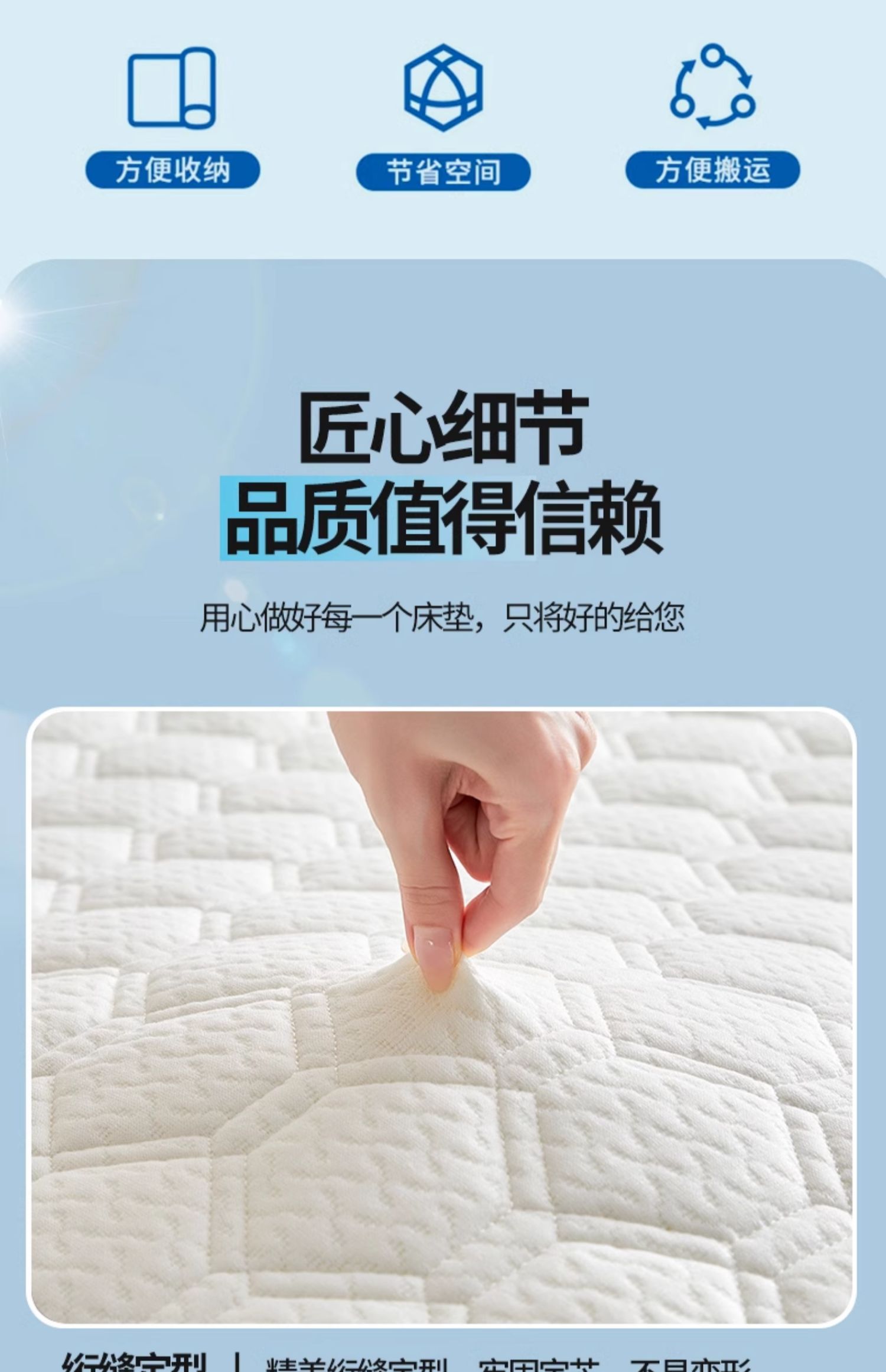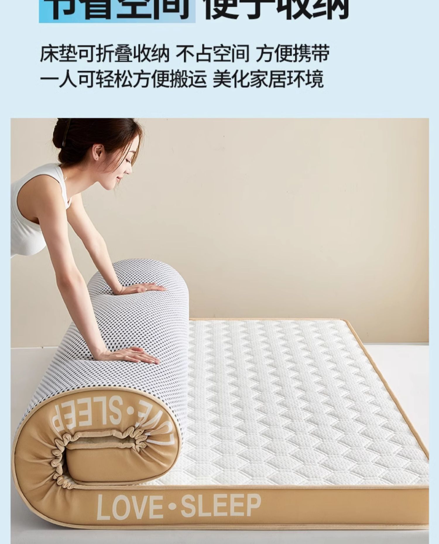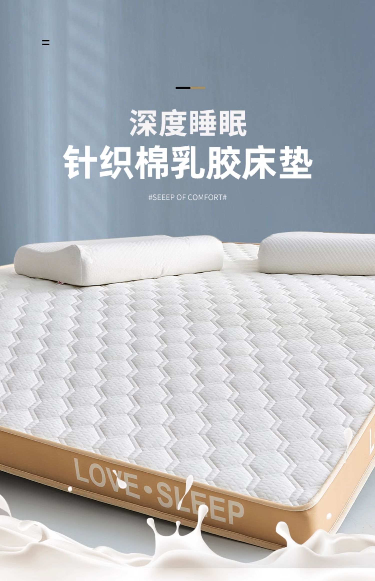 • 고급 밀크 실크 입체 - 블루 두께 약 9cm) 라텍스 + 메모리폼丨 고탄성 척추 보호대