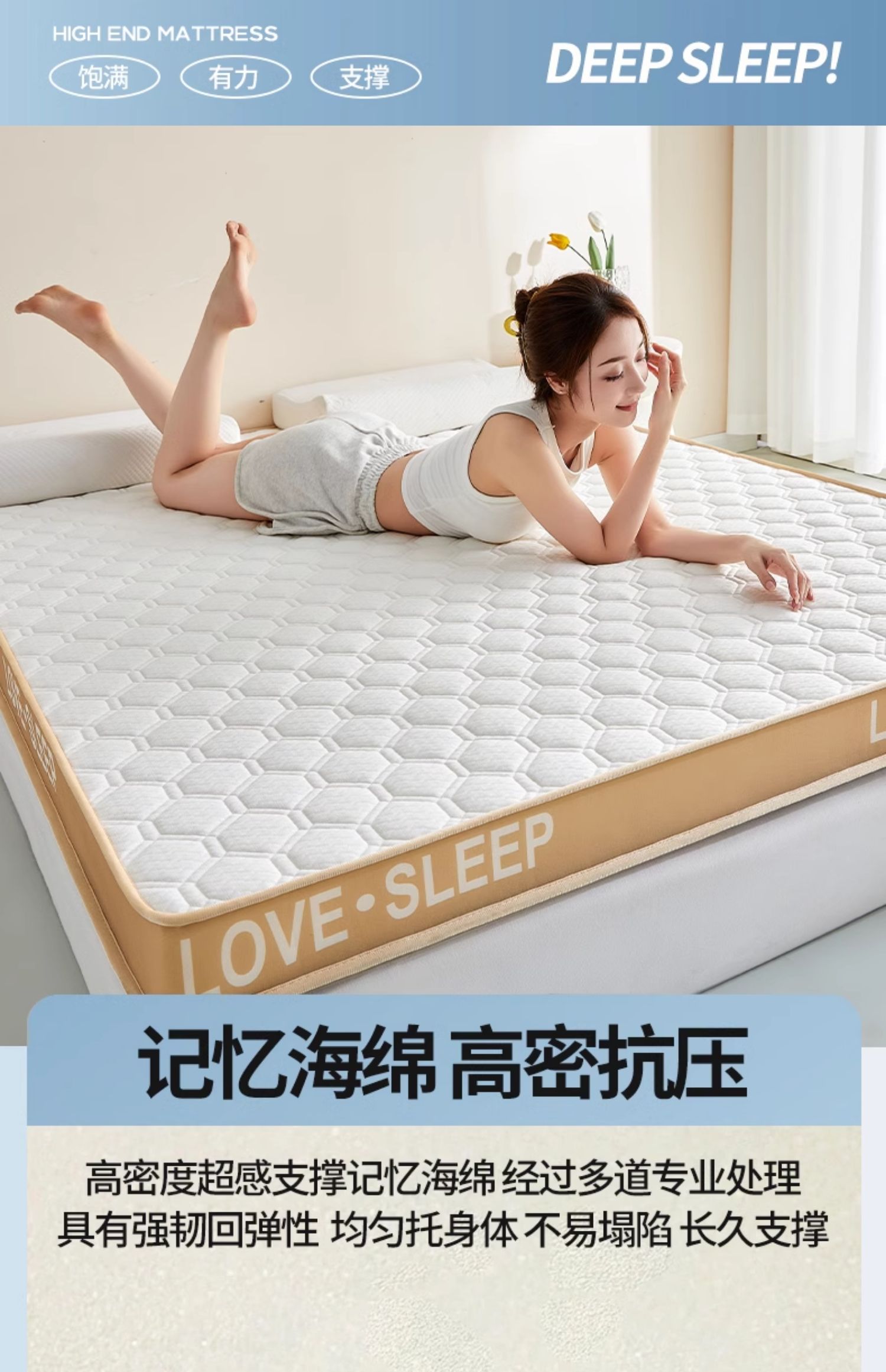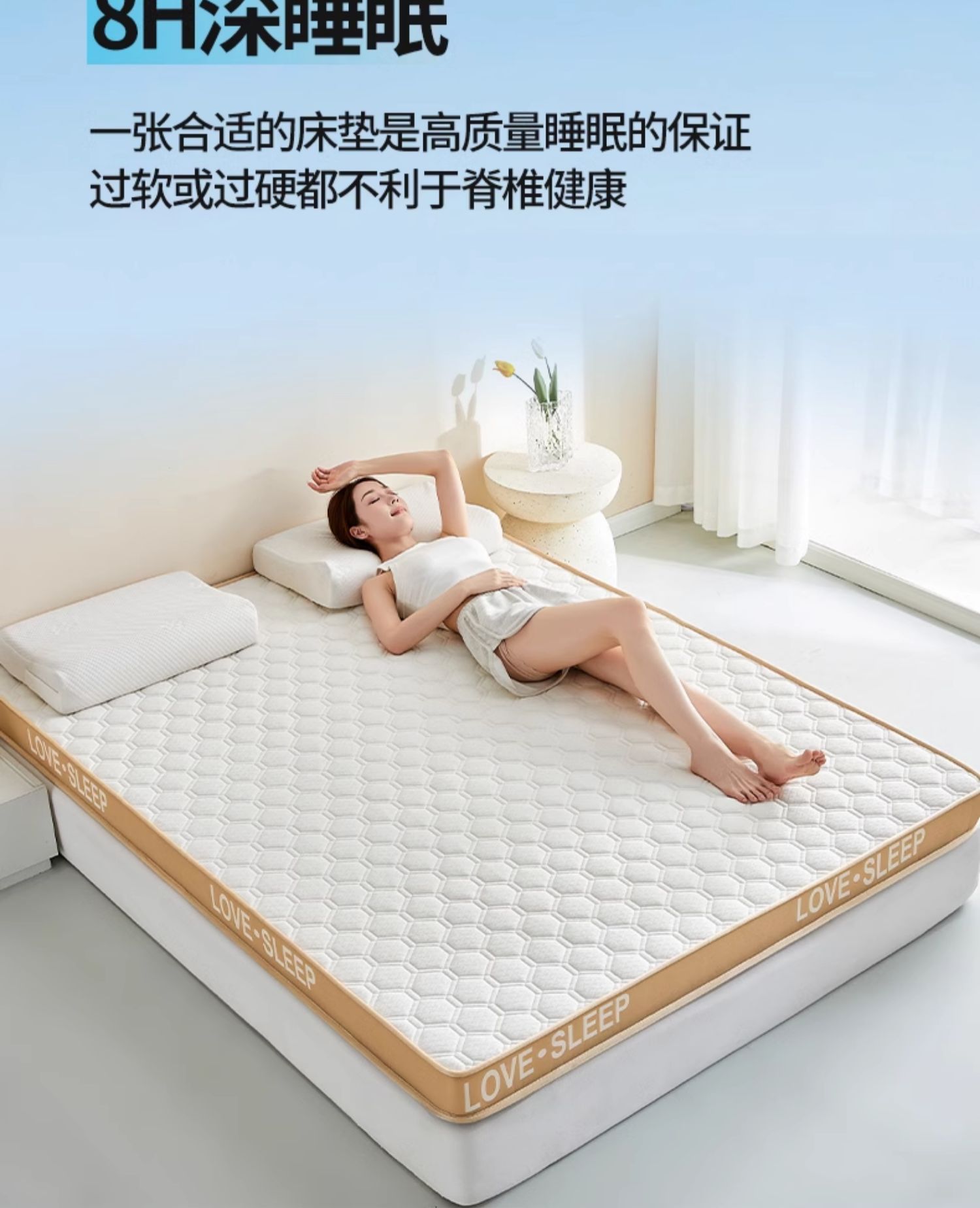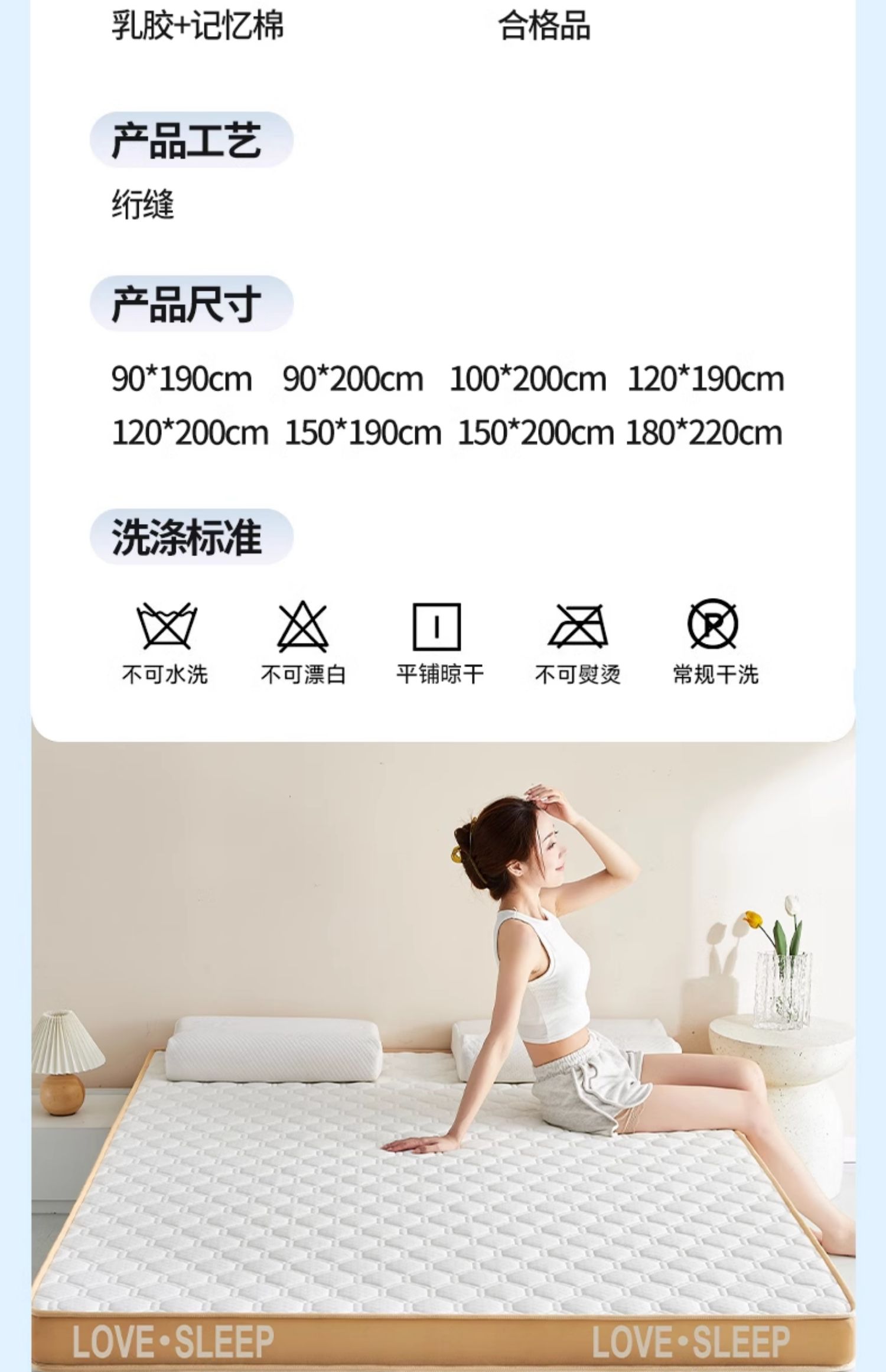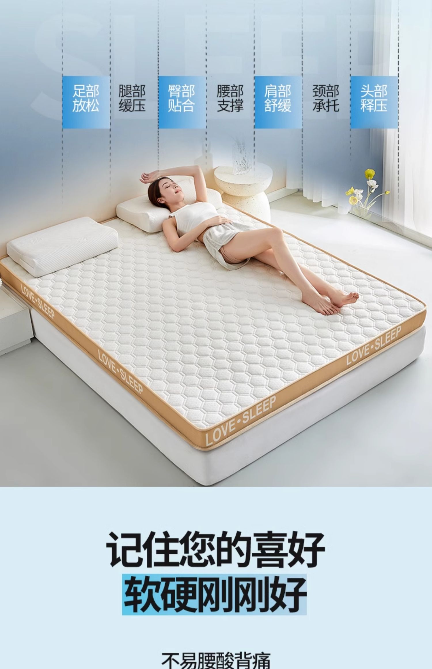 • 고급 밀크 실크 입체 - 화이트(두께 약 9cm) 라텍스 + 메모리폼丨 고탄성 척추 보호대
