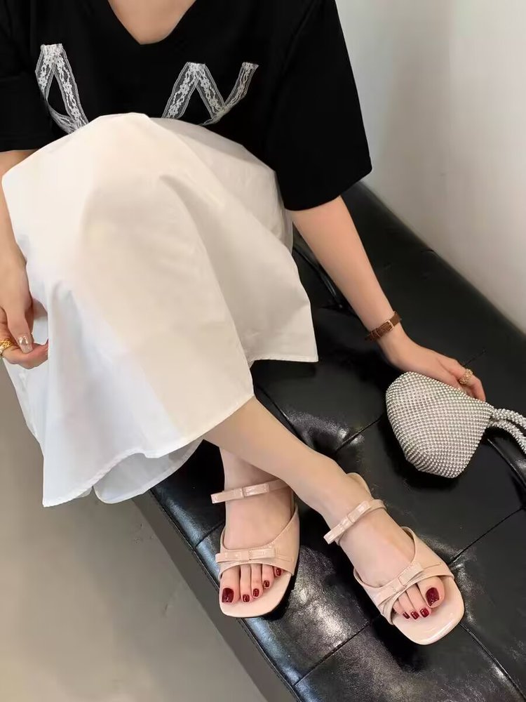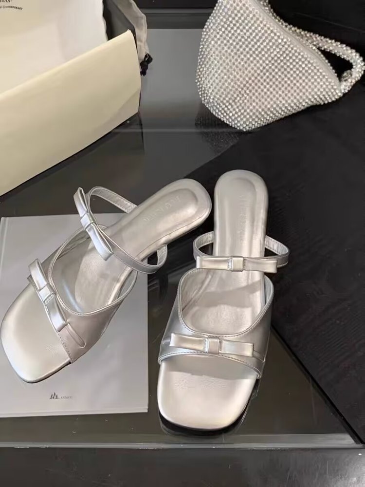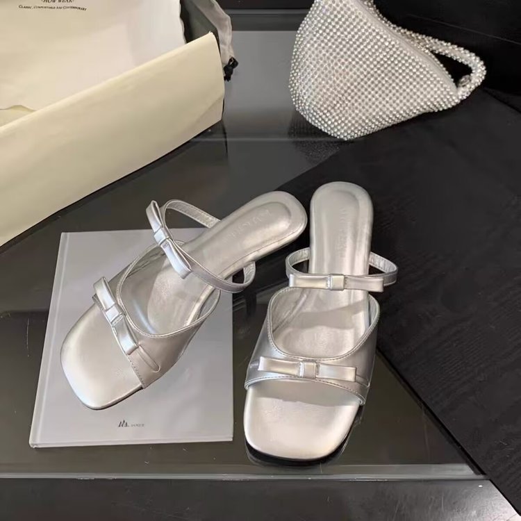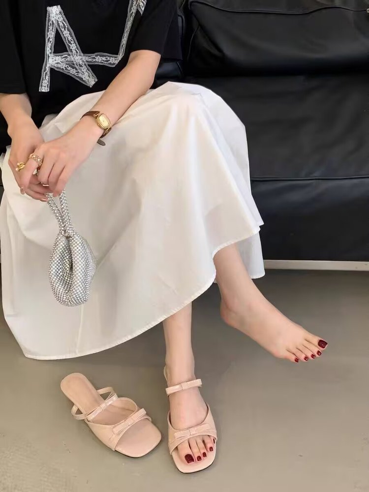 부드러운 가죽 버전 ~ 더블 보우 프렌치 요정 스타일 슬리퍼 2025 여름 신작 해변 휴가 샌들스토어 가기