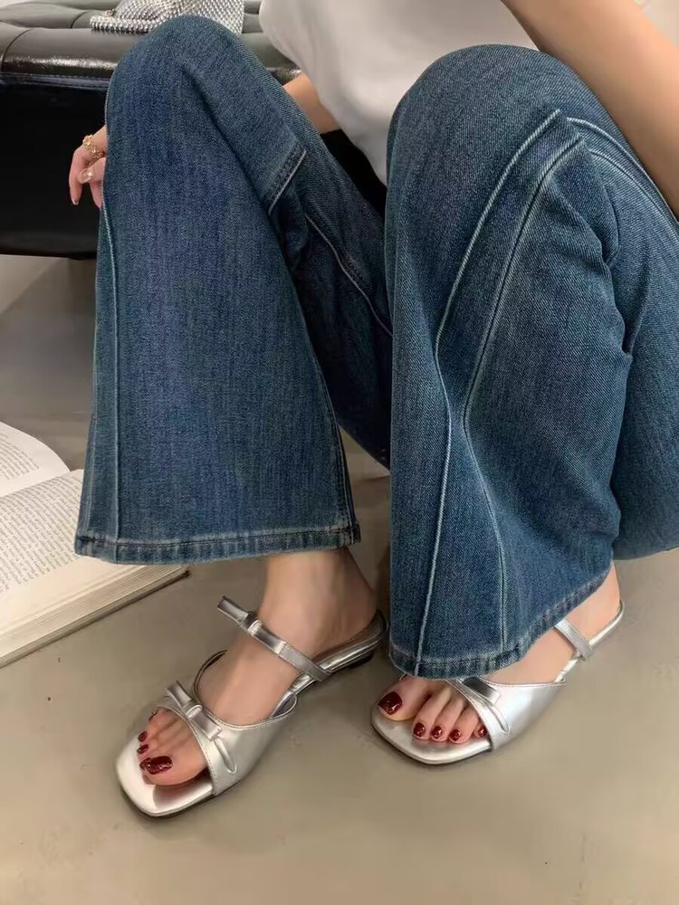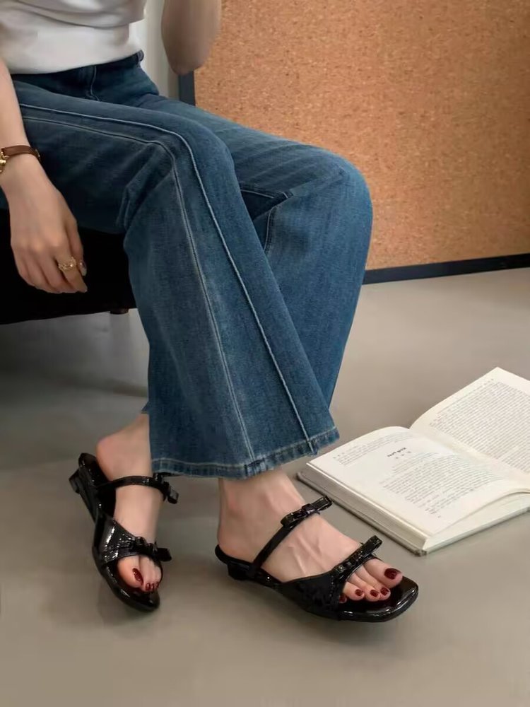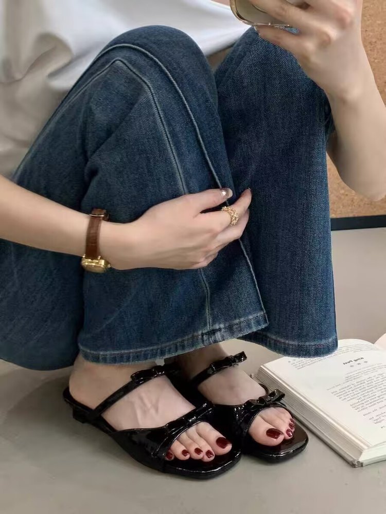 부드러운 가죽 버전 ~ 더블 보우 프렌치 요정 스타일 슬리퍼 2025 여름 신작 해변 휴가 샌들