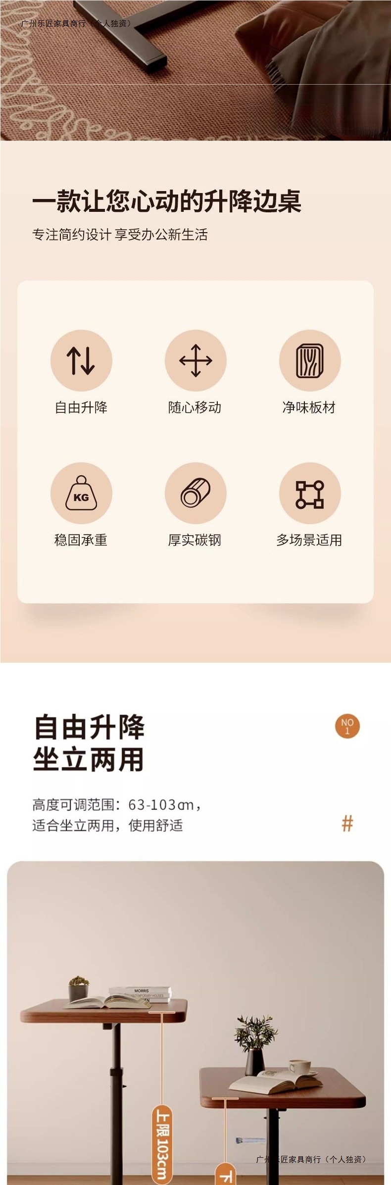 • [업그레이드된 플립-폴딩 데스크탑-모바일 리프팅] 월넛 컬러