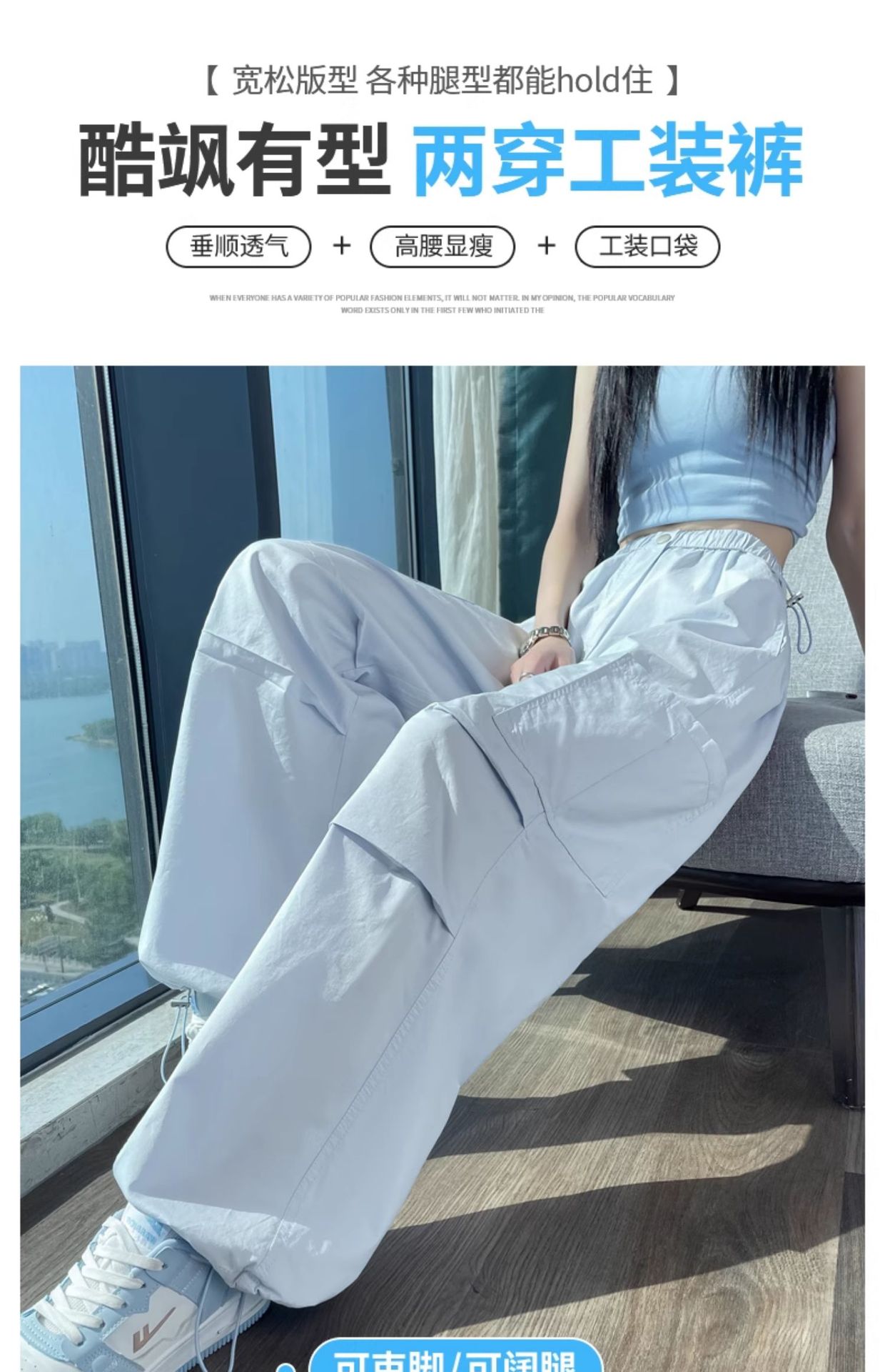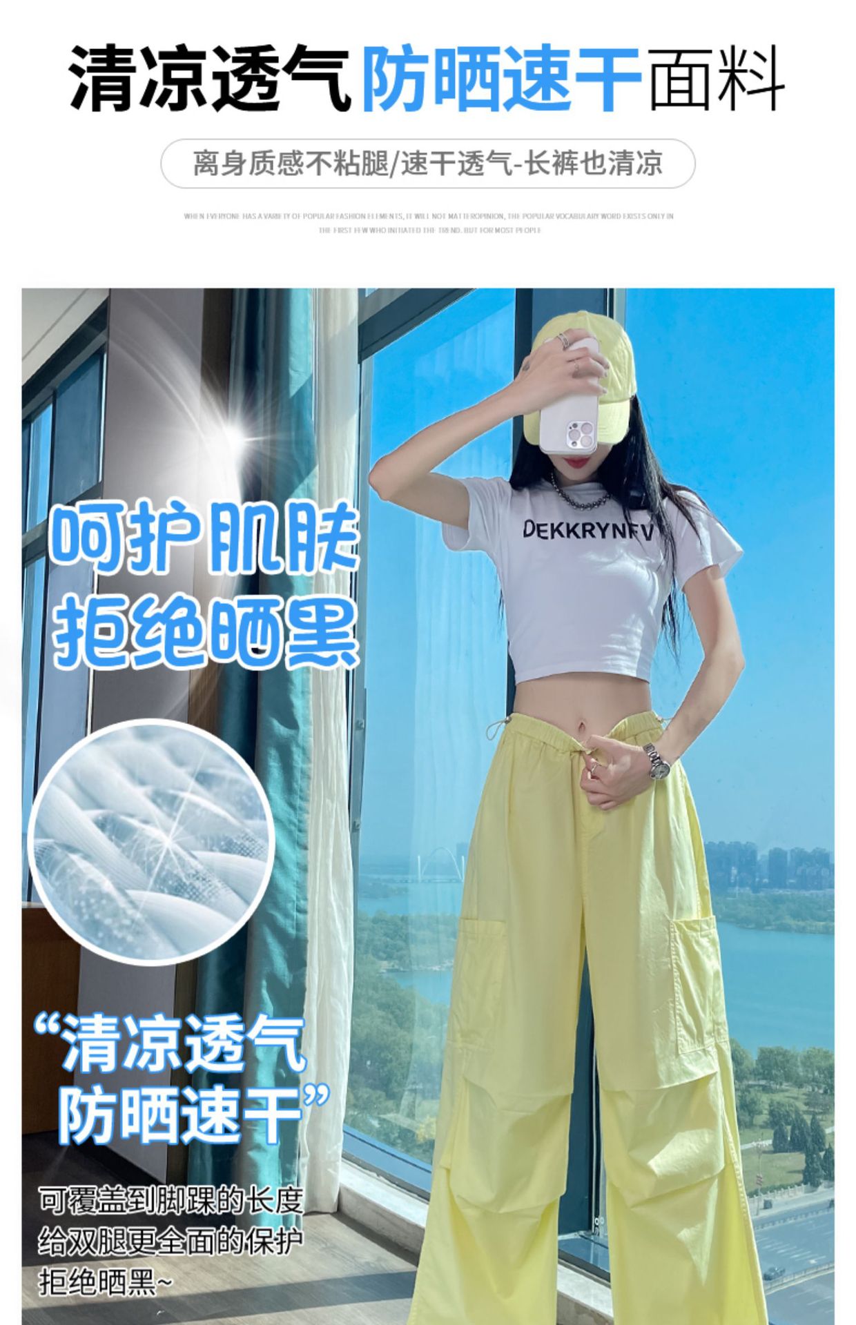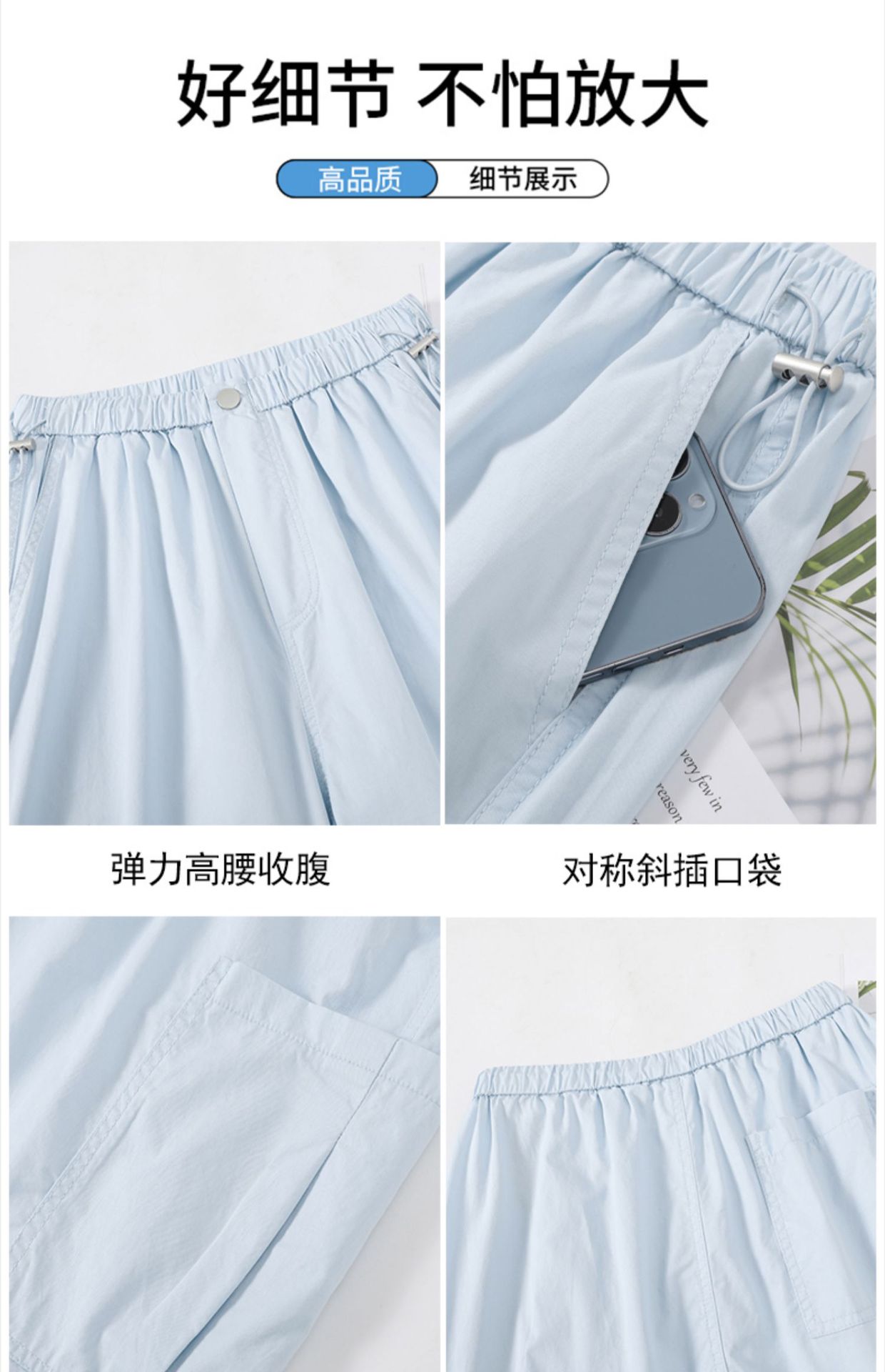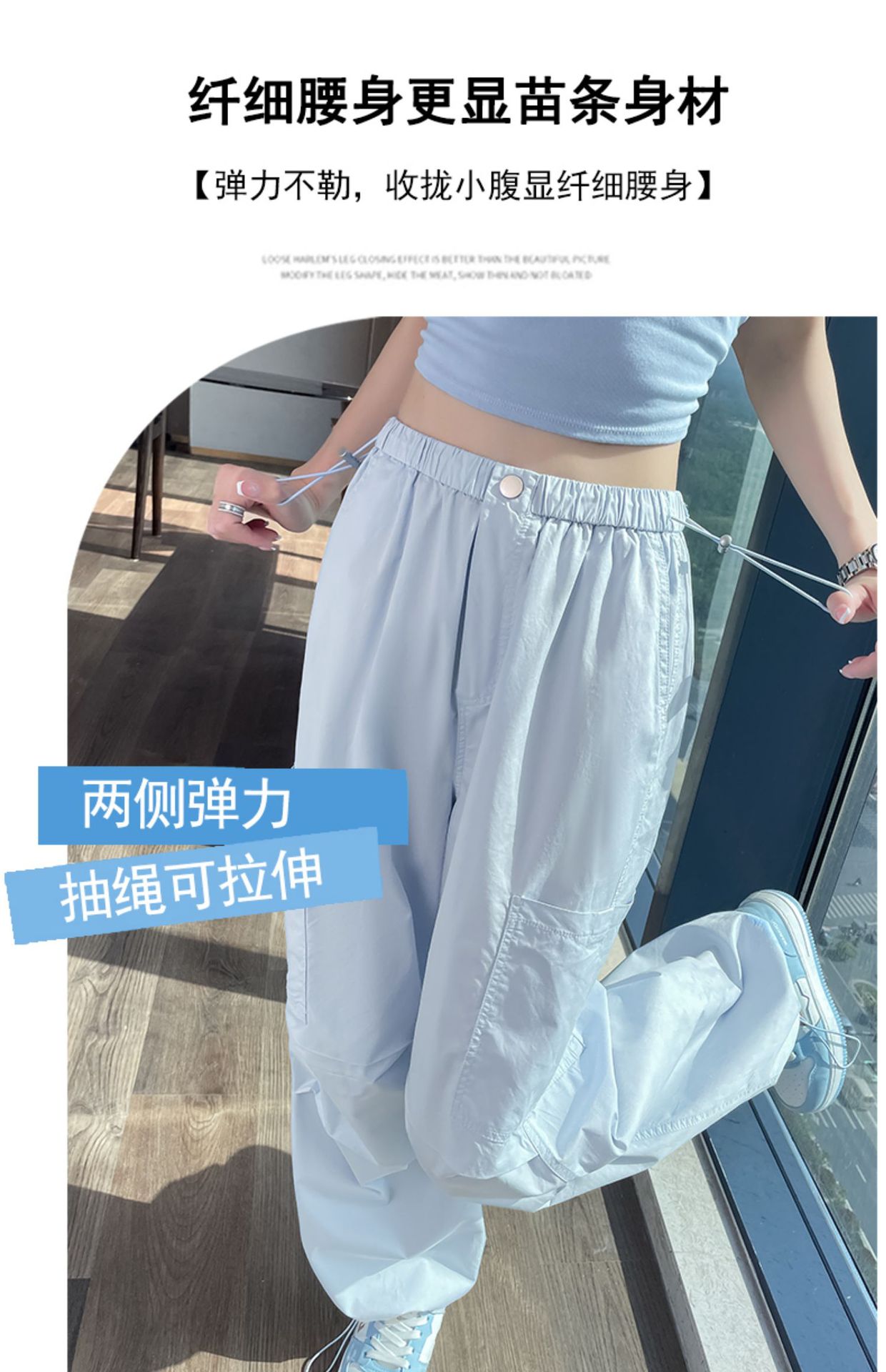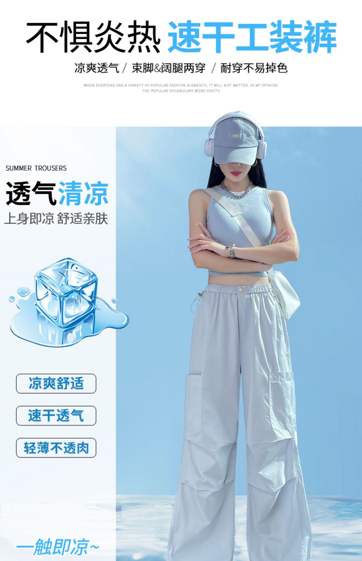 여성을위한 블루 속건성 카고 바지 2025 여름 얇은 도파민 하이킹 바지 얼음 실크 스포츠 낙하산 바지 태양 보호 바지