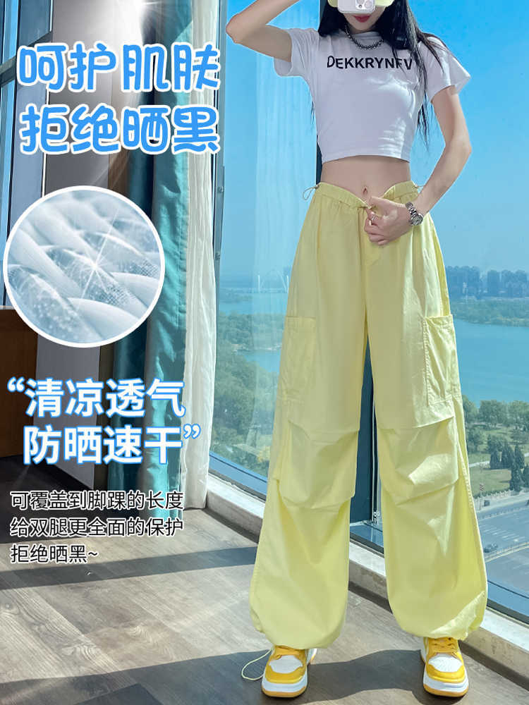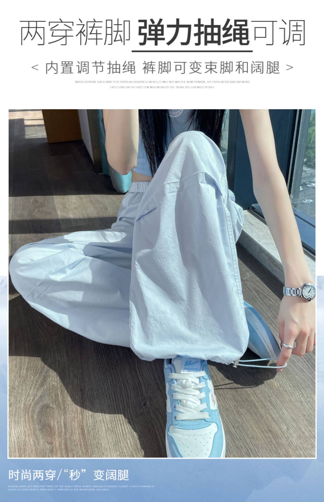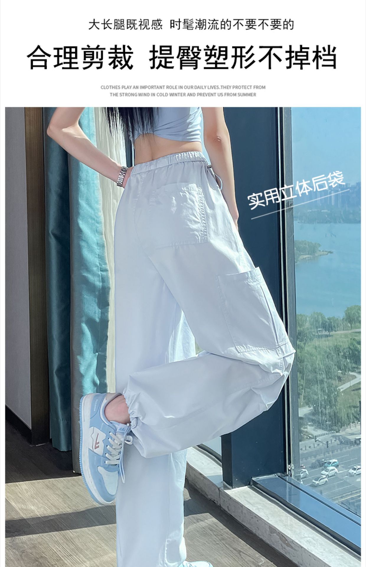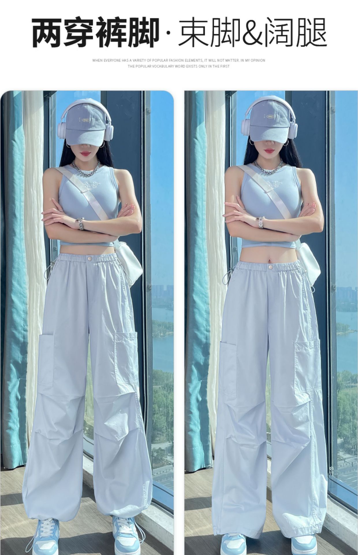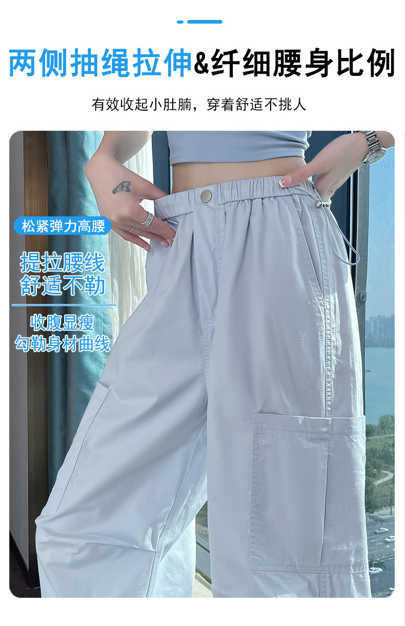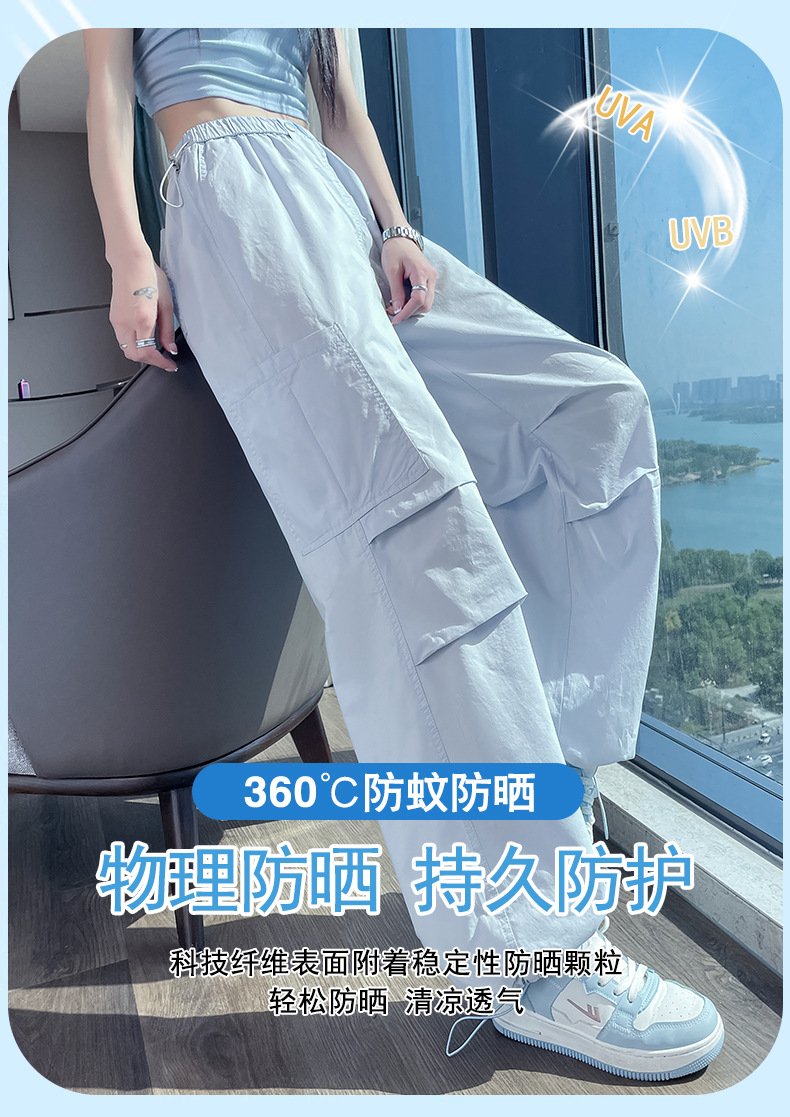 여성을위한 블루 속건성 카고 바지 2025 여름 얇은 도파민 하이킹 바지 얼음 실크 스포츠 낙하산 바지 태양 보호 바지