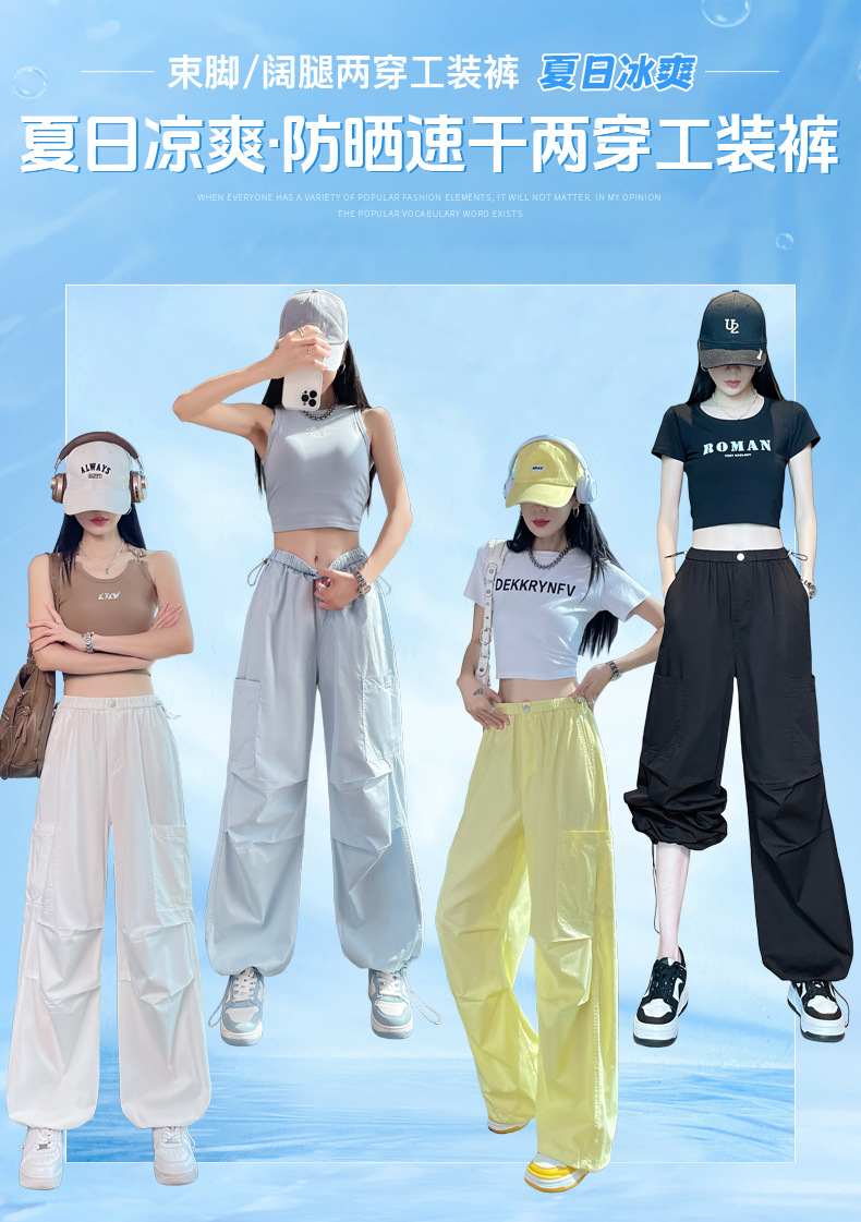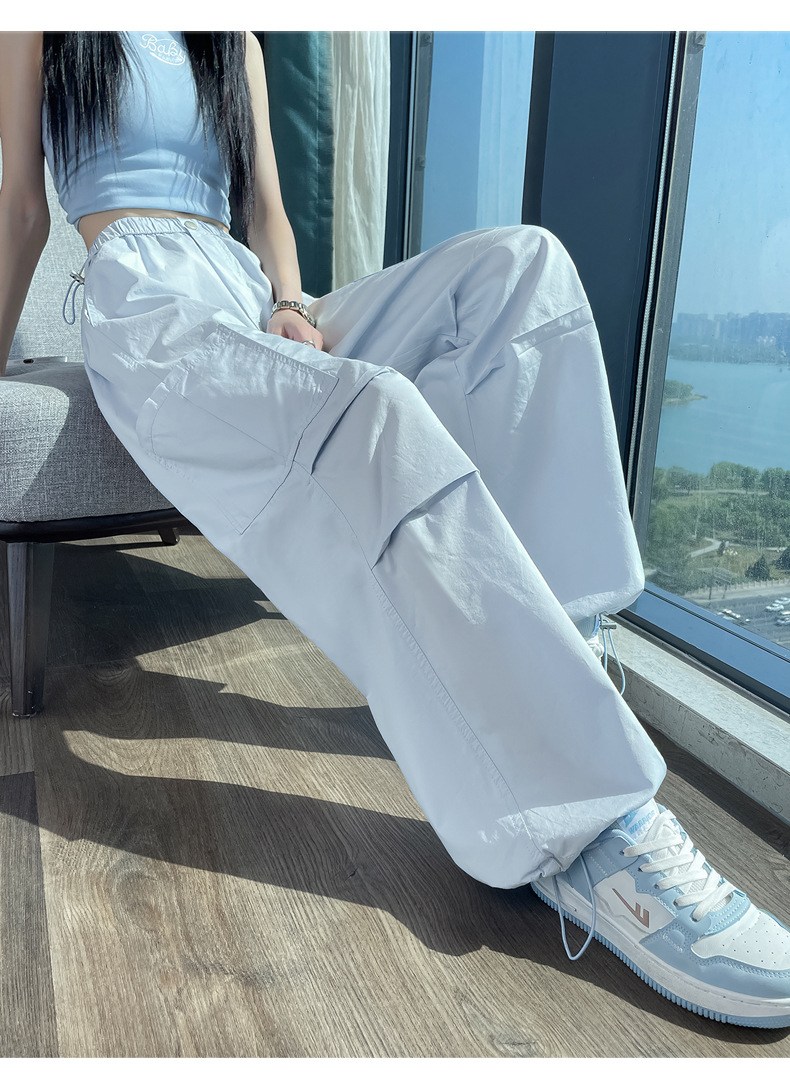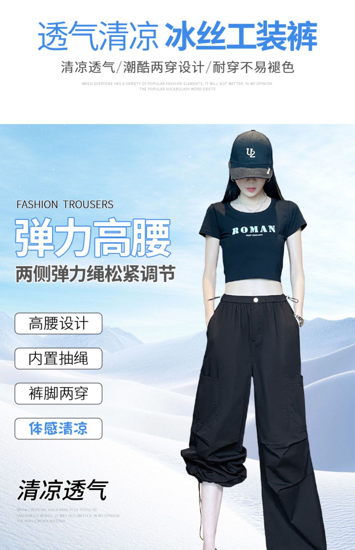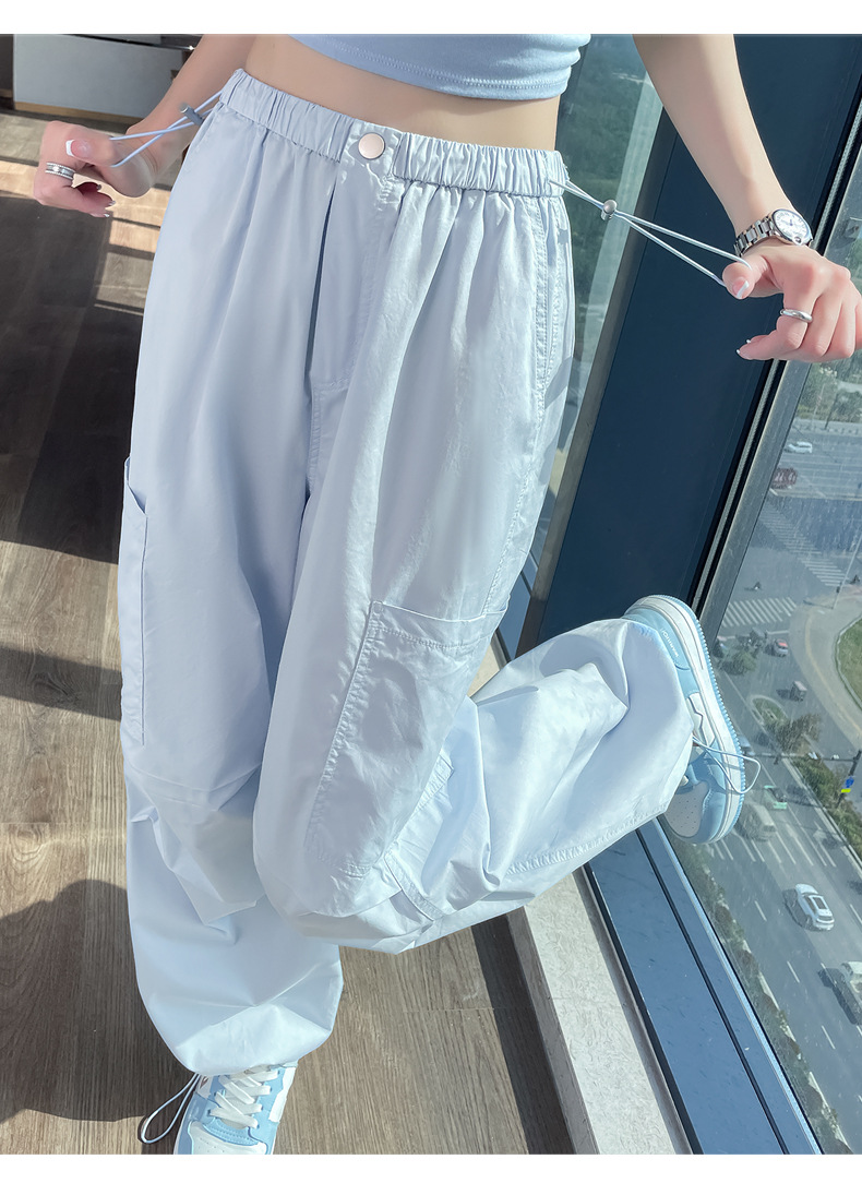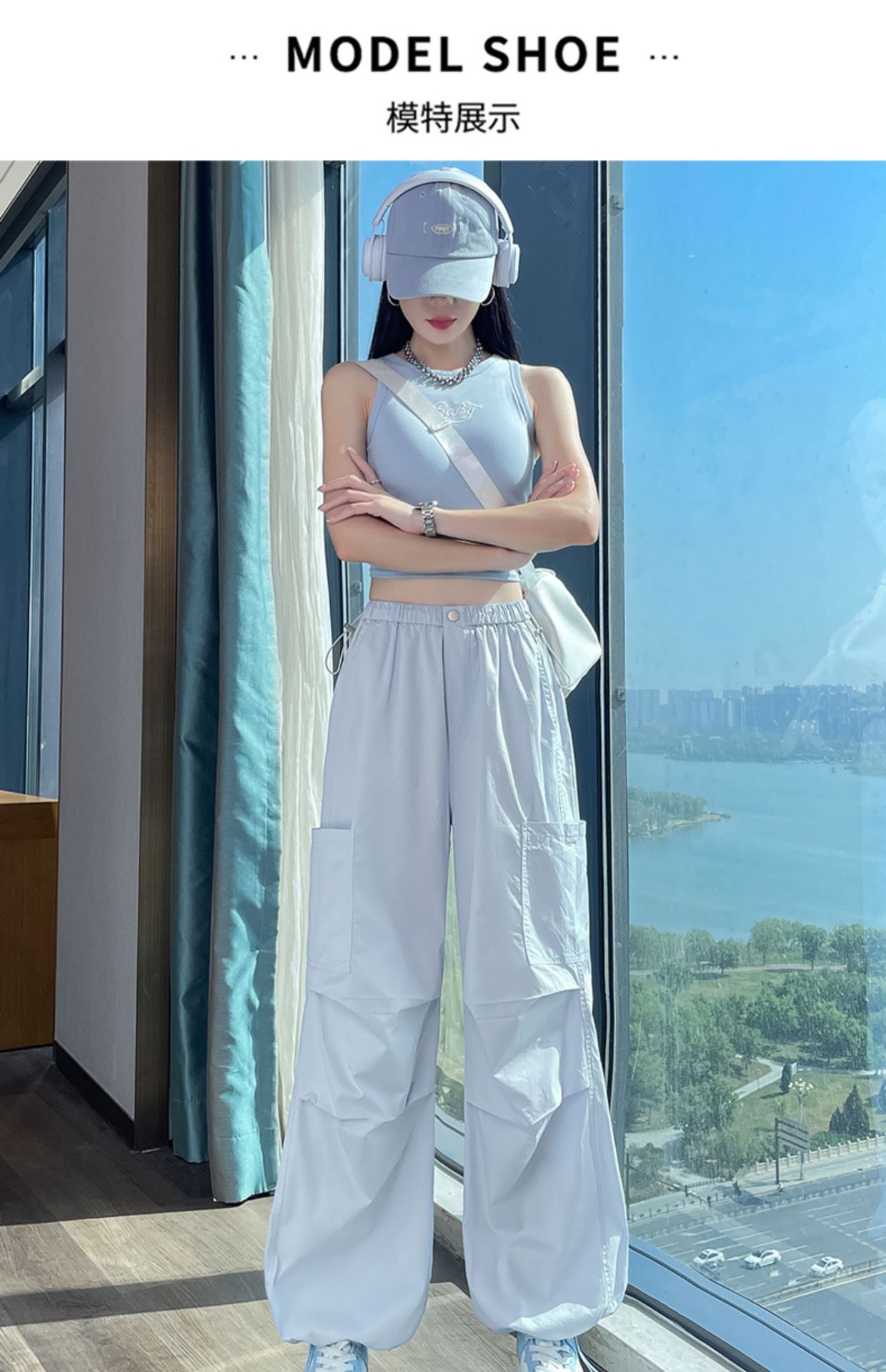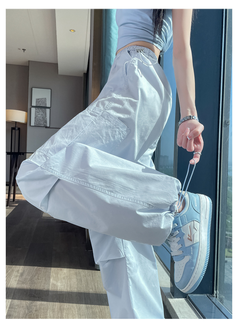 여성을위한 블루 속건성 카고 바지 2025 여름 얇은 도파민 하이킹 바지 얼음 실크 스포츠 낙하산 바지 태양 보호 바지