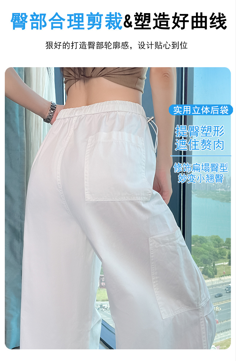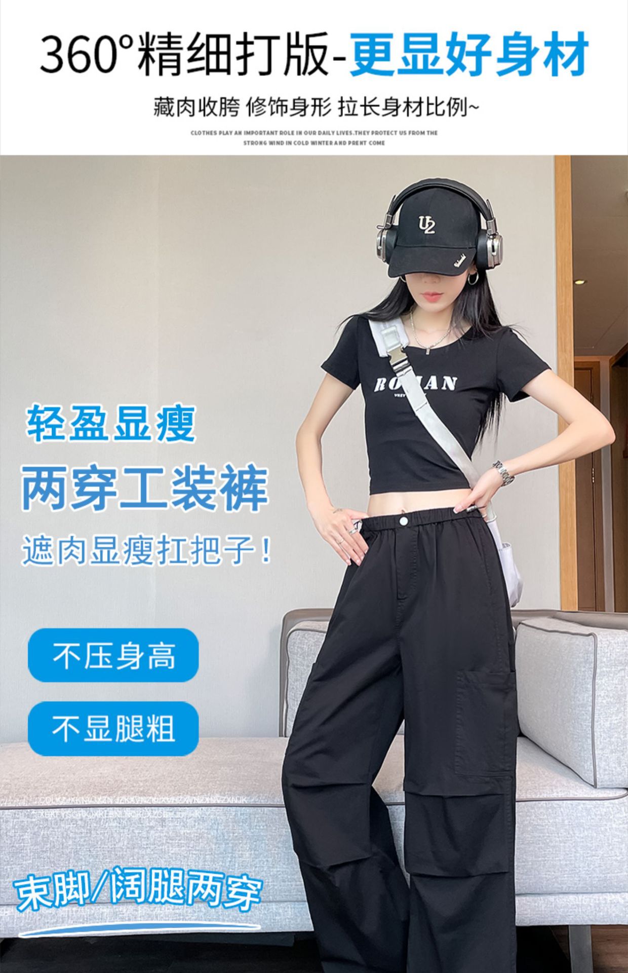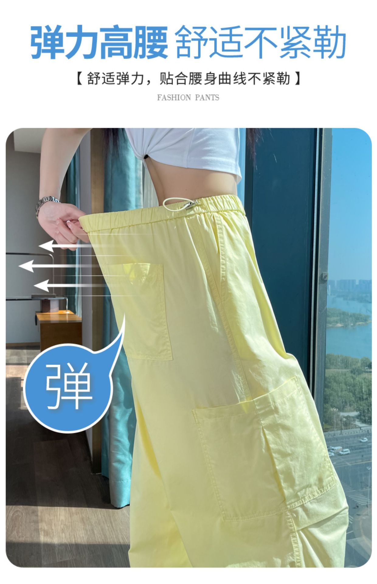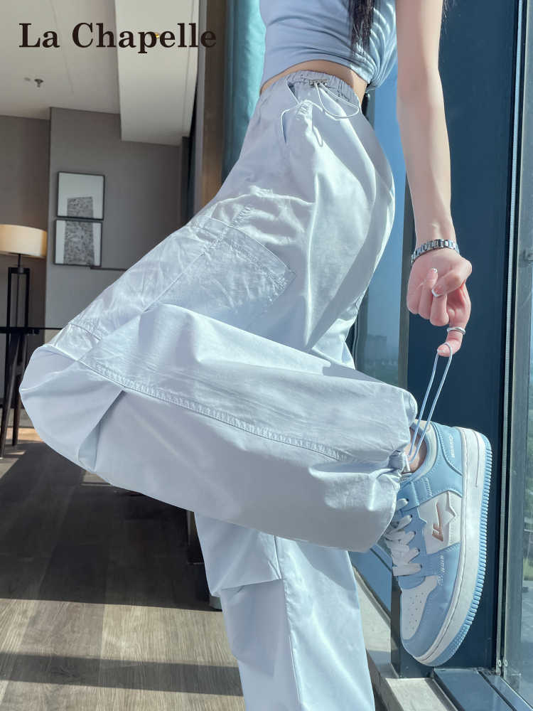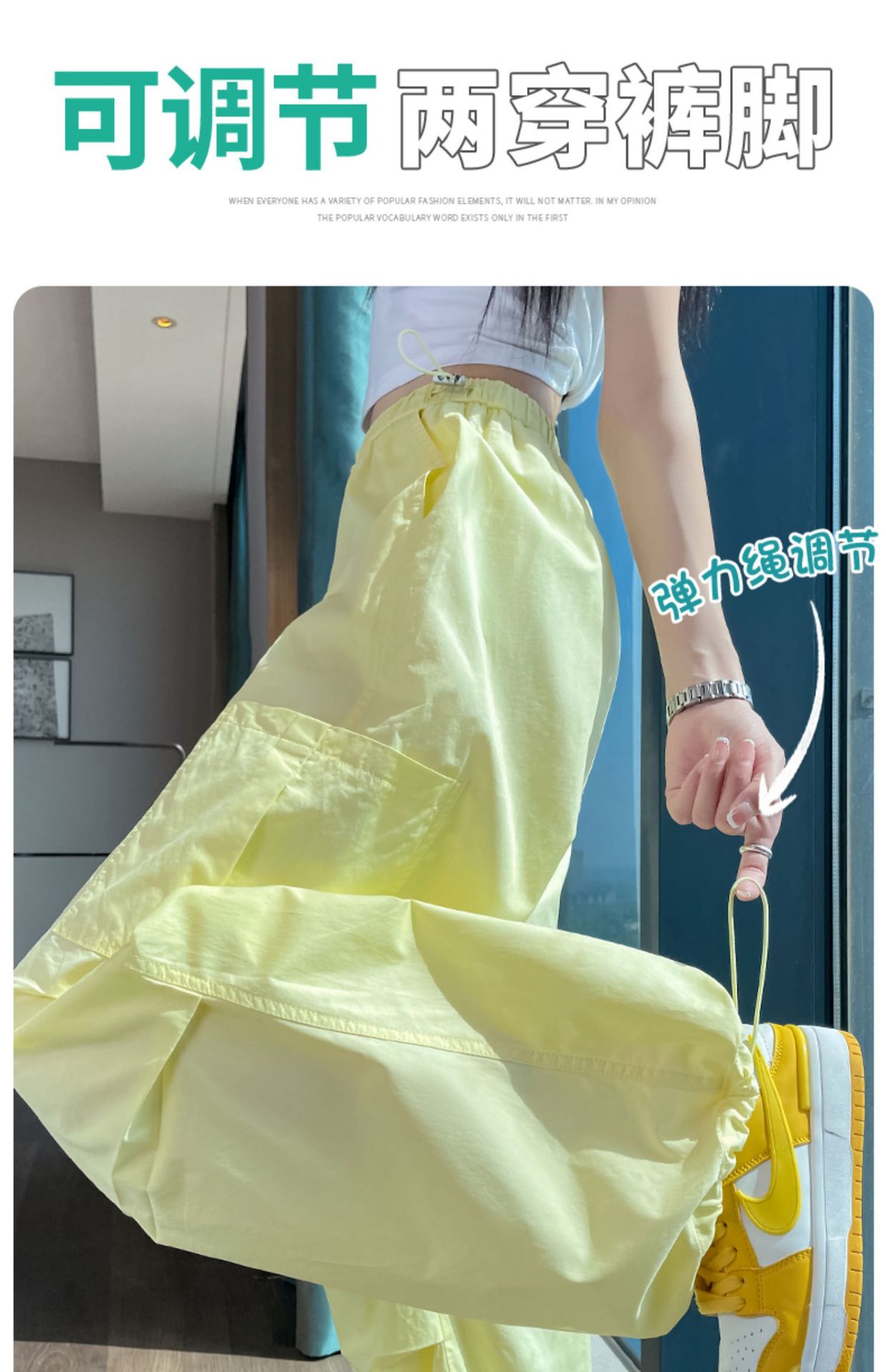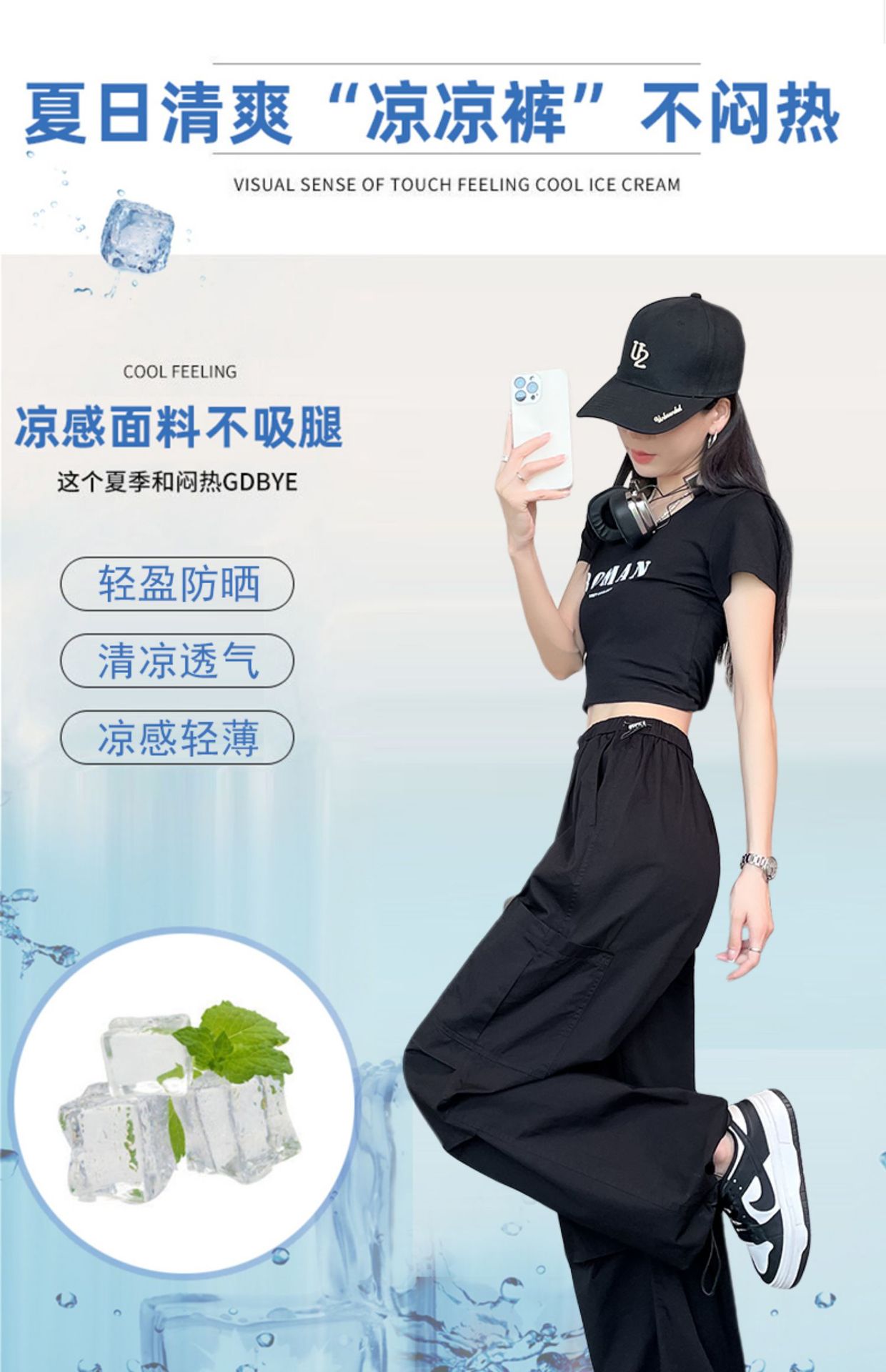 여성을위한 블루 속건성 카고 바지 2025 여름 얇은 도파민 하이킹 바지 얼음 실크 스포츠 낙하산 바지 태양 보호 바지