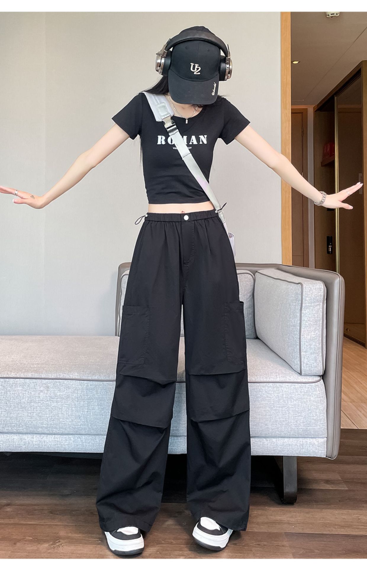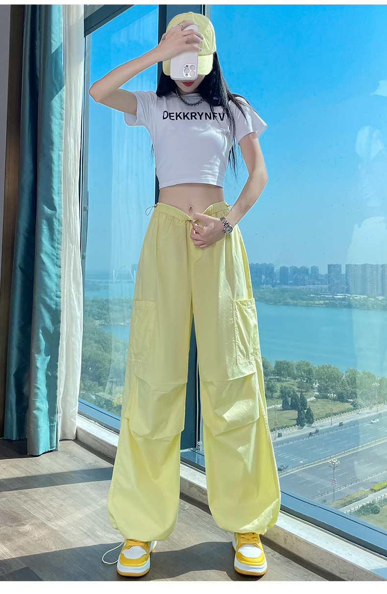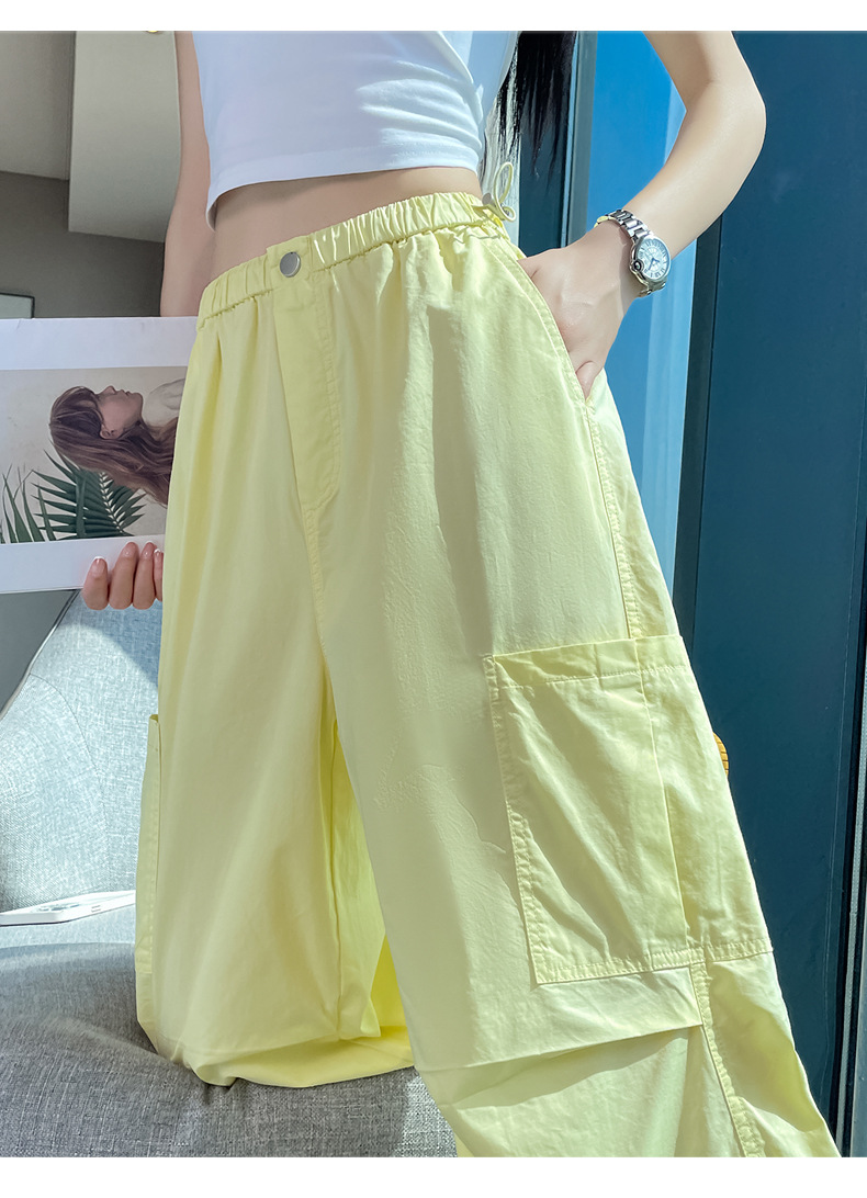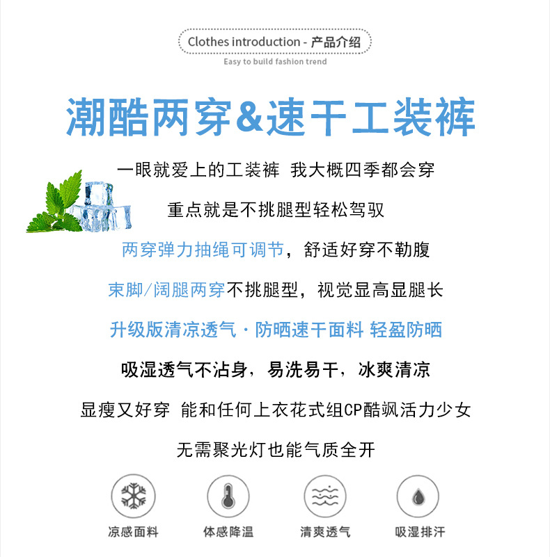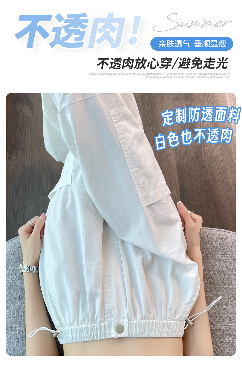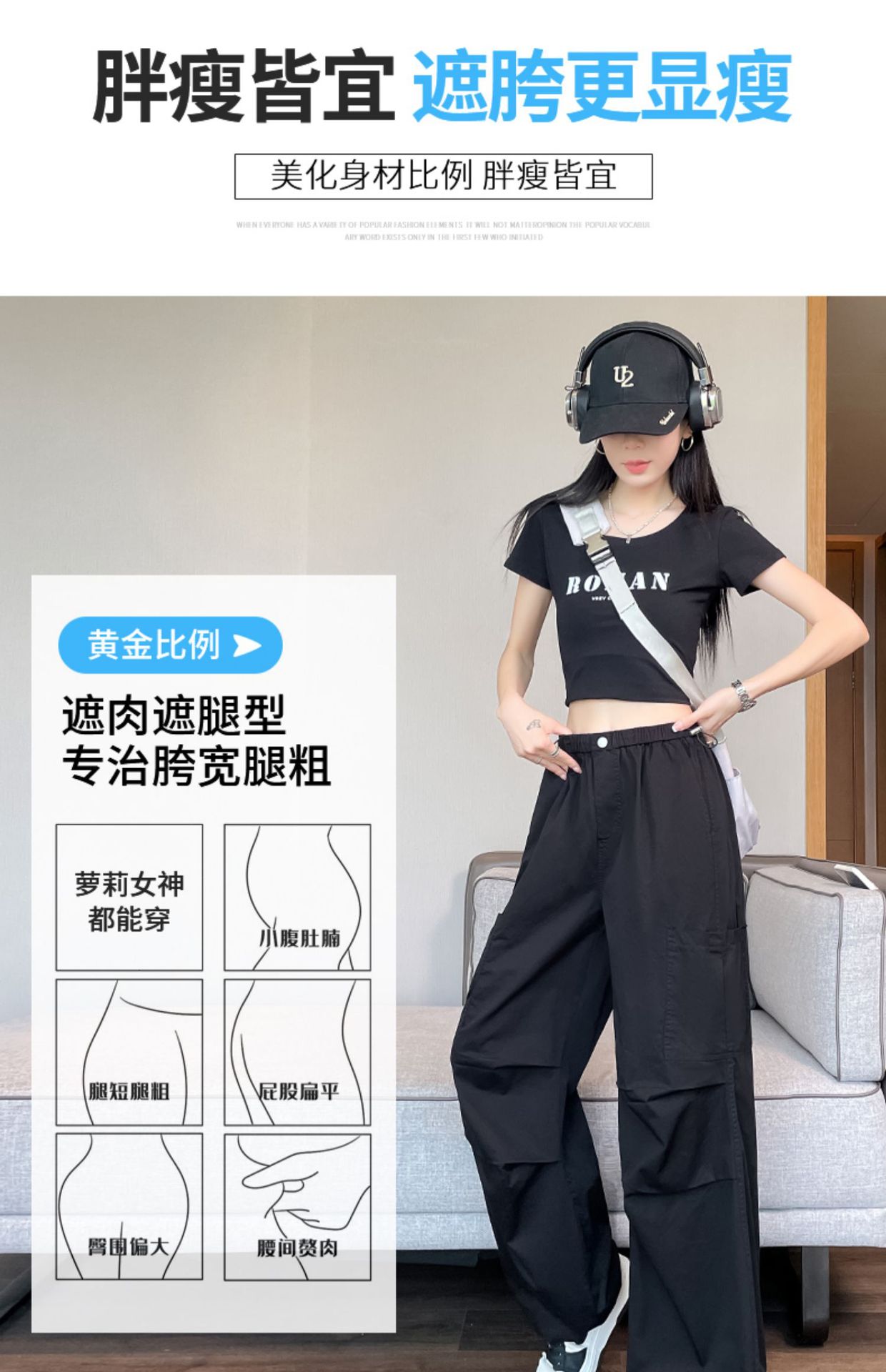 여성을위한 블루 속건성 카고 바지 2025 여름 얇은 도파민 하이킹 바지 얼음 실크 스포츠 낙하산 바지 태양 보호 바지