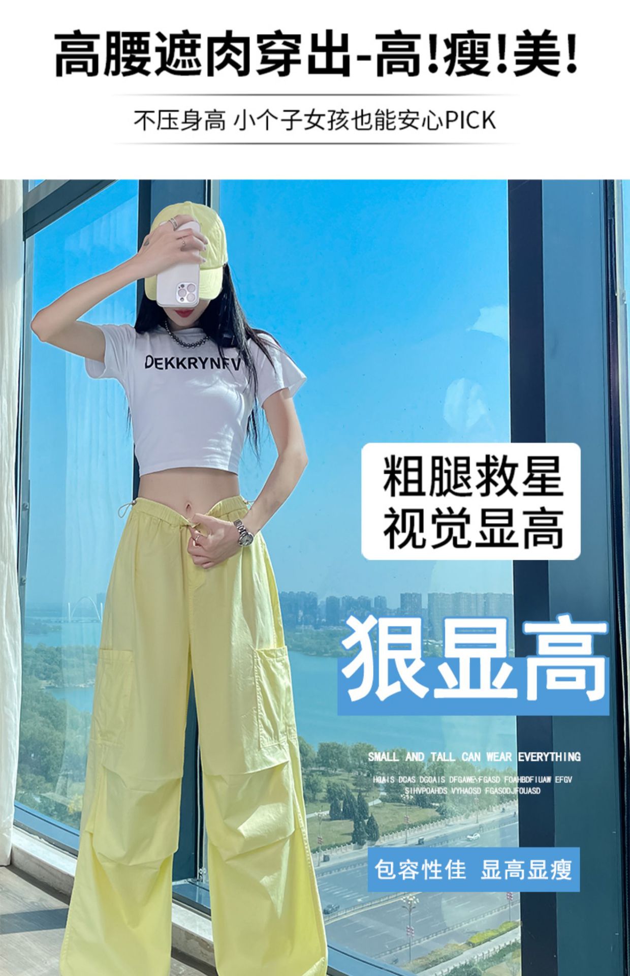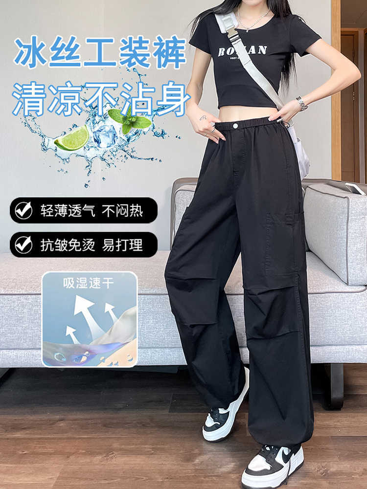 여성을위한 블루 속건성 카고 바지 2025 여름 얇은 도파민 하이킹 바지 얼음 실크 스포츠 낙하산 바지 태양 보호 바지스토어 가기