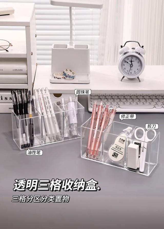 투명한 펜 홀더, 고급스러운 사무실 책상 보관함, 대용량, 다기능, 고급 학습 장식품, 학생 책상스토어 가기
