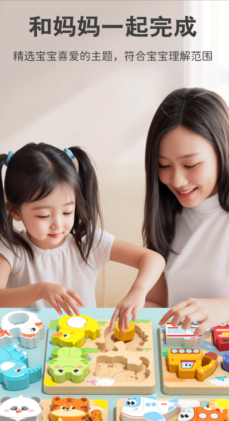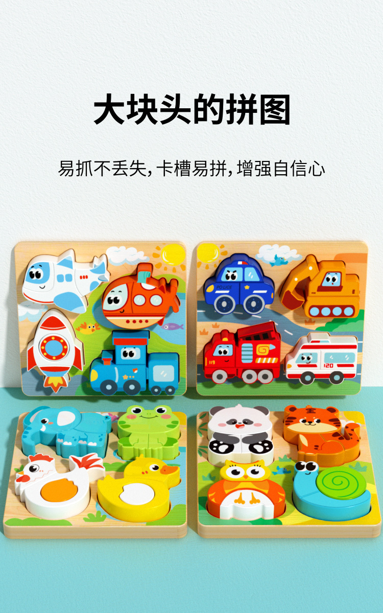 교육용 어린이 퍼즐 3D 입체 장난감 몬테소리 나무 아기 동물 빌딩 블록 문맹 퇴치 1세 반 2~3세스토어 가기