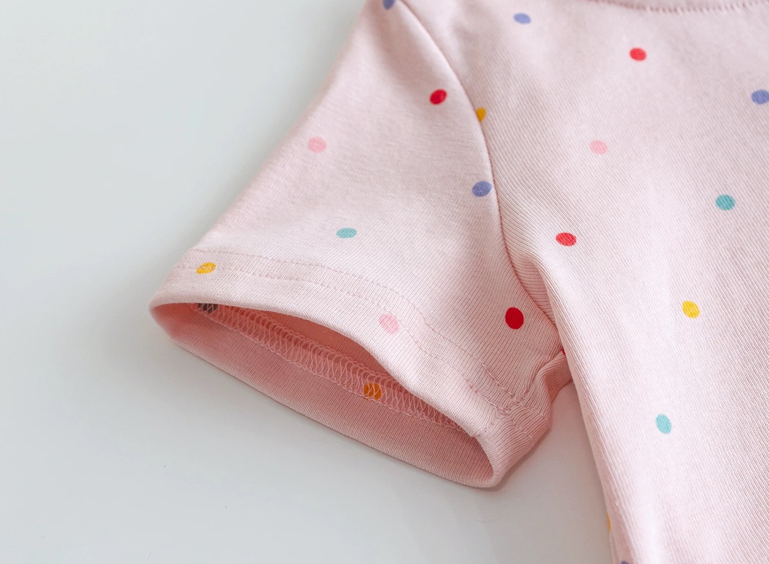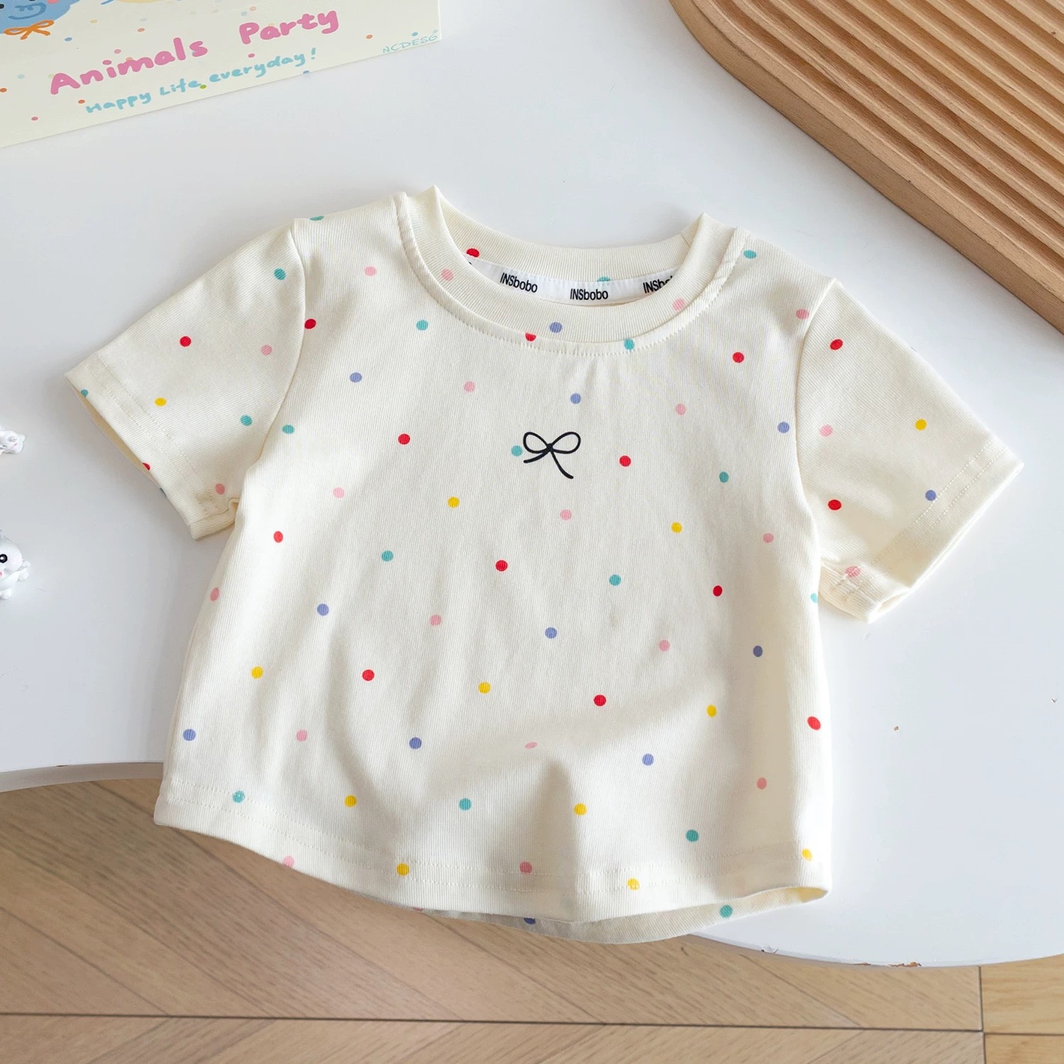 100% 면 여아 반팔 티셔츠 2025 신작 아동용 탑 폴카 도트 베이비 여름 착용 심플하고 다재다능한 탑스토어 가기
