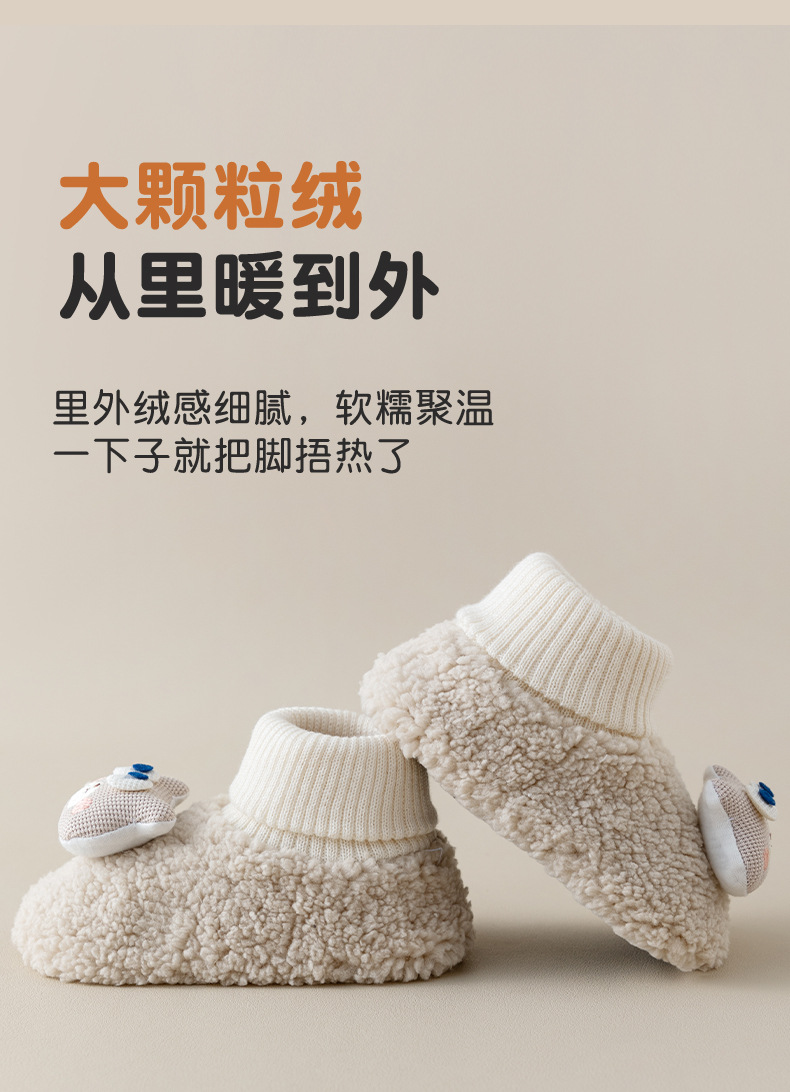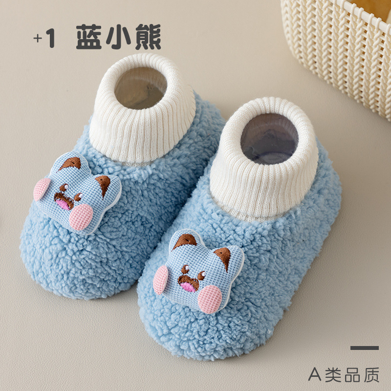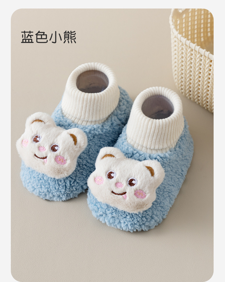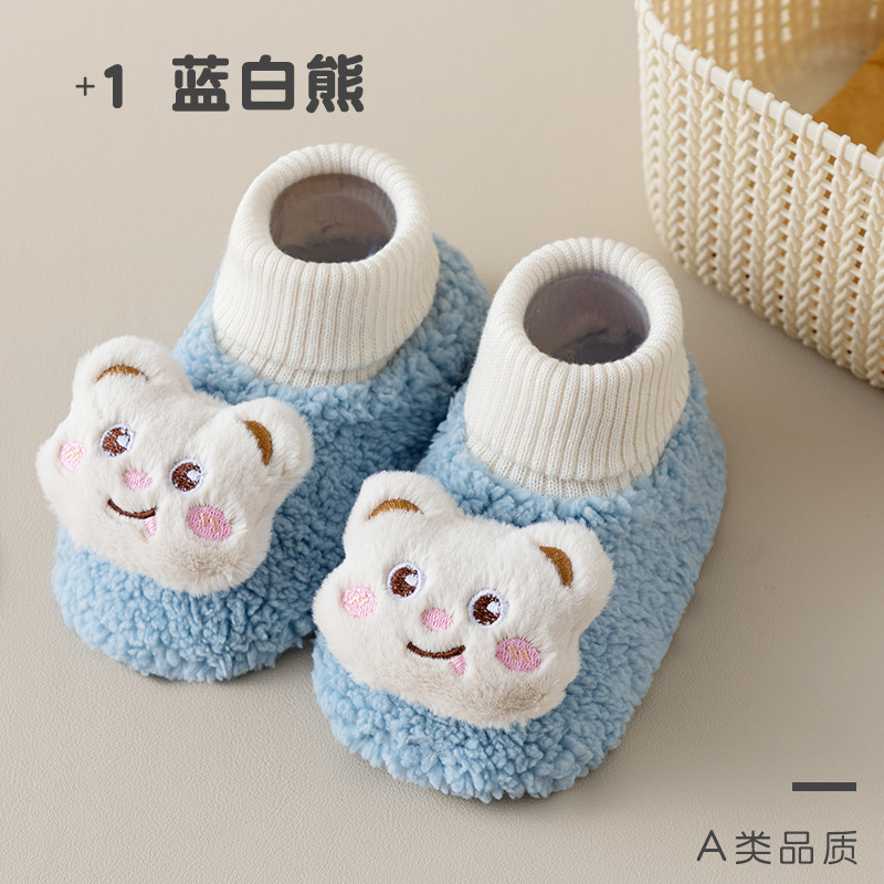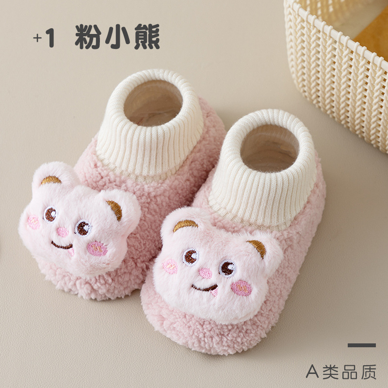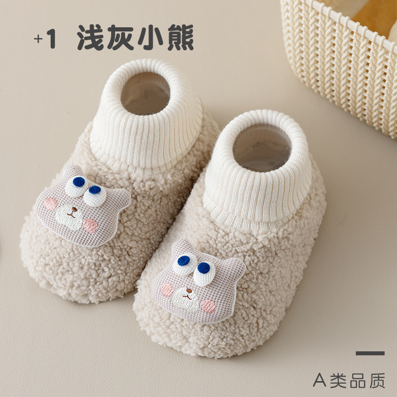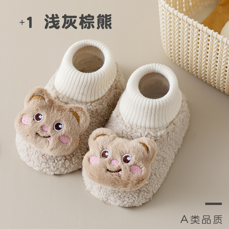 남녀 아기를 위한 아기 가을 겨울 벨벳 따뜻하고 편안한 면화, 하이탑 플로어 양말, 모피 신발, 신생아 신발 및 양말스토어 가기