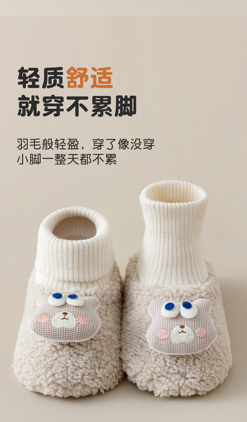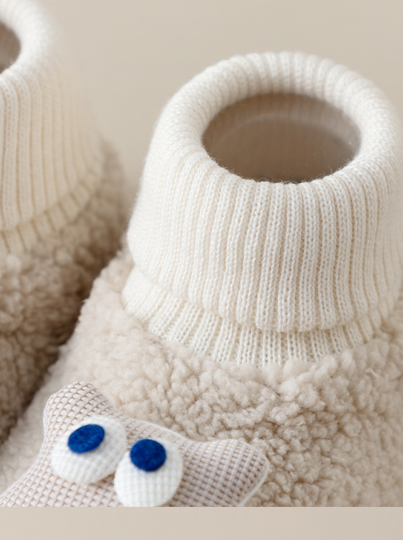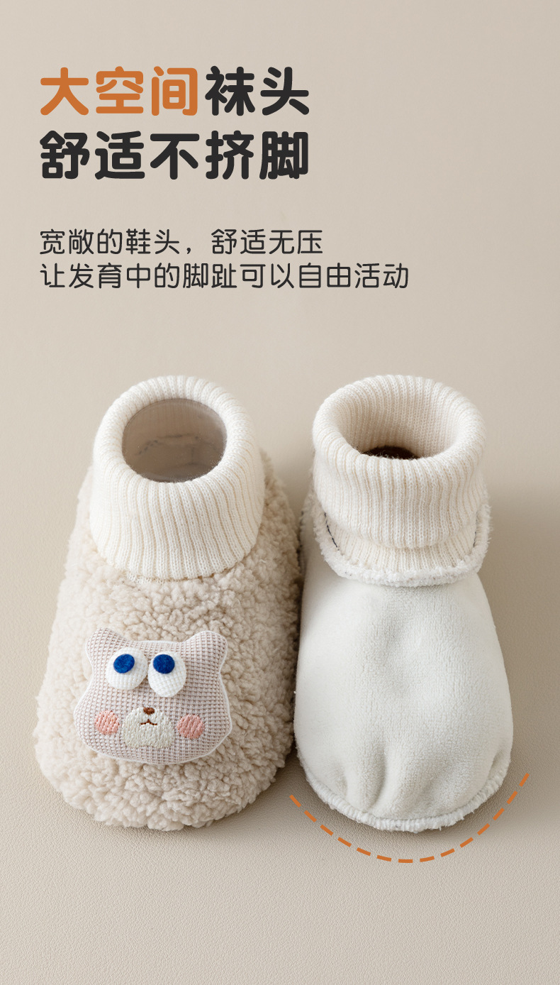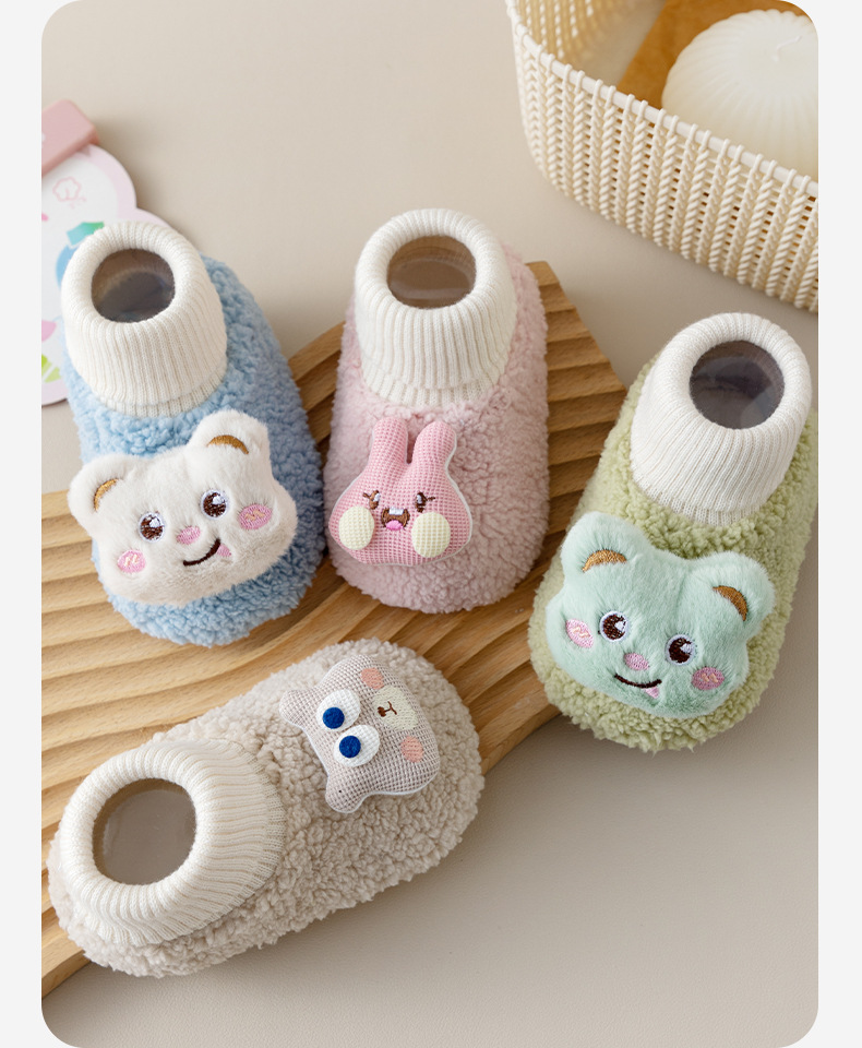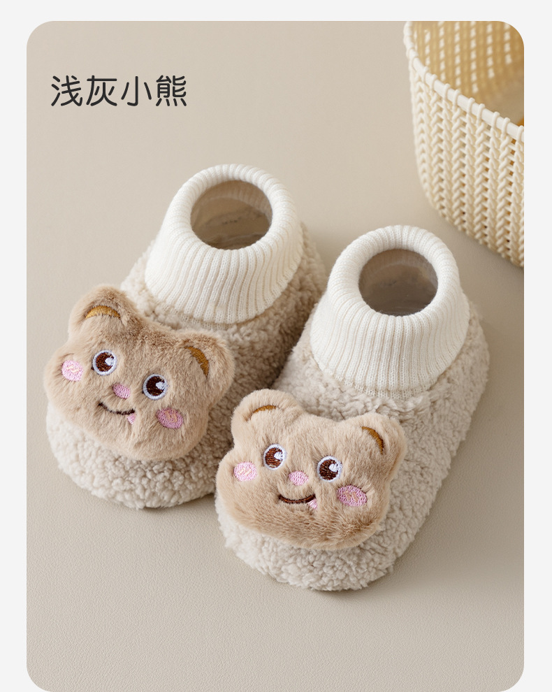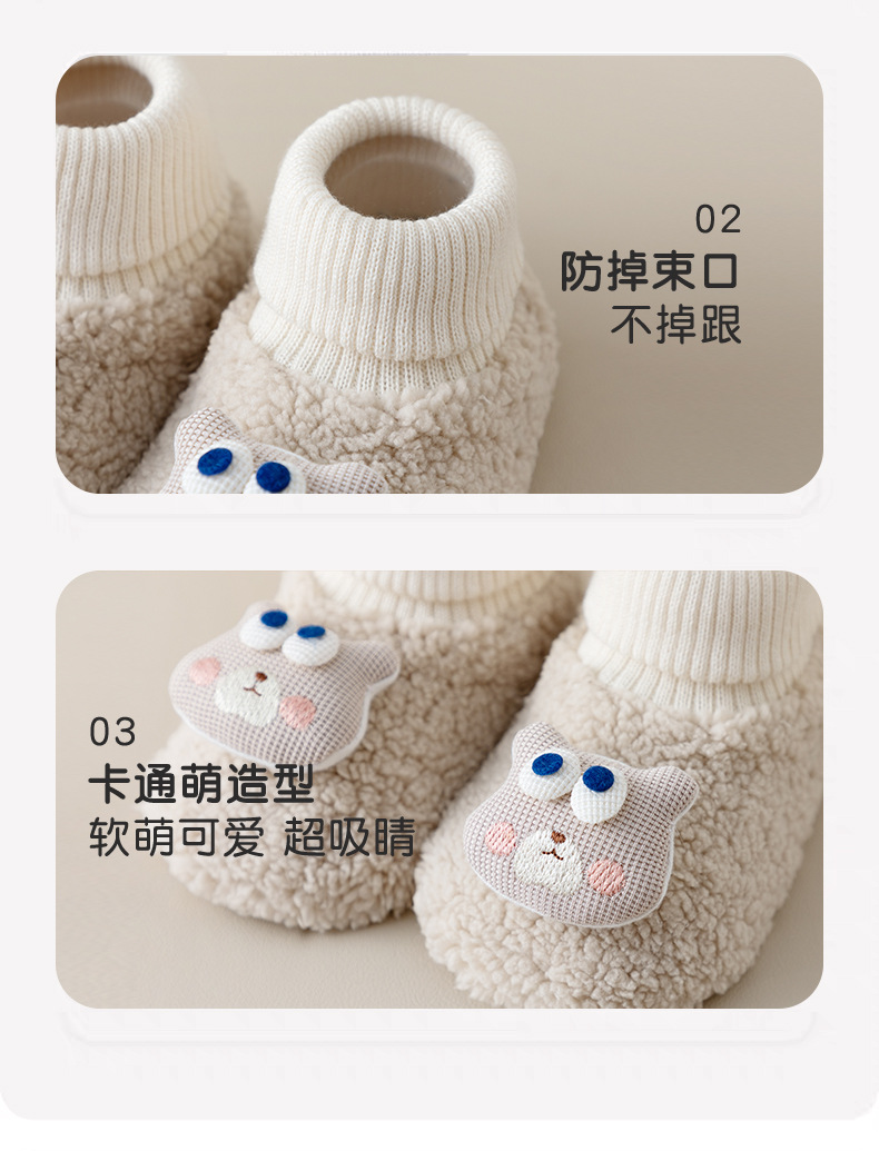 남녀 아기를 위한 아기 가을 겨울 벨벳 따뜻하고 편안한 면화, 하이탑 플로어 양말, 모피 신발, 신생아 신발 및 양말스토어 가기