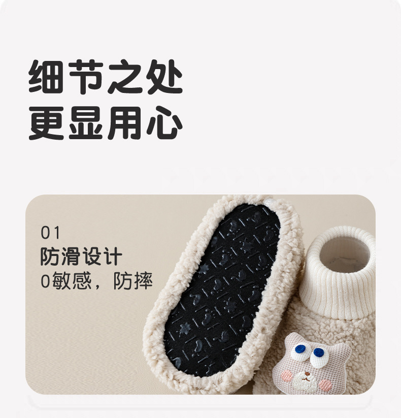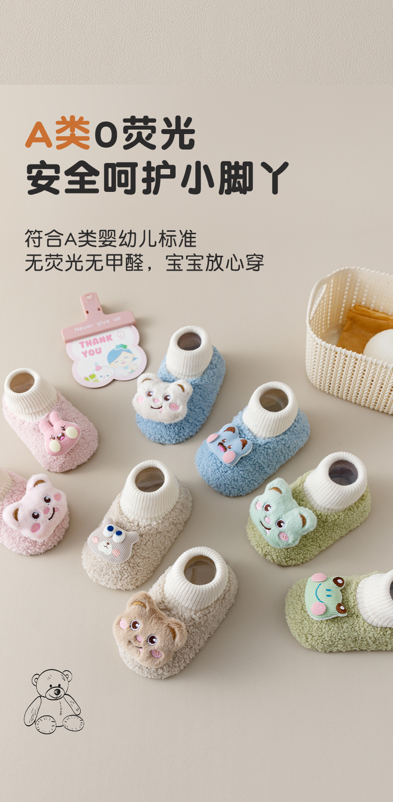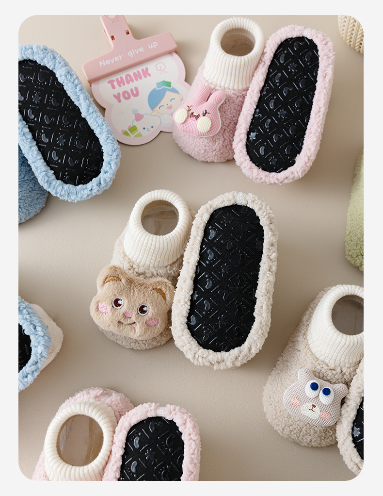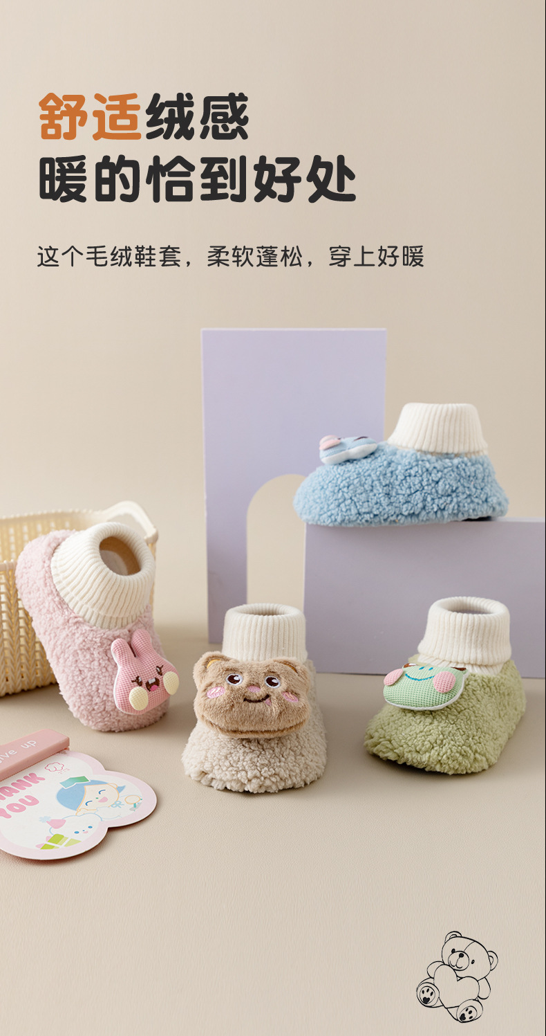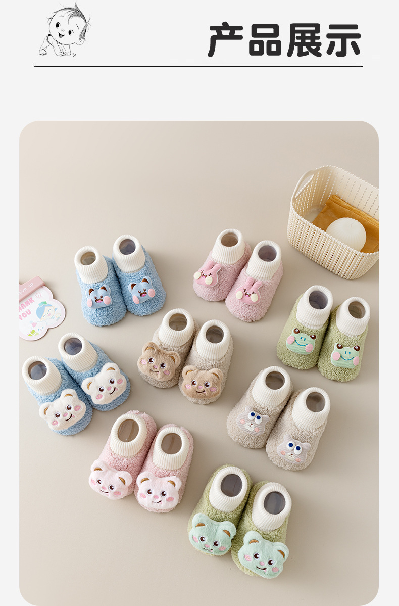 남녀 아기를 위한 아기 가을 겨울 벨벳 따뜻하고 편안한 면화, 하이탑 플로어 양말, 모피 신발, 신생아 신발 및 양말스토어 가기
