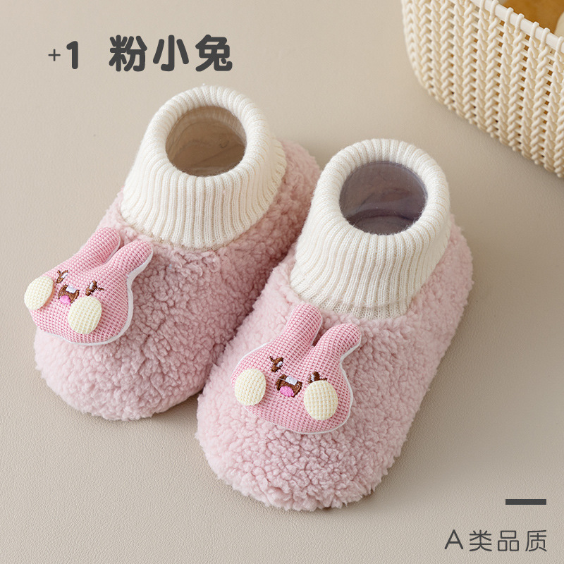 남녀 아기를 위한 아기 가을 겨울 벨벳 따뜻하고 편안한 면화, 하이탑 플로어 양말, 모피 신발, 신생아 신발 및 양말