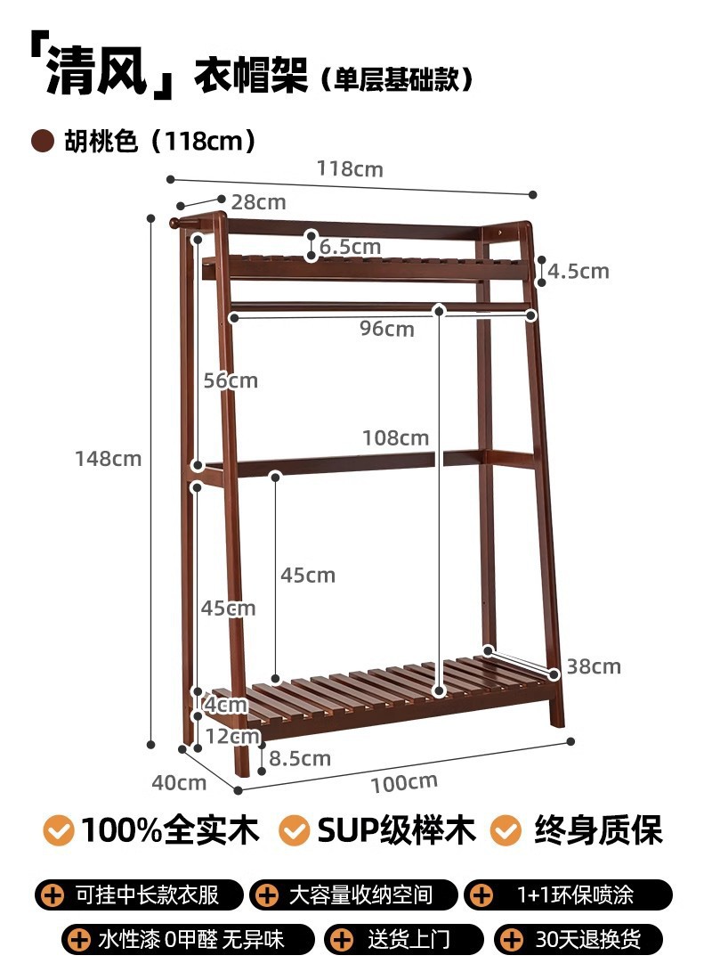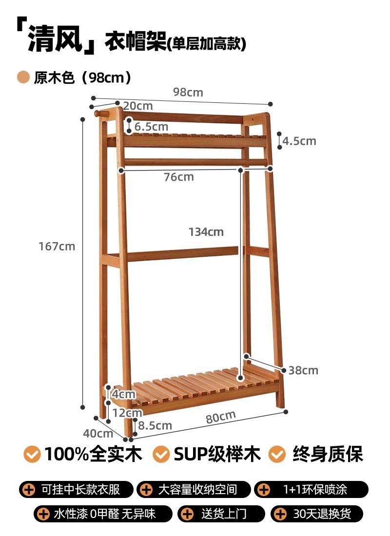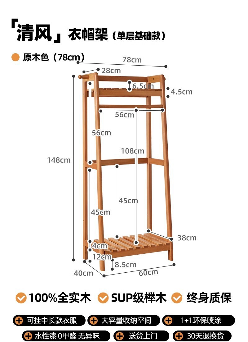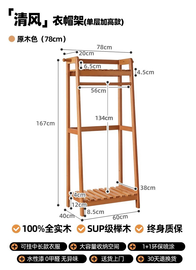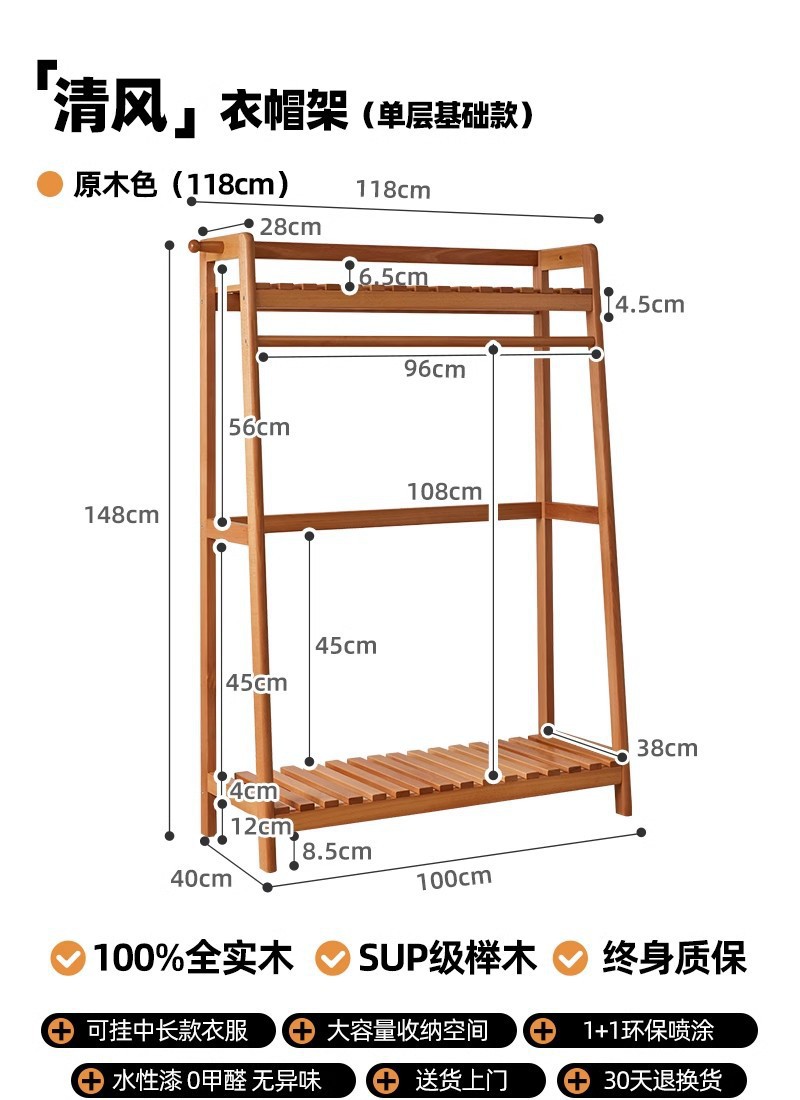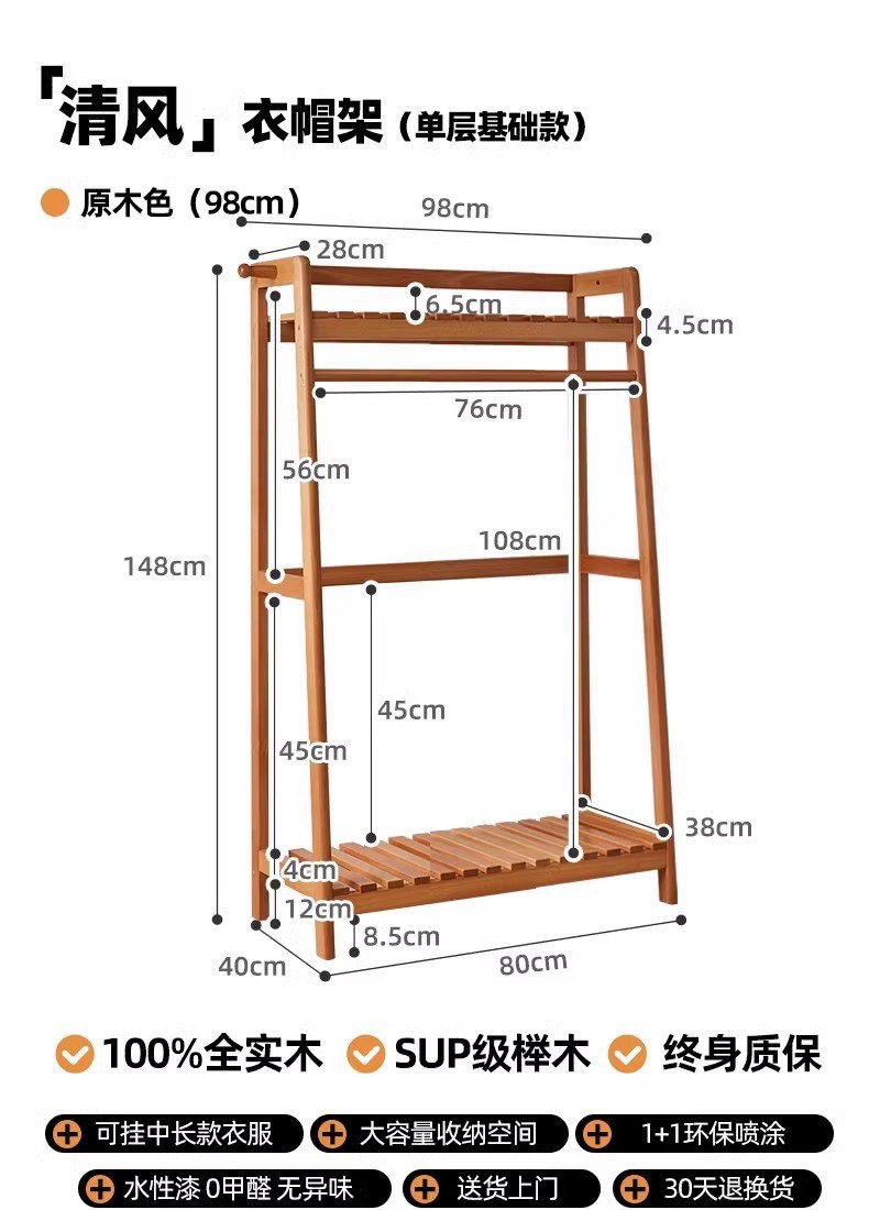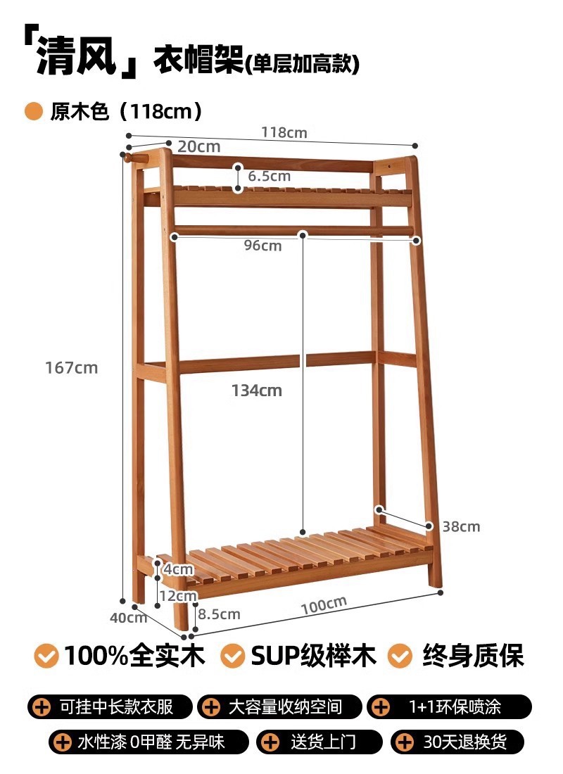 너도밤나무 옷걸이, 바닥에서 천장까지 옷걸이, 순수 원목 옷걸이, 침대 옆 옷걸이, 튼튼하고 내구성이 뛰어난 옷걸이스토어 가기