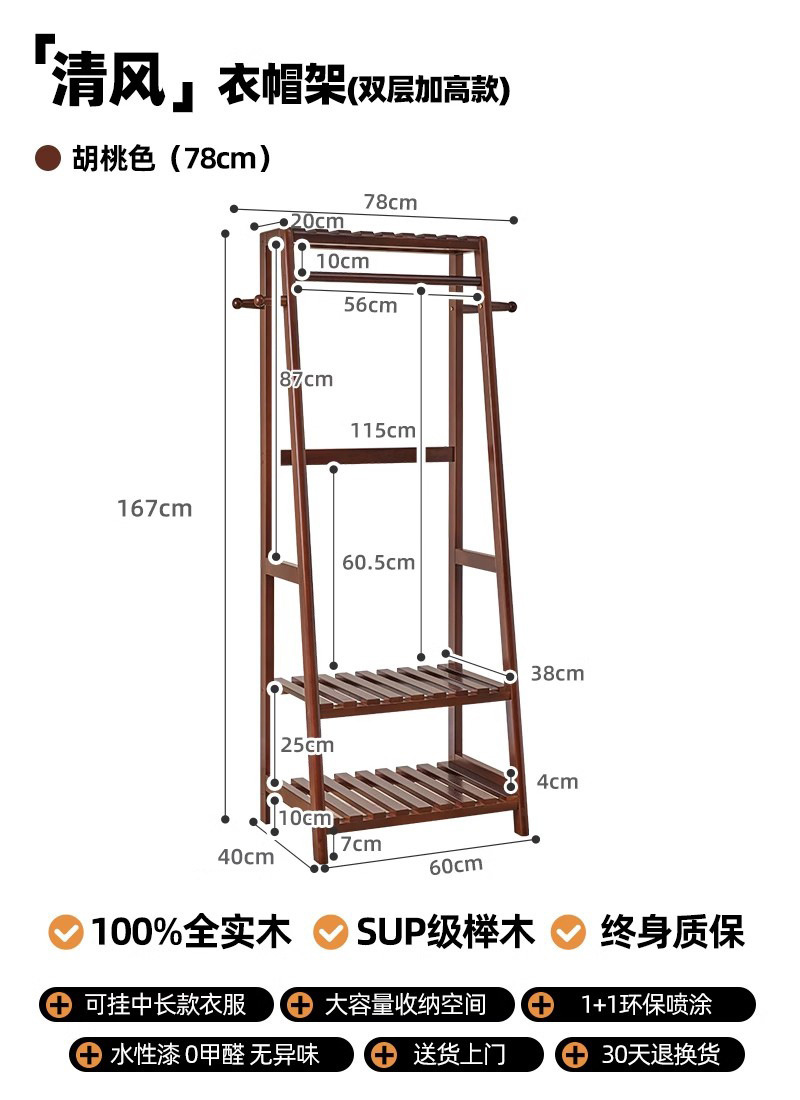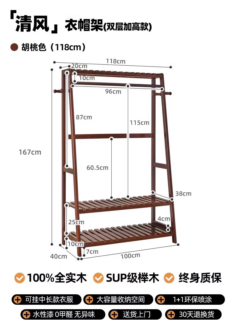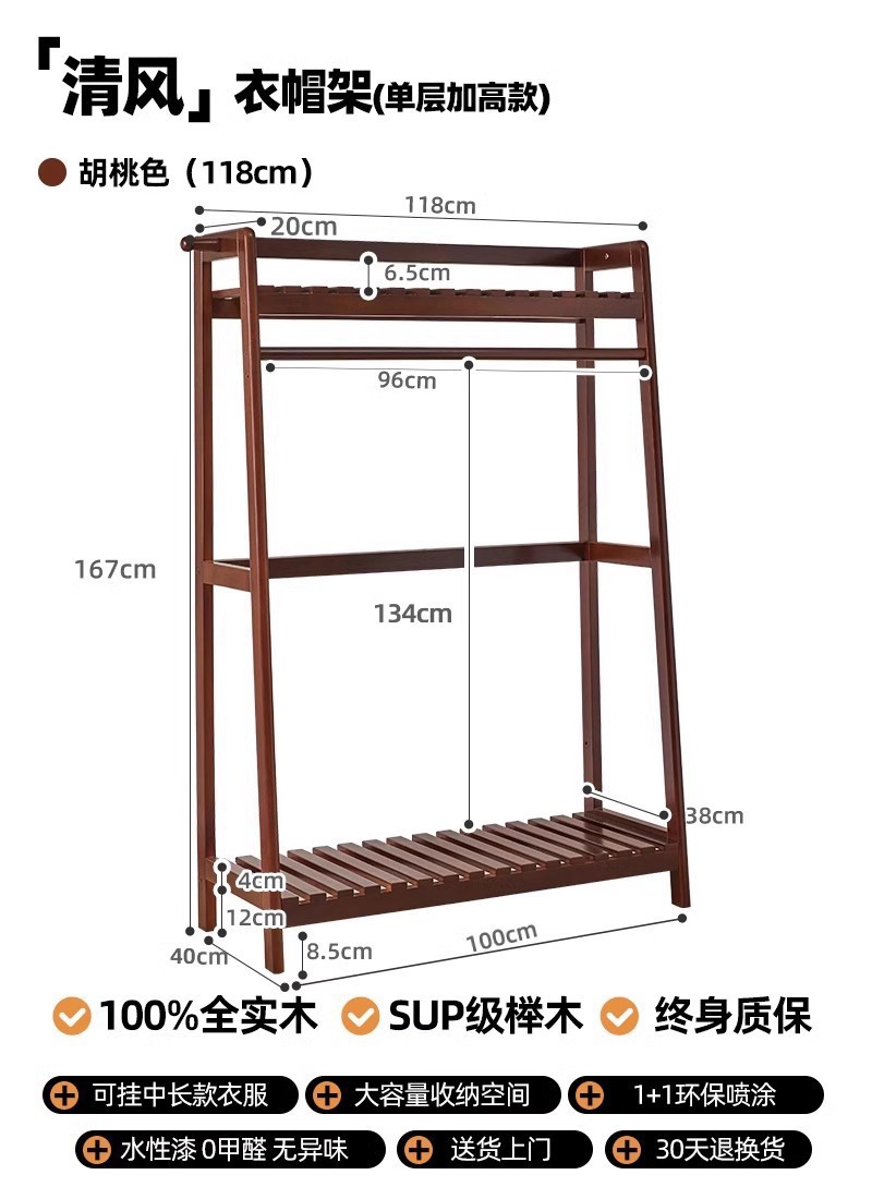• 클래식 월넛 컬러 사다리꼴 옷걸이 118cm ([독일산 너도밤나무 택배])