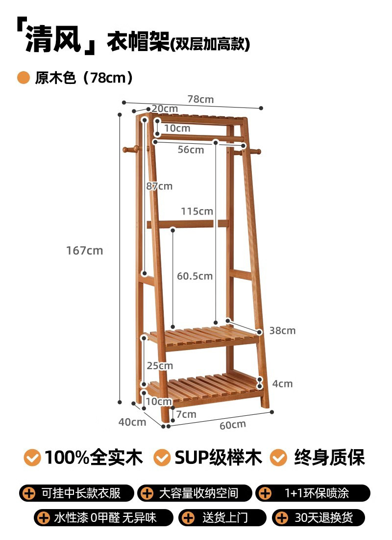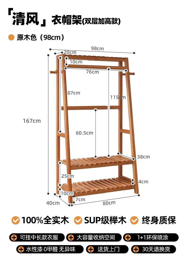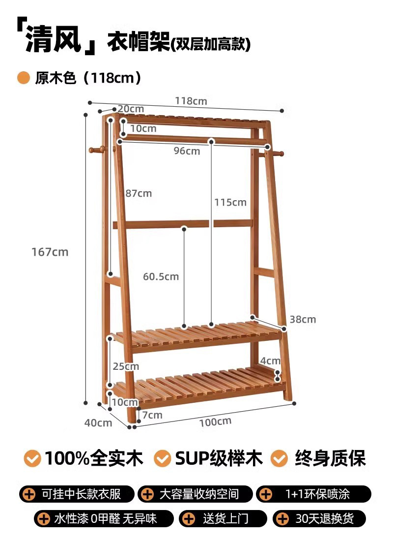 너도밤나무 옷걸이, 바닥에서 천장까지 옷걸이, 순수 원목 옷걸이, 침대 옆 옷걸이, 튼튼하고 내구성이 뛰어난 옷걸이