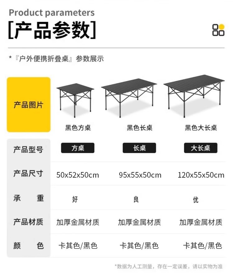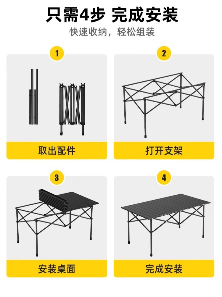 • 탄소강 120*55*50 노란색 긴 테이블 + 보관 가방