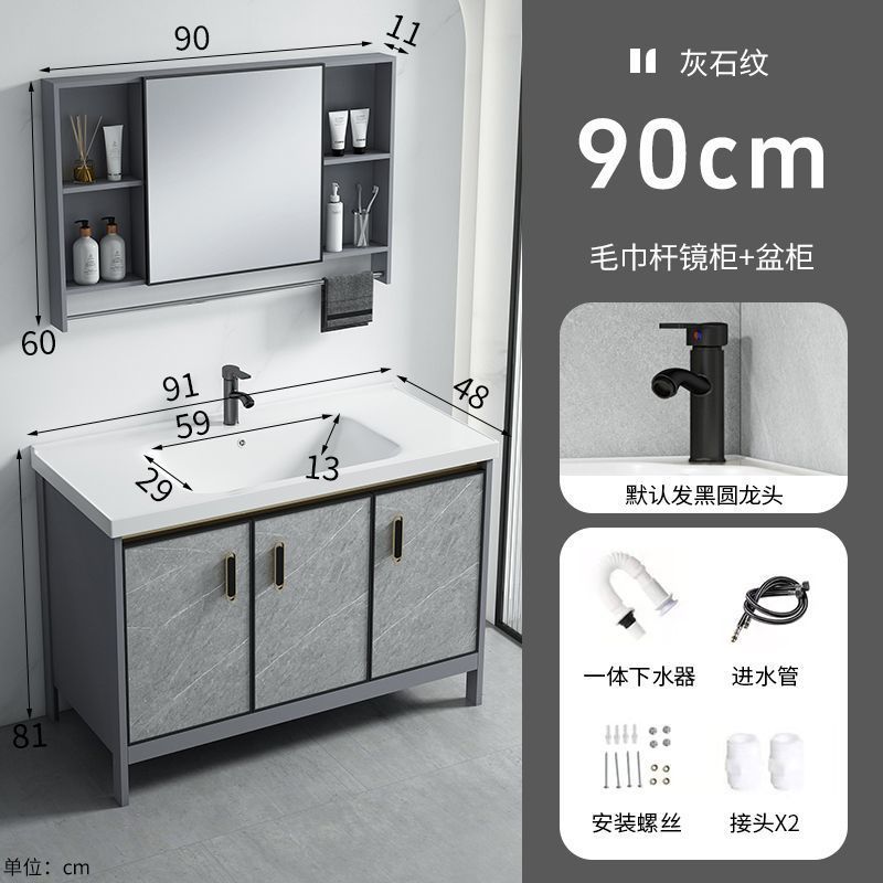 • 스톤 그레이-91X48CM 세면대 캐비닛과 수건 걸이 거울 캐비닛의 완전한 세트