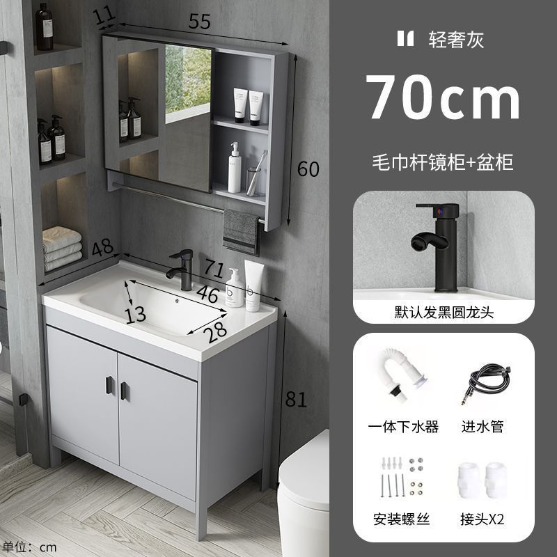 • 그레이 골드-71X48CM 세면대 캐비닛 전체 세트 수건 바 거울 캐비닛
