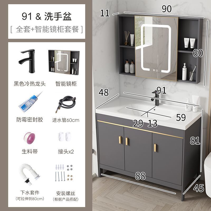 • 그레이 골드-91X48CM 세면대 캐비닛과 스마트 거울 캐비닛의 완전한 세트