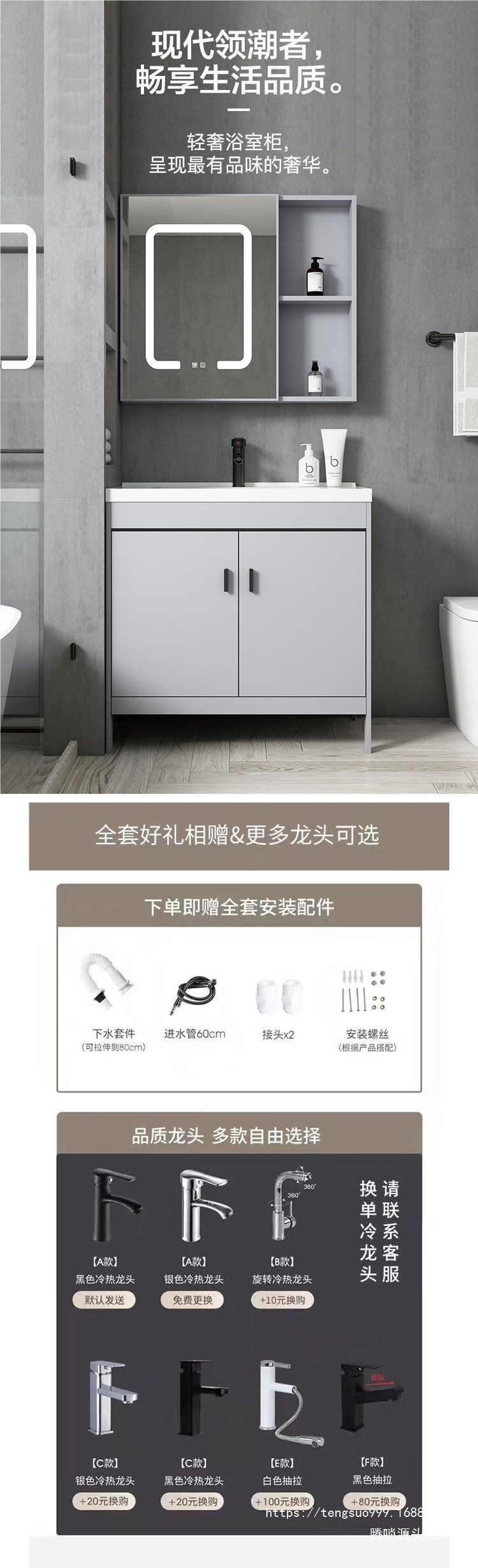 • 그레이 골드-81X48CM 세면대 캐비닛(싱글 배수구 포함)