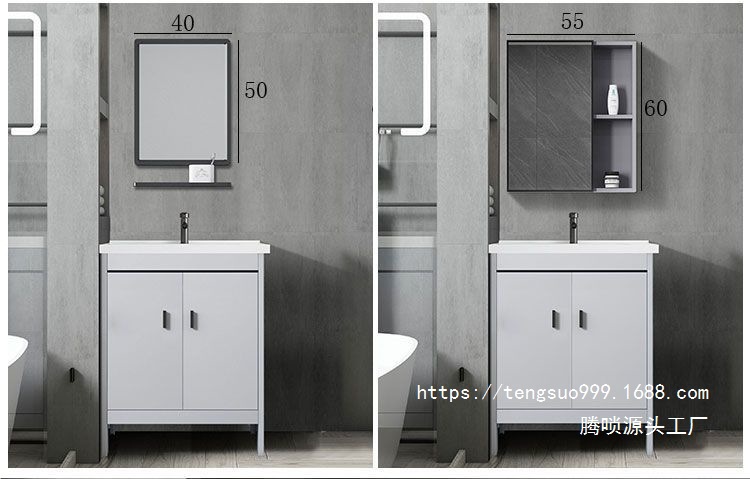 • 실버 그레이-61X40CM 세면대 캐비닛과 거울 캐비닛 전체 세트