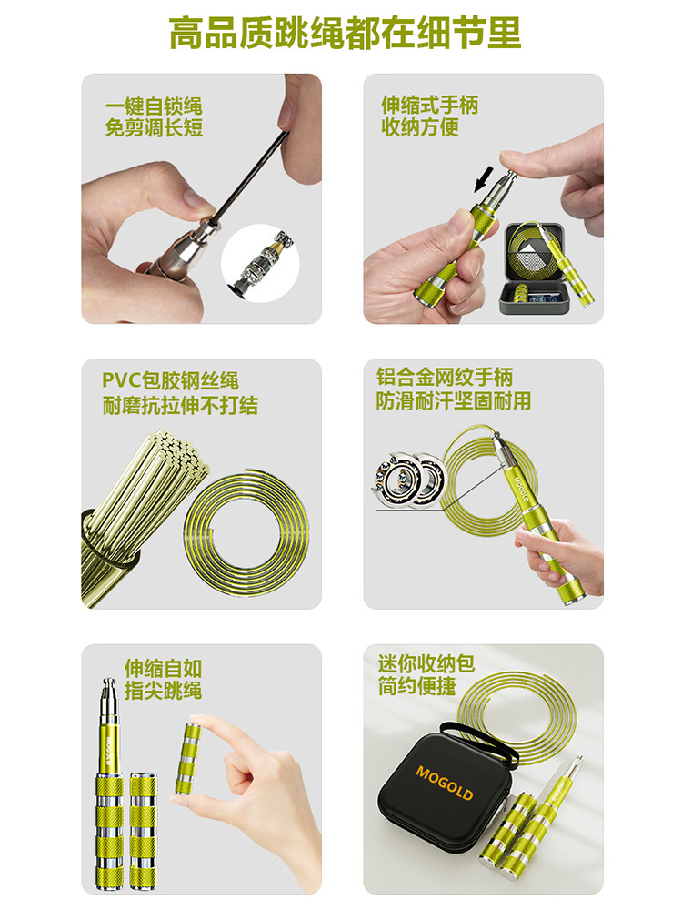 MOGOLD 텔레스코픽 알루미늄 합금 자동 잠금 줄넘기 미니 패키지 조정 가능한 피트니스 특수 학생 고등학교 입학 시험 경주스토어 가기