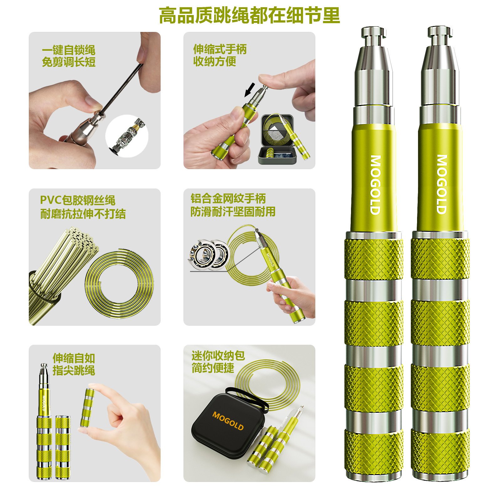 MOGOLD 텔레스코픽 알루미늄 합금 자동 잠금 줄넘기 미니 패키지 조정 가능한 피트니스 특수 학생 고등학교 입학 시험 경주