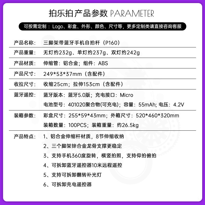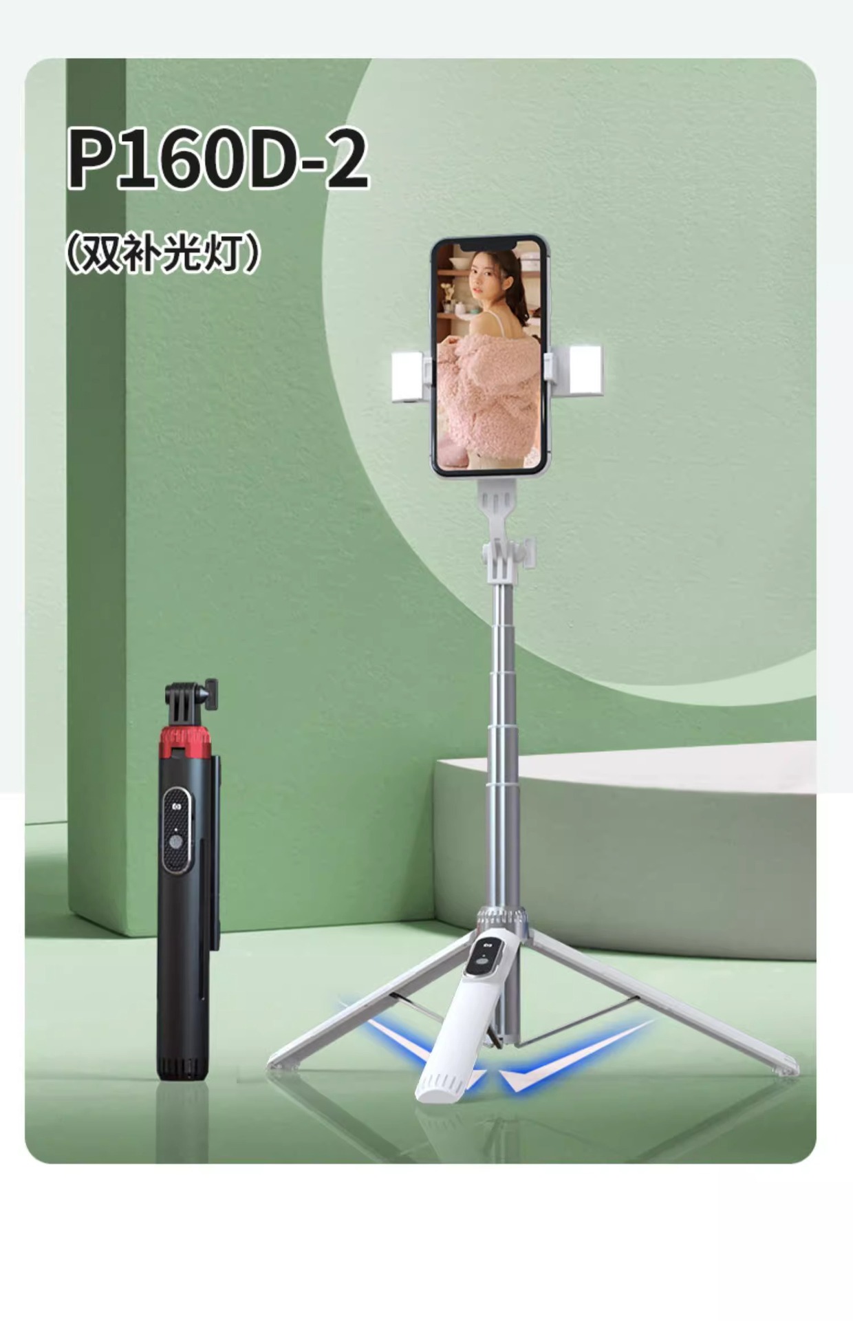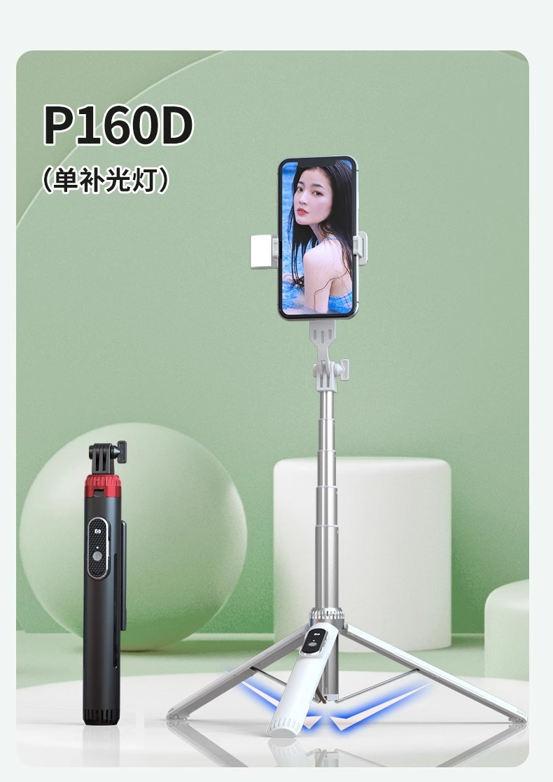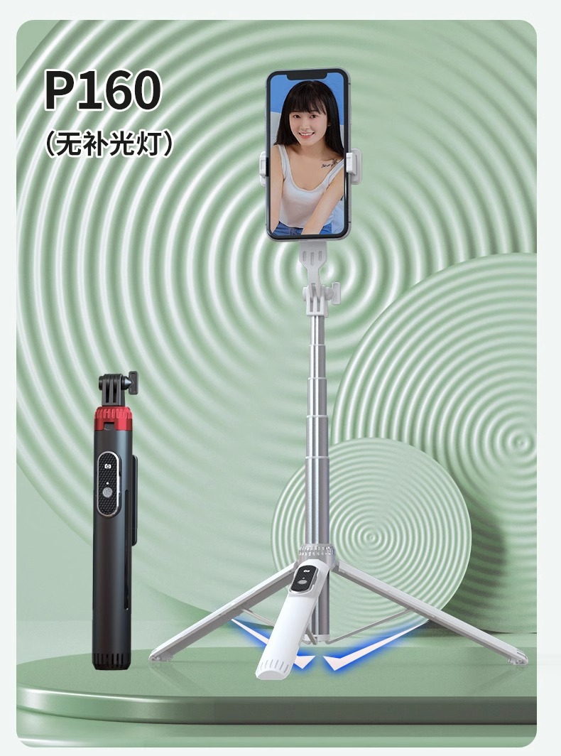 P160 알루미늄 합금 휴대 전화 블루투스 셀카 스틱 바닥 라이브 방송 삼각대 사진 유물 올인원 휴대 전화 유니버설스토어 가기