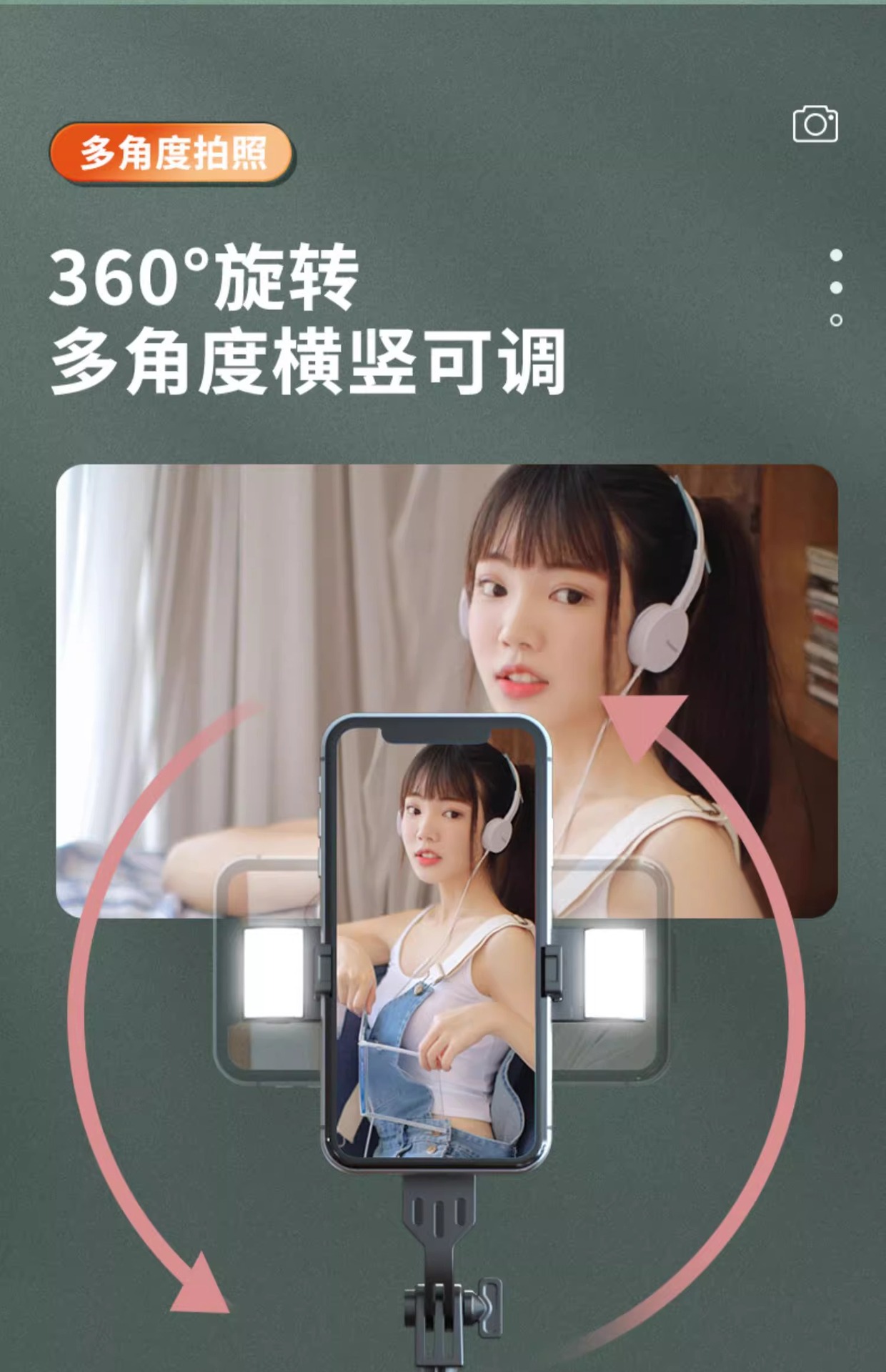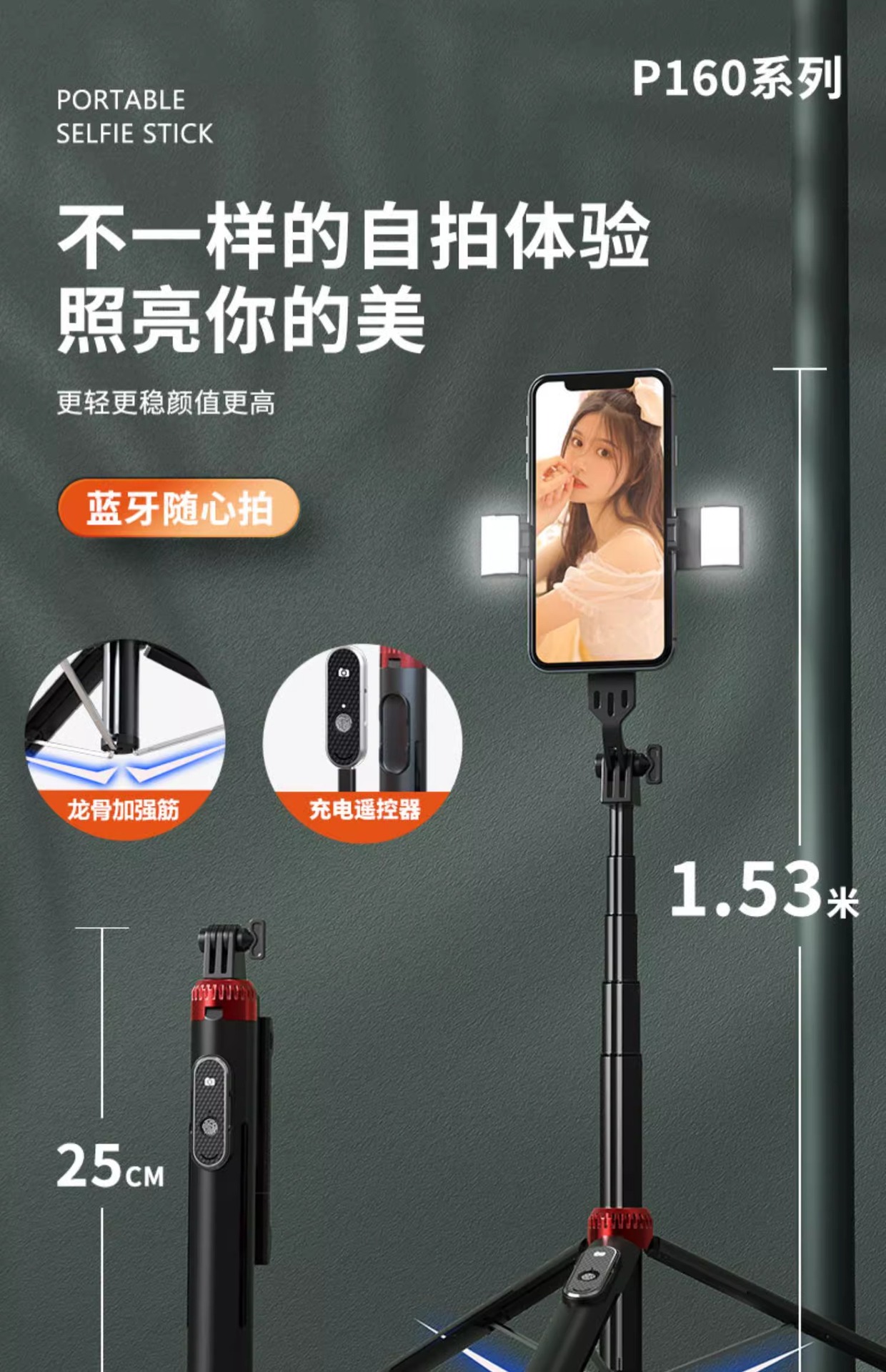 • P160 셀카봉 1.53m 블랙 듀얼 라이트 버전