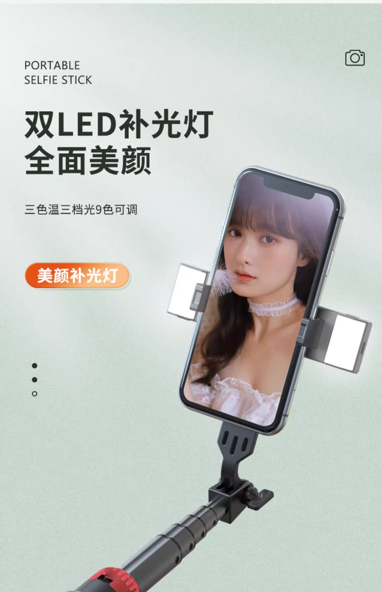 • P160 셀카봉 1.53m 화이트 듀얼 라이트 버전