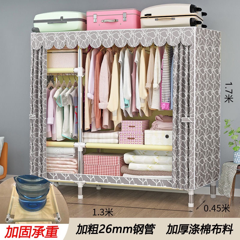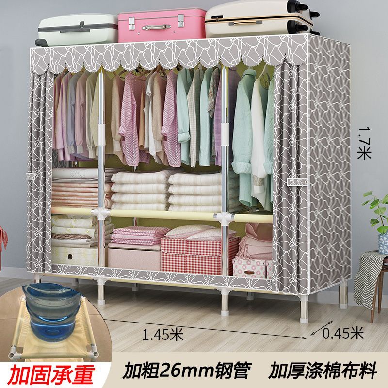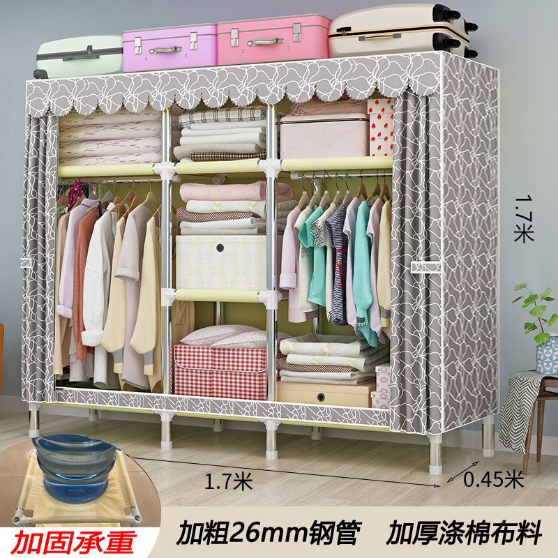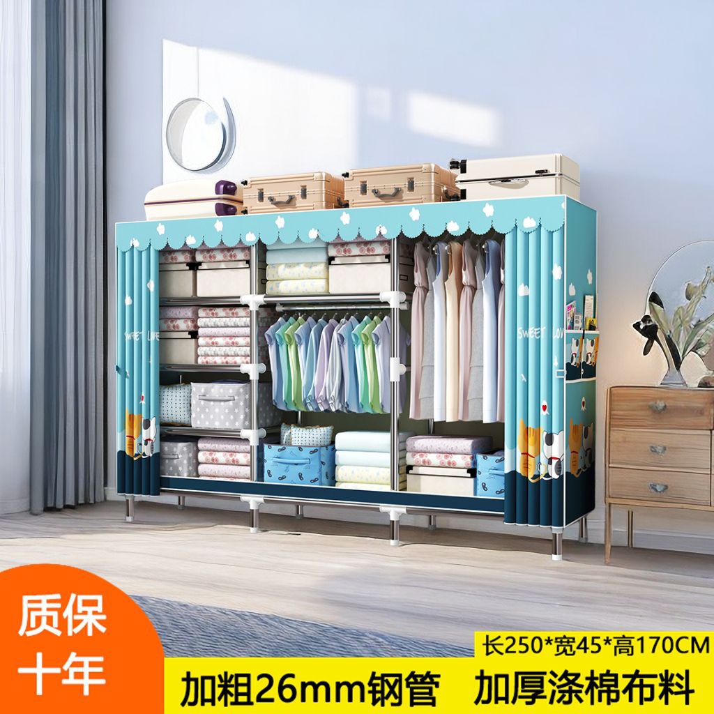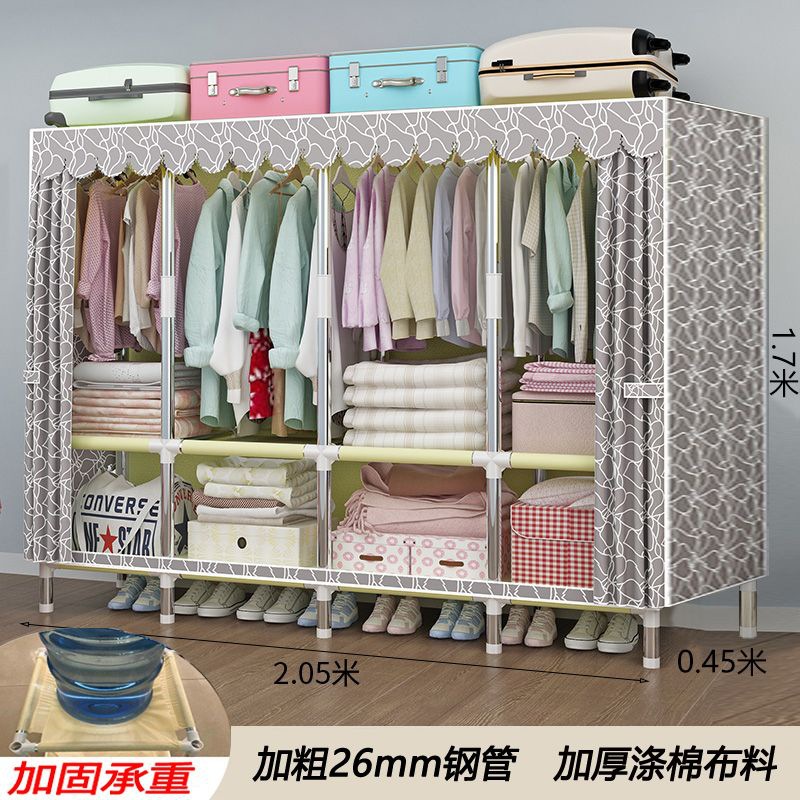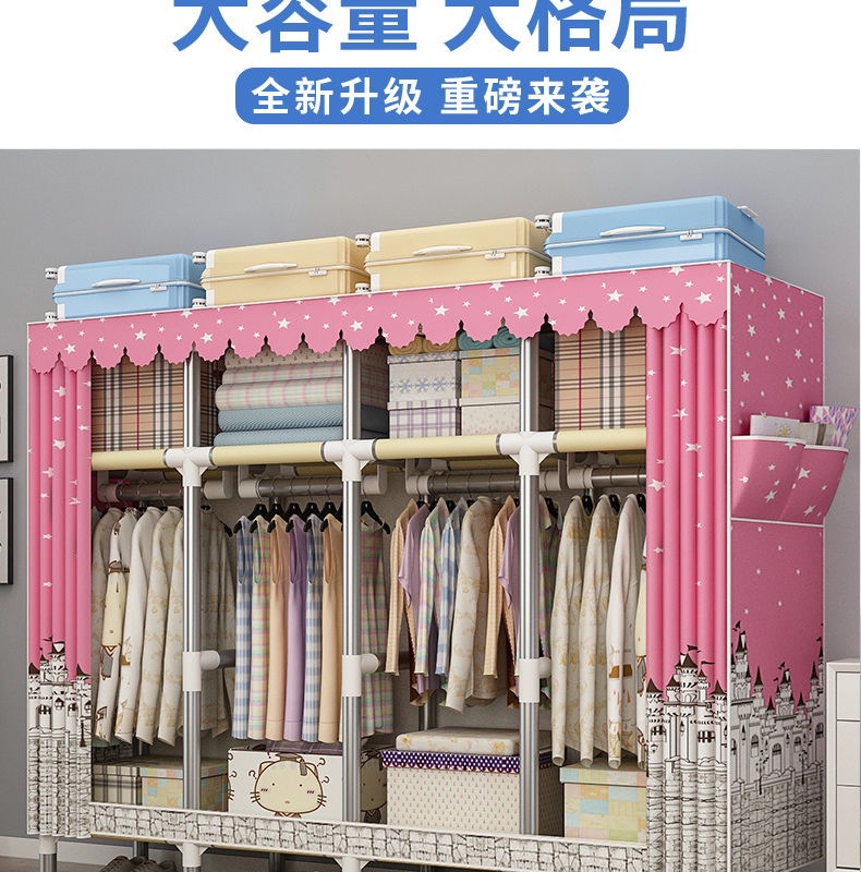 새로운 업그레이드된 강철 프레임 간단한 천 옷장 두껍고 강화된 26mm 강철 파이프 조립 가정용 침실 수납 옷장
