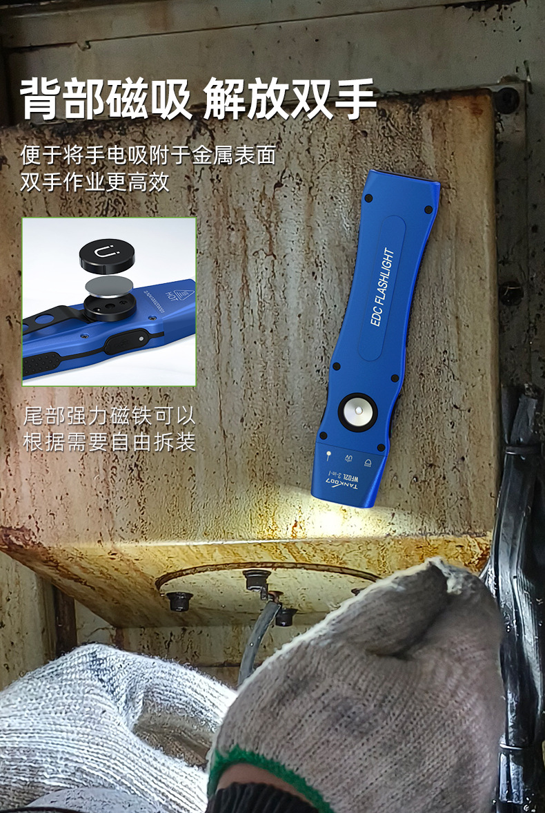 새로운 TANK007 3 광원 자기 EDC 손전등 백색광 녹색 레이저 UV 보라색 빛 3-in-one 작업 손전등