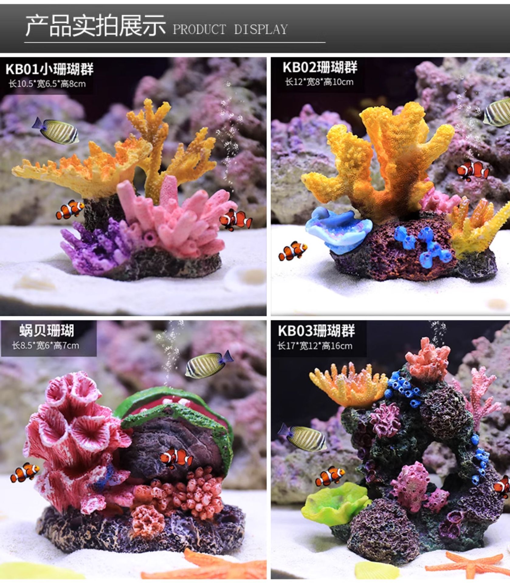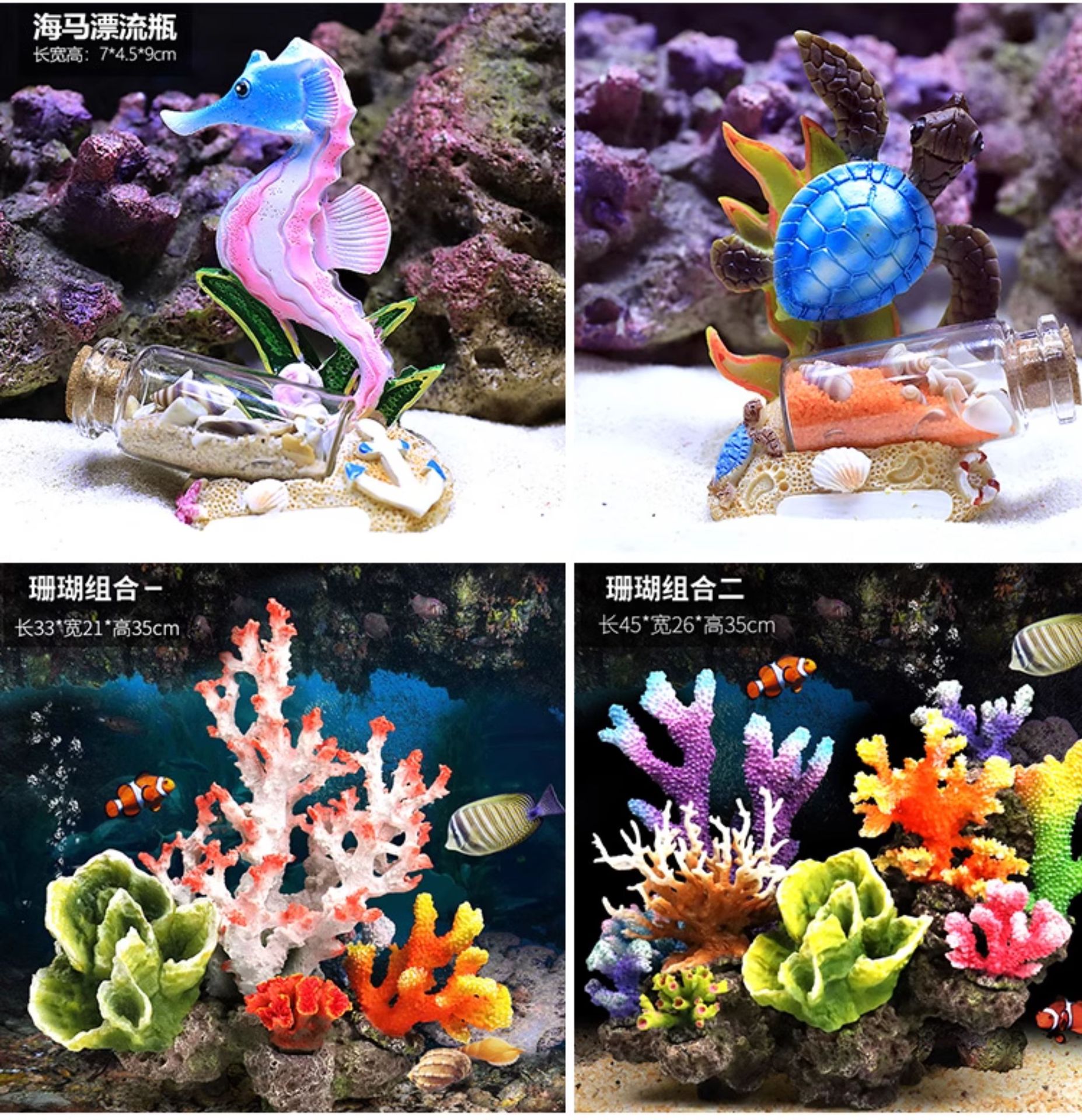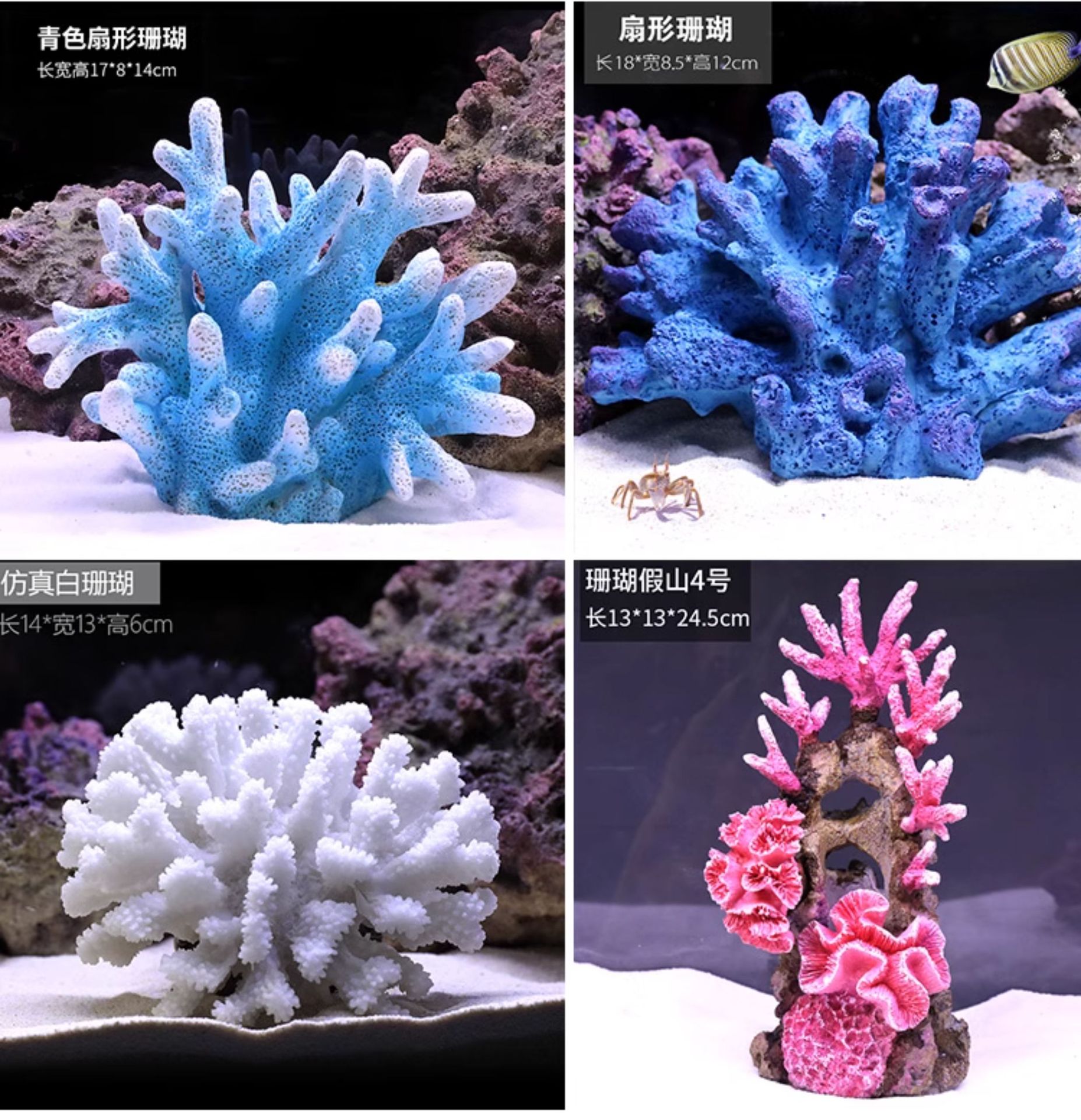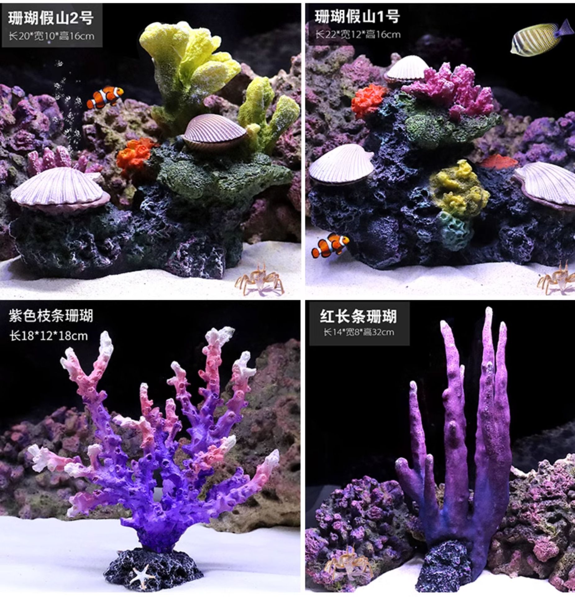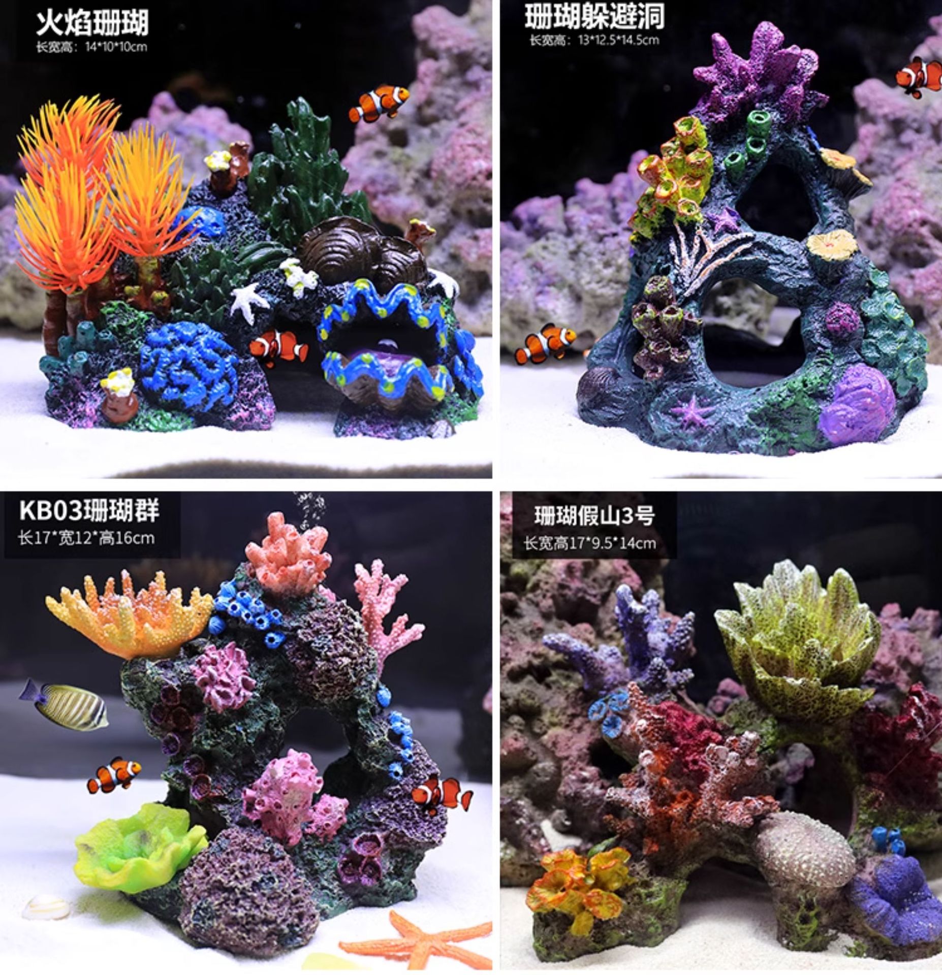 해수어항 장식용 인조 산호, 수초, 장식물, 해수어항 배경, 물고기와 새우가 숨는 집, 풀세트 인조산