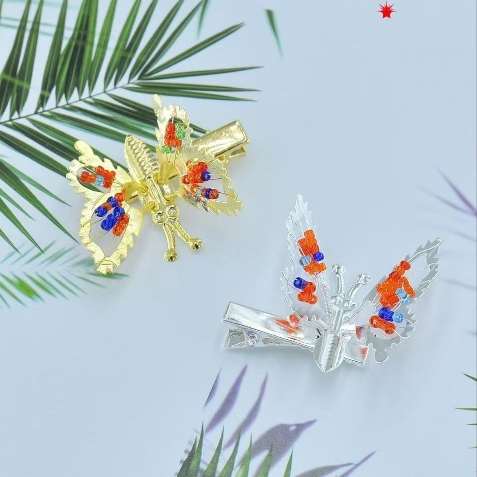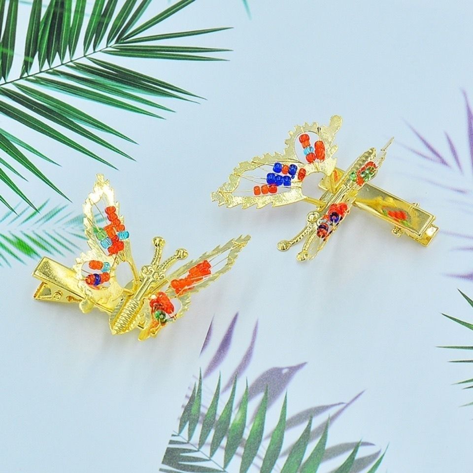 8090 향수 어린 시절 추억 컬러 비즈 중공 나비 머리핀 움직일 수있는 어린이 모자 클래스 선물 노점스토어 가기