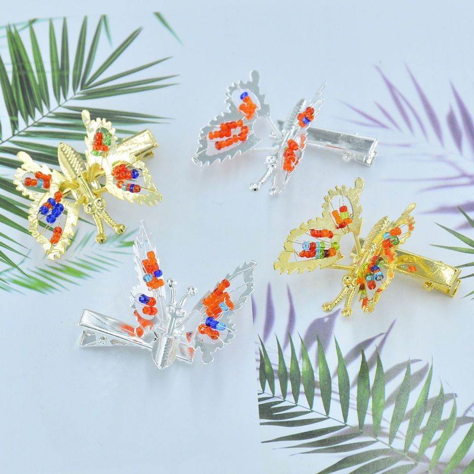 8090 향수 어린 시절 추억 컬러 비즈 중공 나비 머리핀 움직일 수있는 어린이 모자 클래스 선물 노점
