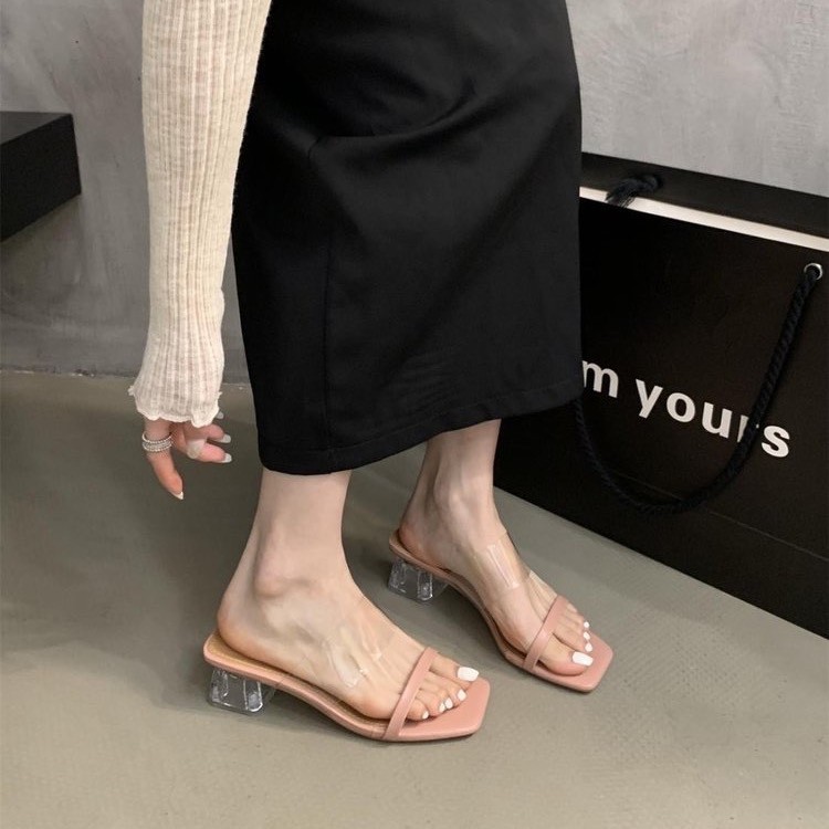 2025년 여름 신상 프렌치 패션 캐주얼 투명 샌들 하이힐 슬리퍼 하이힐 두꺼운 굽 샌들