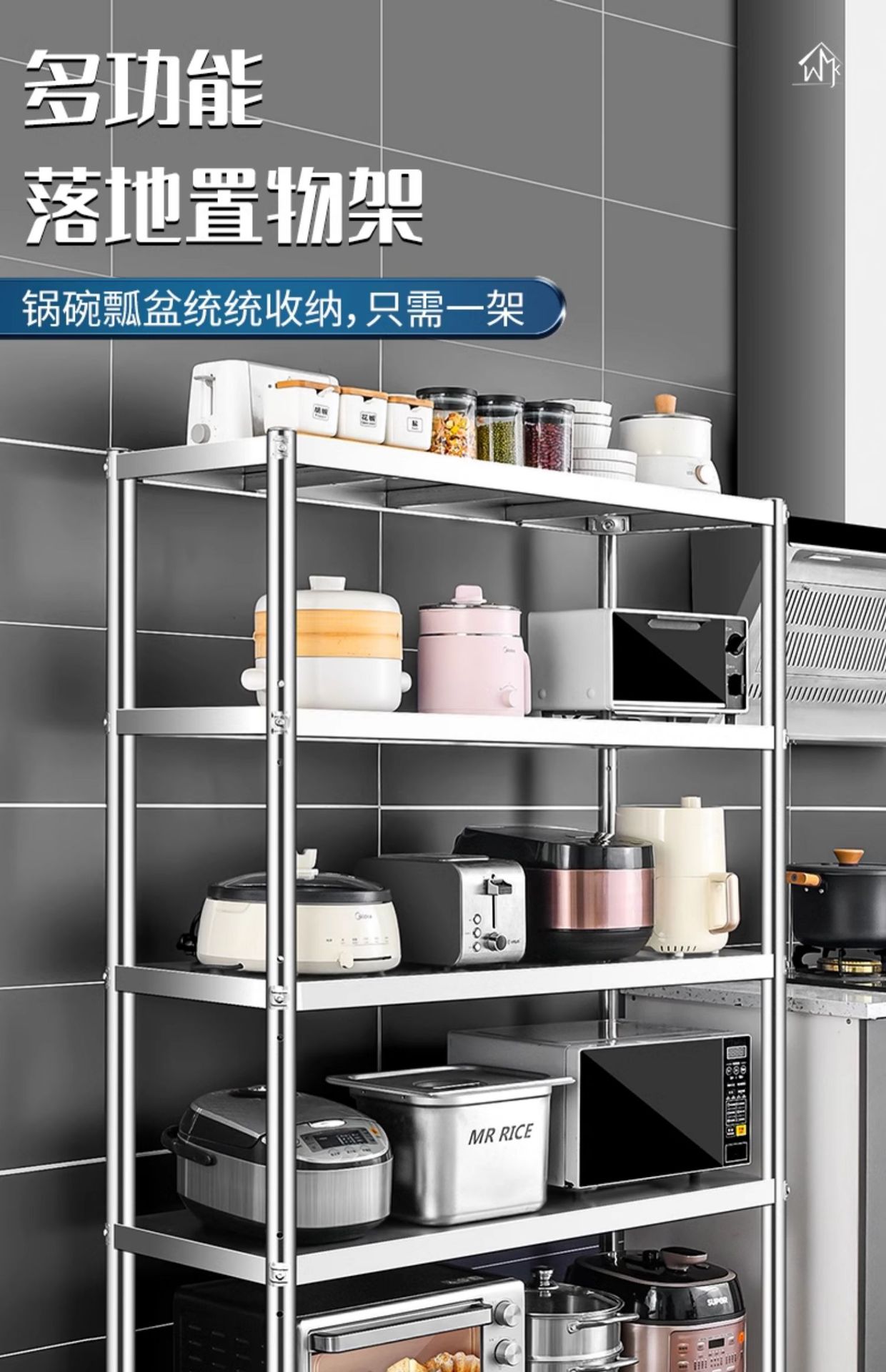 스테인레스 스틸 선반 보관 랙 다층 가정용 주방 선반 캐비닛 다기능 보관 랙 바닥 보관 랙