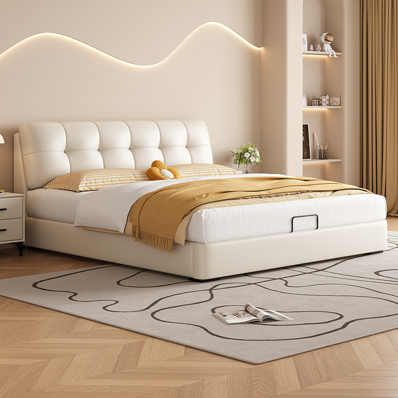 크림 클라우드 가죽 침대 현대적인 미니멀리스트 더블 침대 마스터 침실 1.8m 라이트 럭셔리 스토리지 침대 하이 박스 스토리지 침대