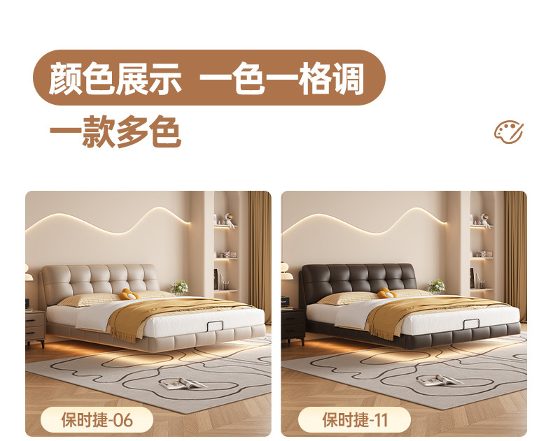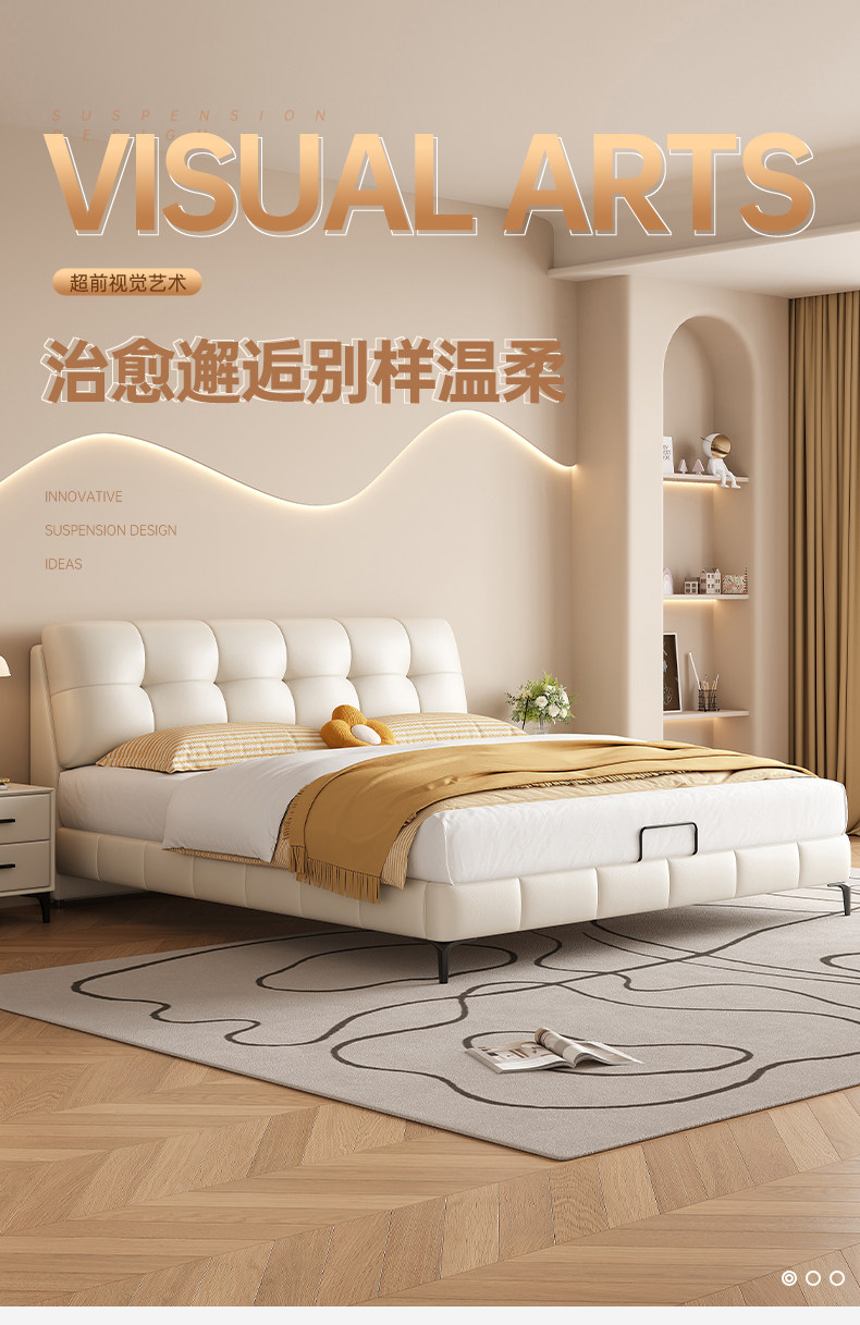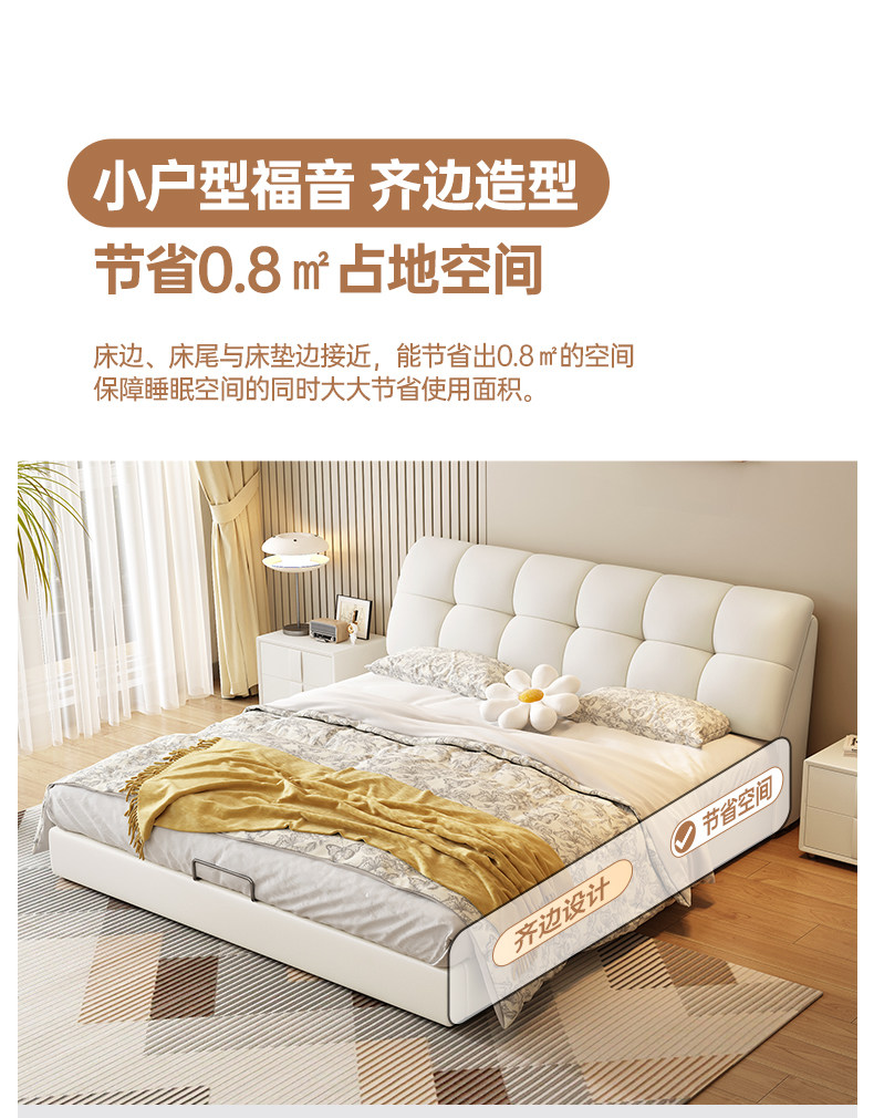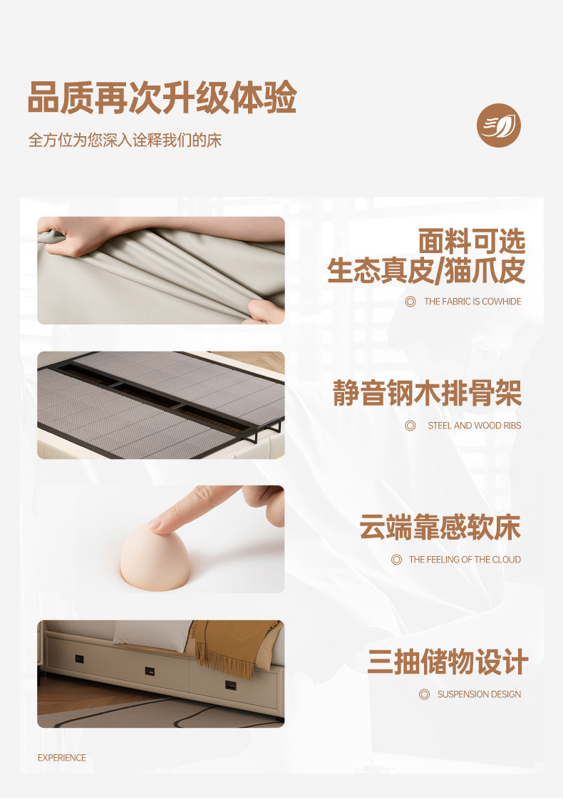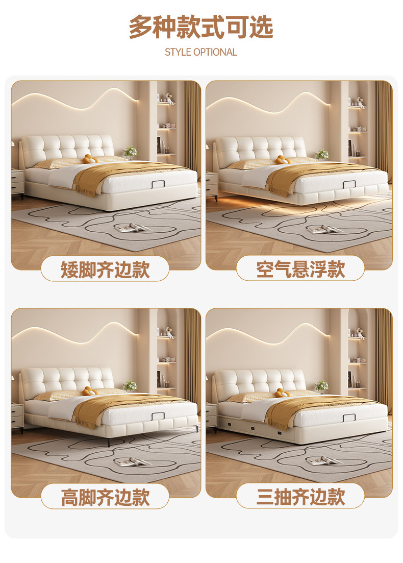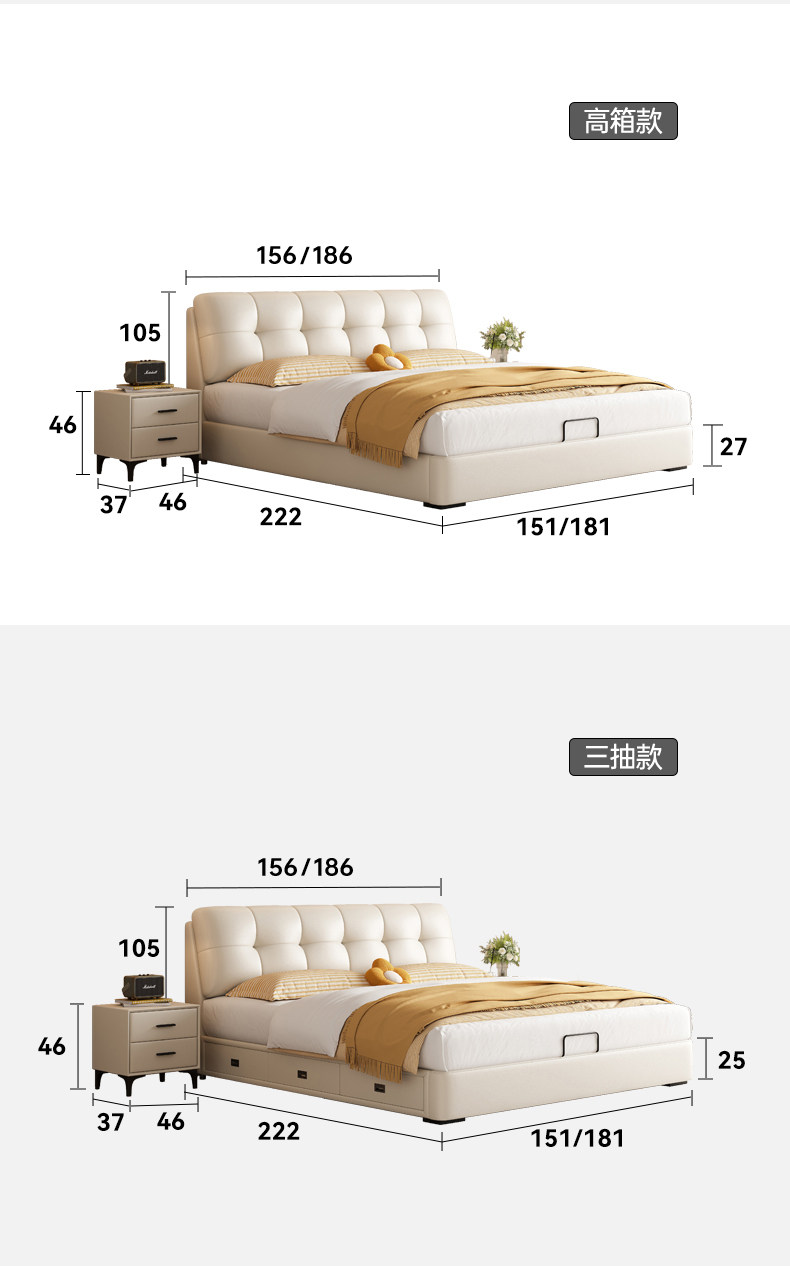 크림 클라우드 가죽 침대 현대적인 미니멀리스트 더블 침대 마스터 침실 1.8m 라이트 럭셔리 스토리지 침대 하이 박스 스토리지 침대스토어 가기