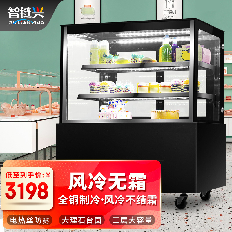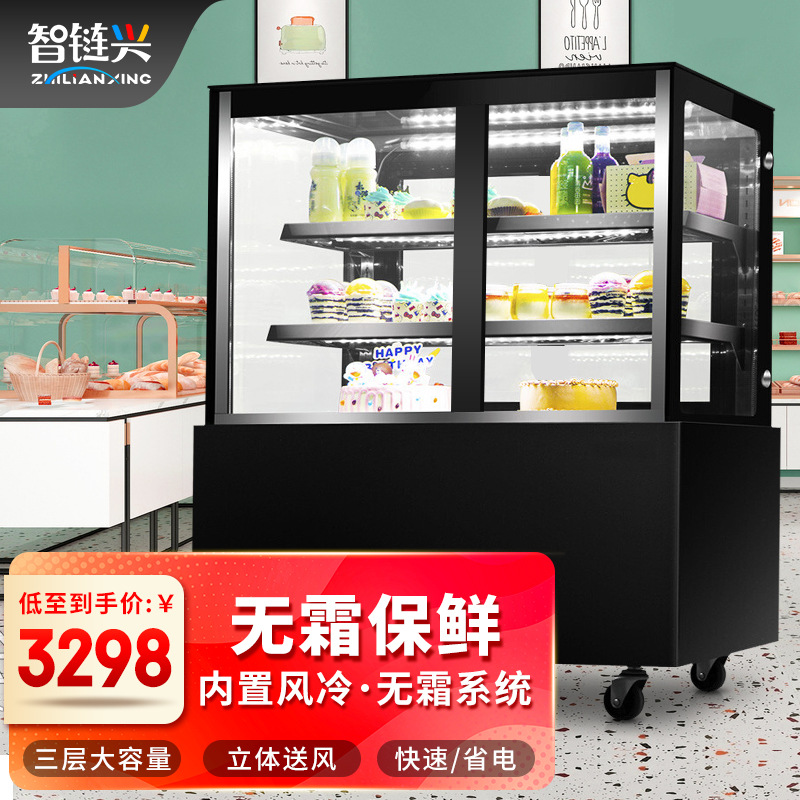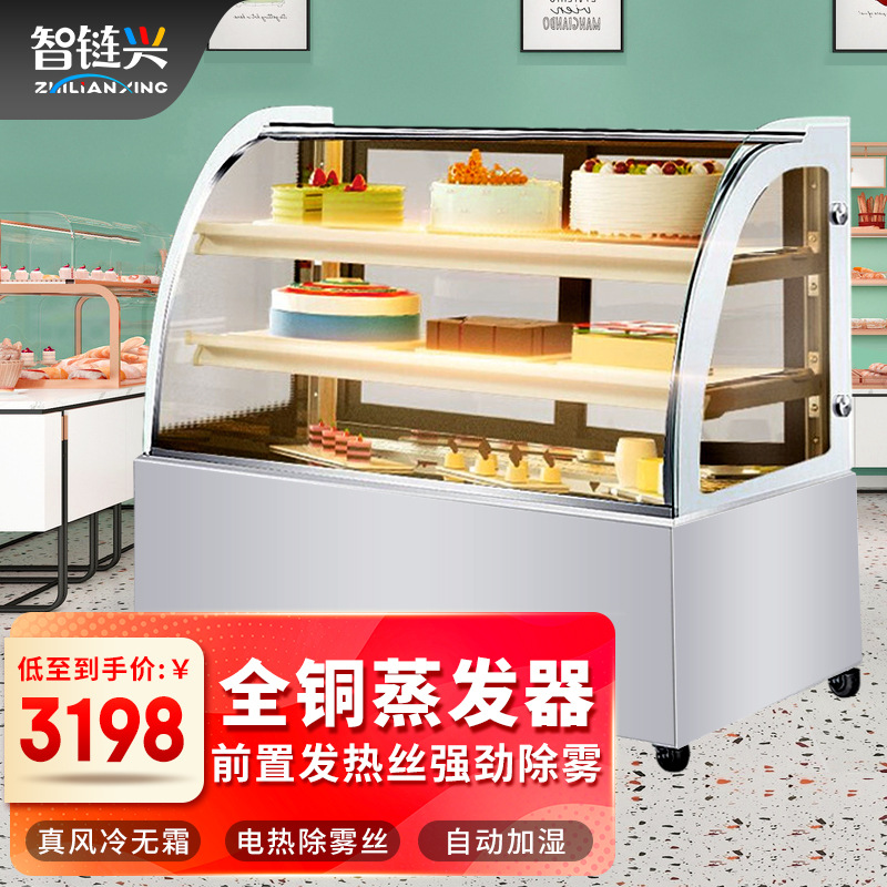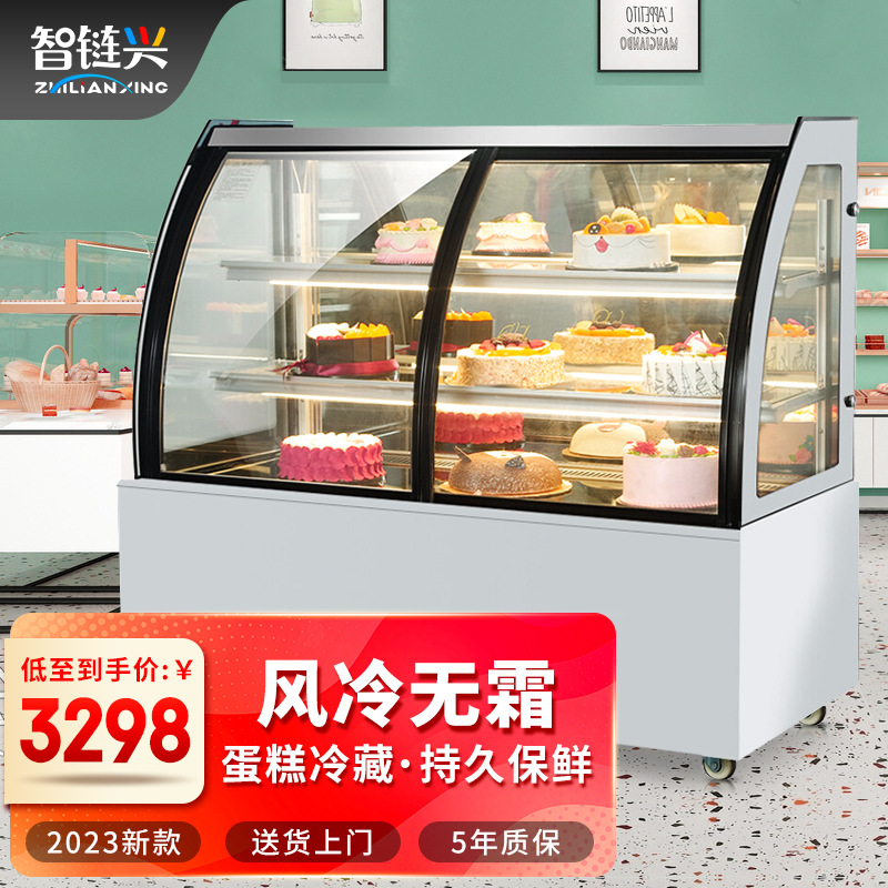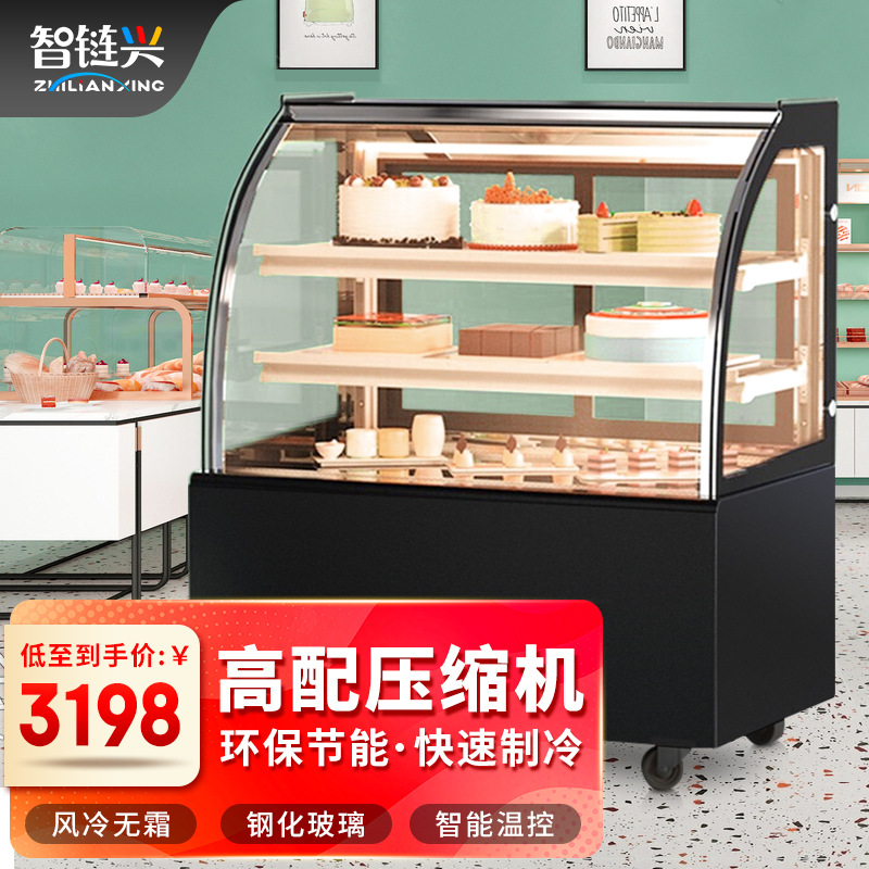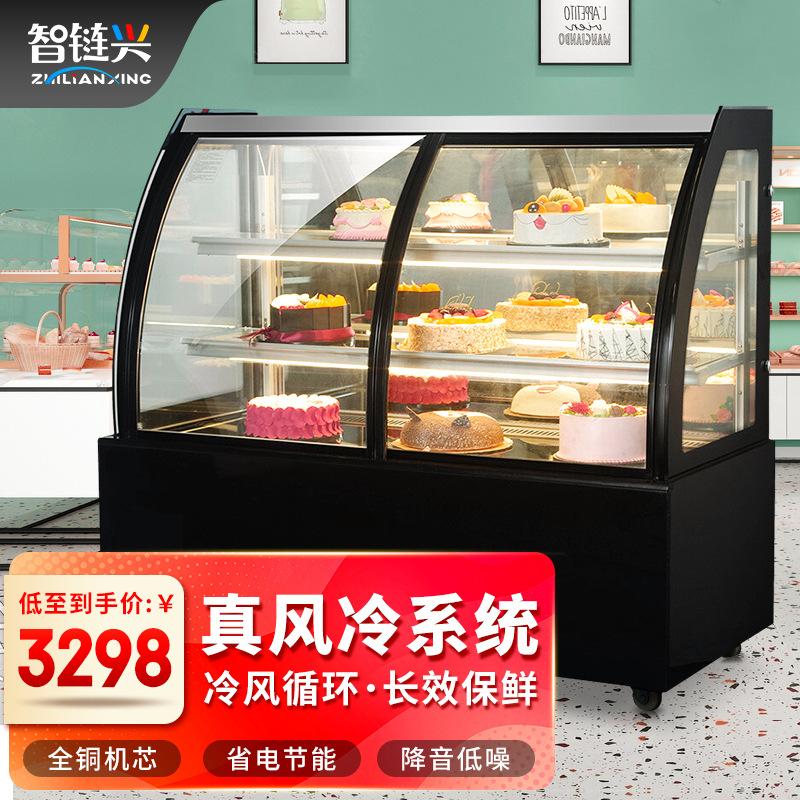 신선도 유지 냉장 케이크 캐비닛 상업용 공냉식 유리 곡선 과일 음료 스시 케이크 과자 조리 식품 디스플레이 캐비닛