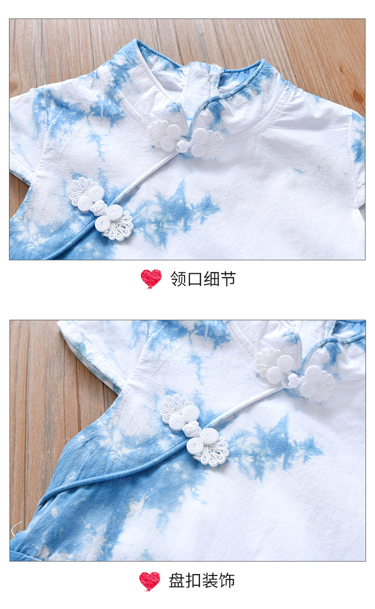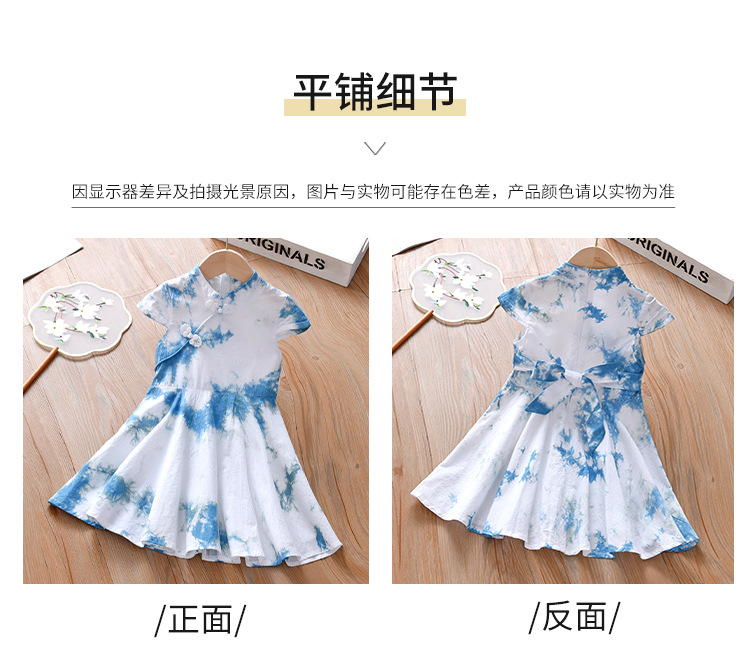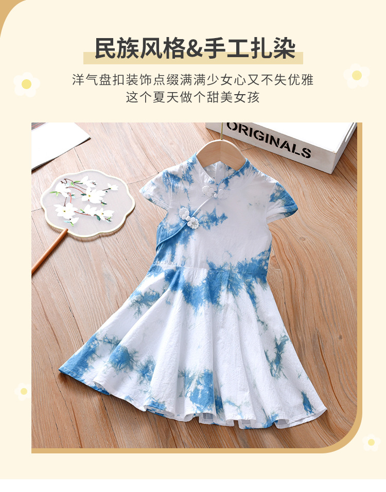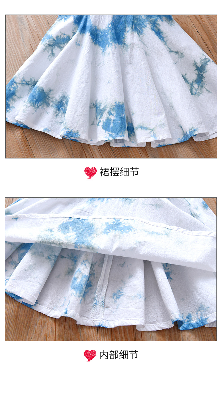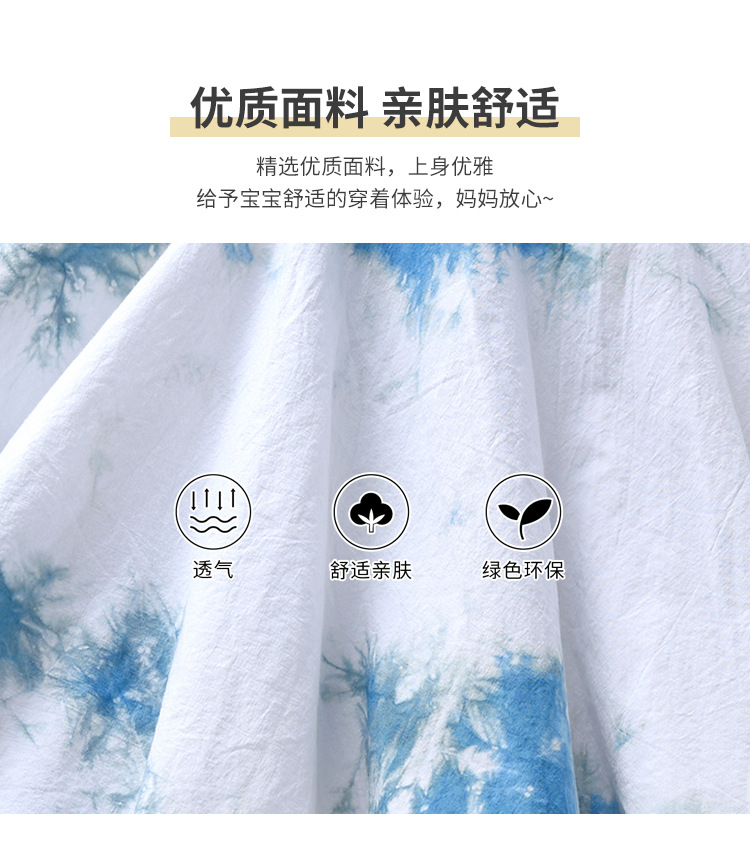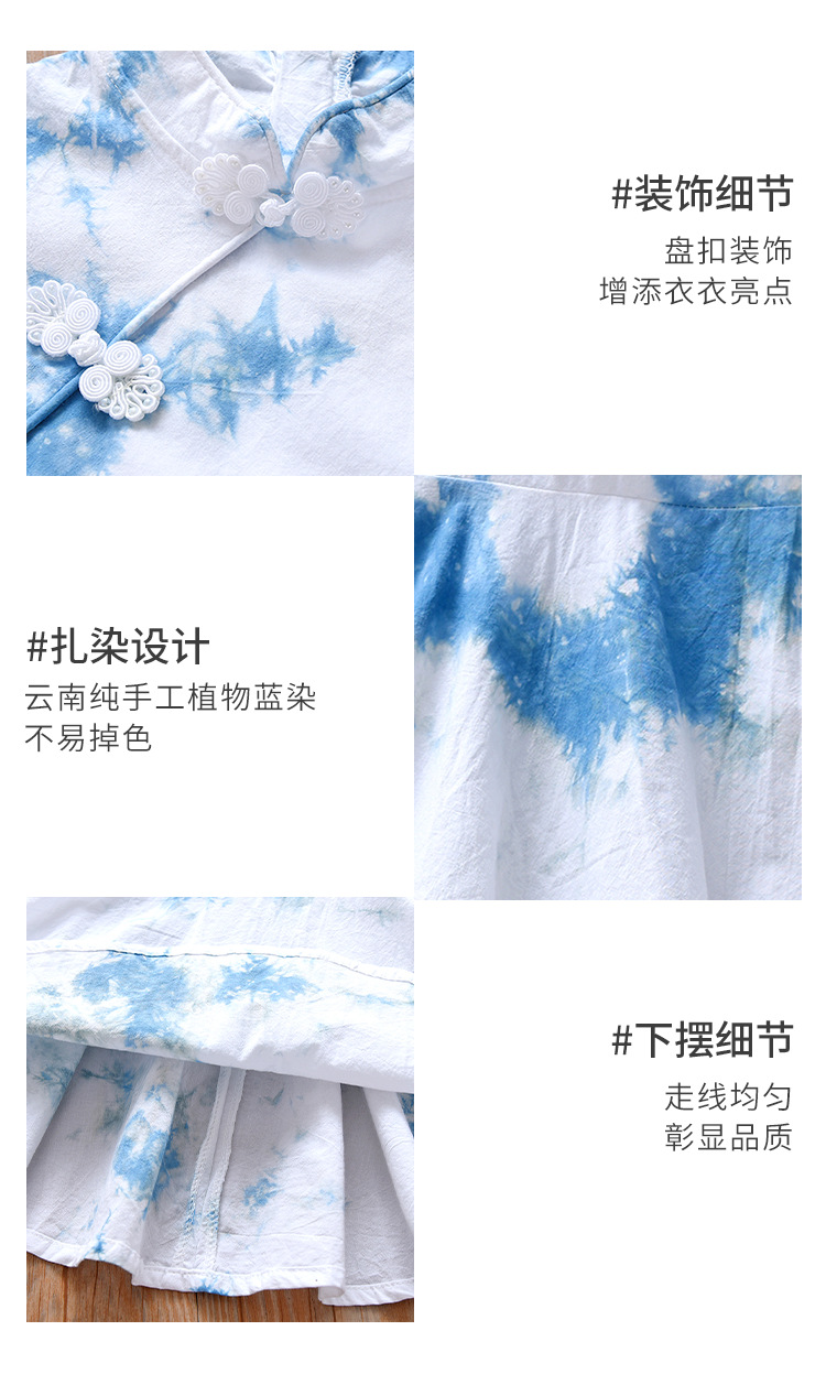 여아 드레스, 어린이 청색 염색 한복 흰색 드레스, 여름 아동복, 옷, 운남 수제 식물 타이 염색 공주 드레스스토어 가기