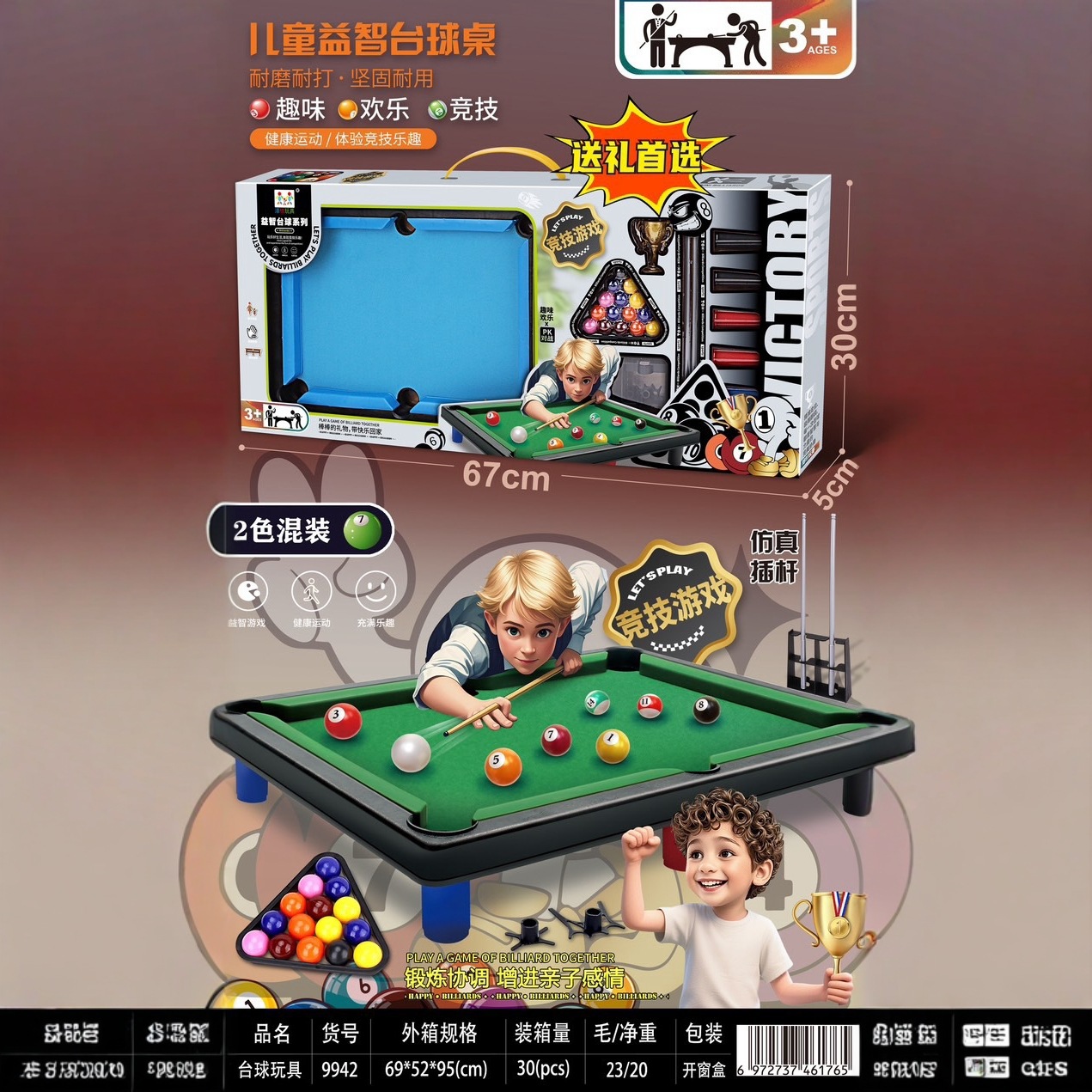 신제품 어린이 교육 시뮬레이션 플록 대형 당구대 스포츠 아기 장난감 세트 선물 상자 기관 선물