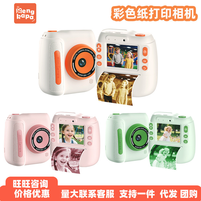 새로운 국경 간 어린이 폴라로이드 인쇄 디지털 카메라 만화 미니 전면 및 후면 듀얼 카메라 고화질 컬러 용지스토어 가기