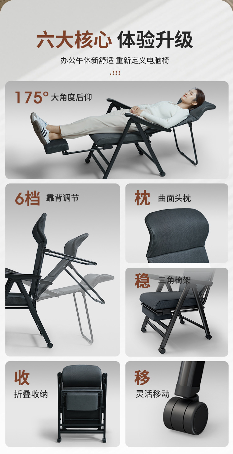루이스타 접이식 낮잠 컴퓨터 의자 사무실용 좌식/등받이 겸용 의자 낮잠용 의자