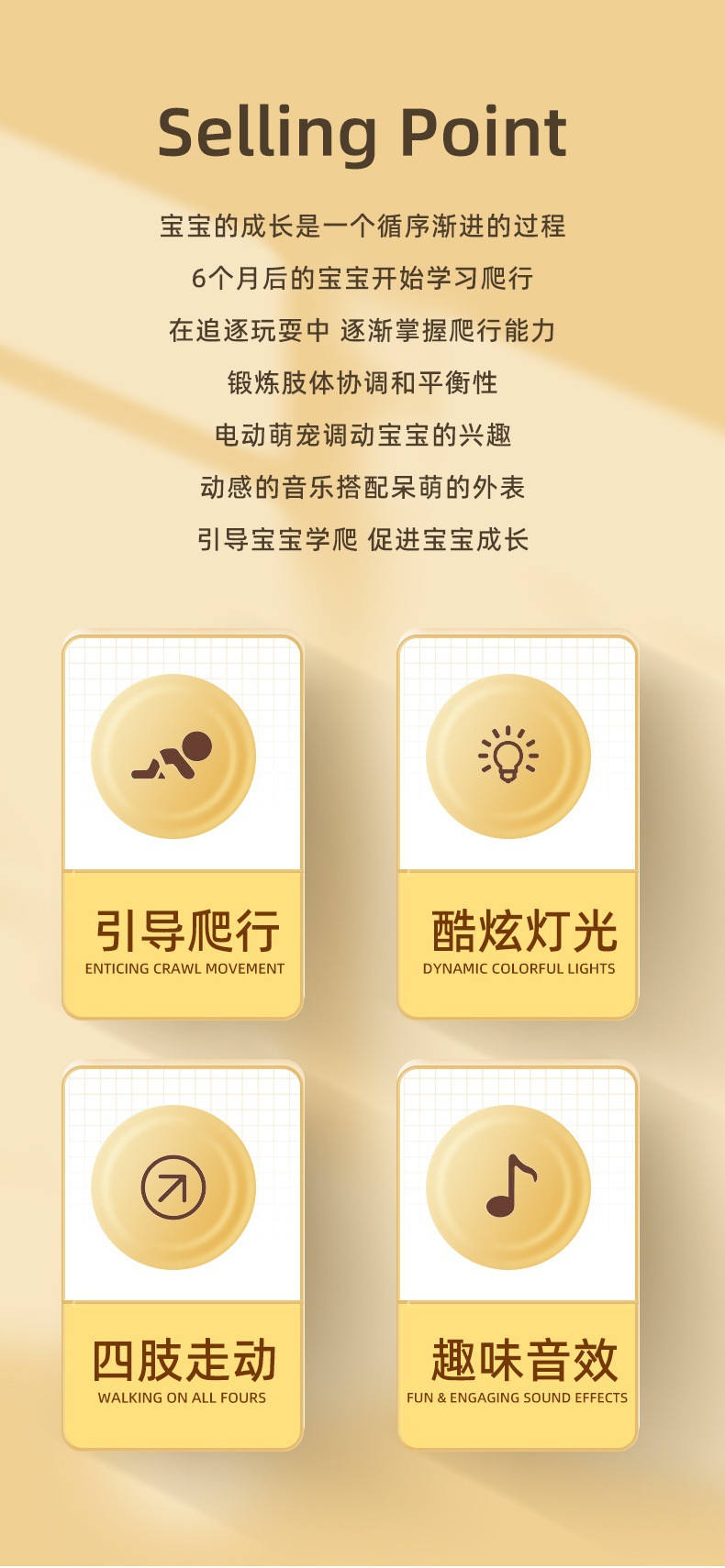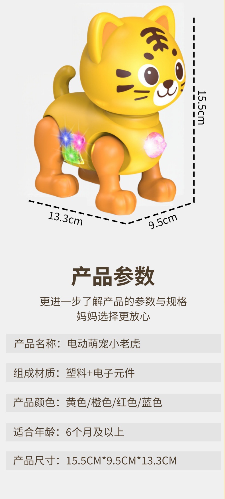 • 전동 카툰 아기 호랑이 [노란색] 조명 & 음악/음악 끄기 가능
