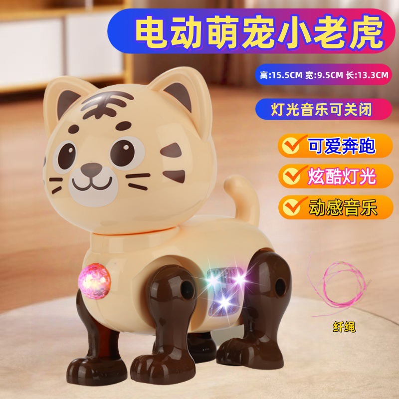 전동 끈걸이 호랑이 만화 호랑이, 달리고 빛나는 어린이 남아 여아 장난감, 스마트 충전 발광 프로젝션스토어 가기