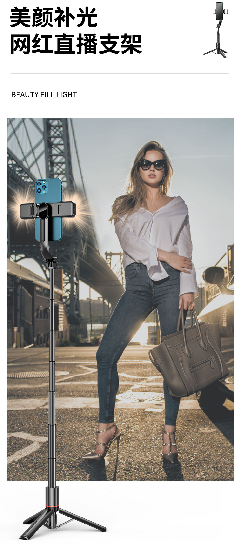 휴대 전화 블루투스 셀카봉 L12 데스크탑 스탠드 뷰티 사진 접이식 라이브 방송 플로어 스탠딩 올인원 삼각대