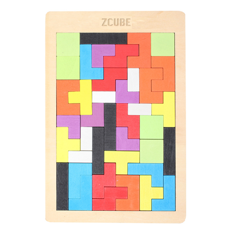 어린 아이들을위한 나무 테트리스 교육 장난감 기하학적 빌딩 블록 퍼즐 세트 아기 조기 교육 개발 퍼즐